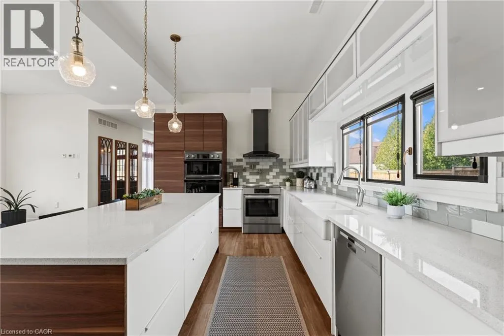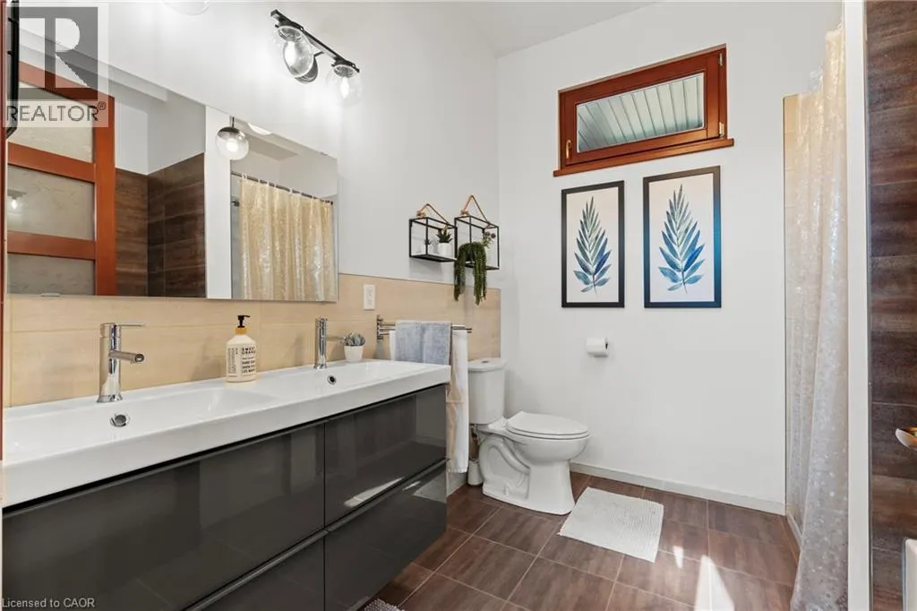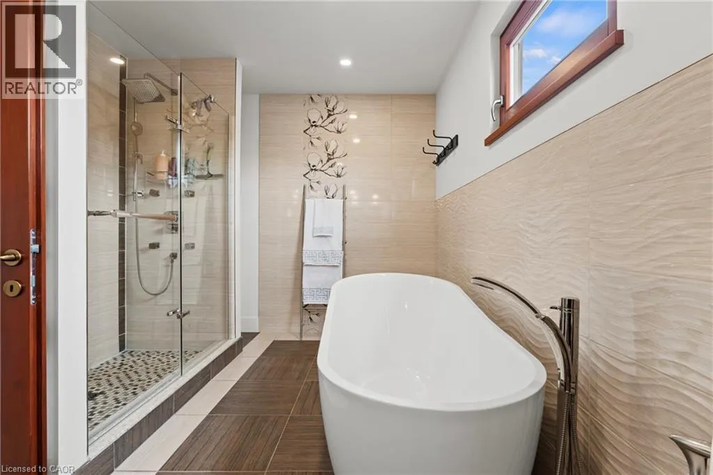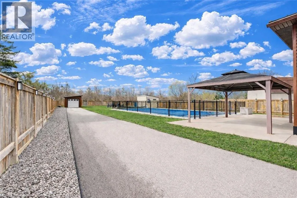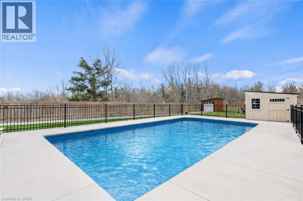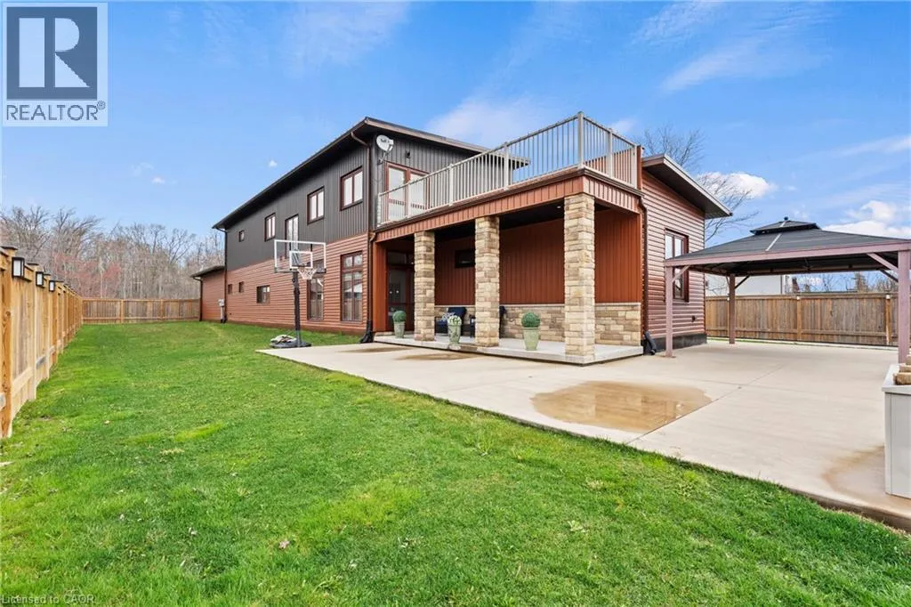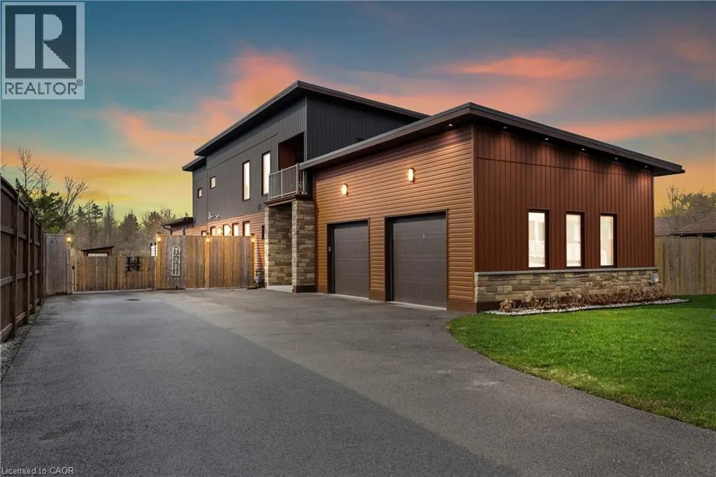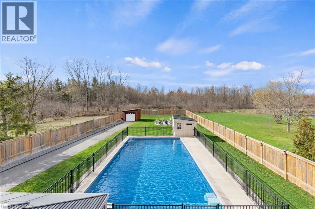From Hwy 3 to Rosehill Dr., right onto Dominion Rd. You'll never need to go to Muskoka or Florida again with a backyard like this. Featuring a 3-year-old inground heated pool, complete privacy backing onto forest, this is one of those rare, one-in-a-million properties that just doesn't come along often.Custom built in 2021, Scandinavian-inspired 2-storey offering just over 3,200 sq ft on just under an acre, and located steps from the Friendship Trail, a short walk to Lake Erie, and minutes to beaches, schools, and shopping.The layout is super functional, especially with a main floor bedroom that has its own full ensuite - perfect for guests, in-laws, or anyone who wants to avoid stairs.The main floor is bright and open with 10 ft ceilings, oversized Euro windows, and 8 ft custom doors throughout. The kitchen is loaded with black stainless appliances, induction cooktop, dual ovens, walk-in pantry, pot filler, apron sink, and a large quartz island that flows right into a dining space built for big family gatherings. There's also a great room with a gas fireplace and walkout to the backyard, plus laundry, a powder room, and inside access to the garage.Upstairs offers three additional bedrooms, two with balconies, along with a large landing and a primary suite with a spa-style ensuite featuring a double shower.Heating is handled by a Viessmann in-floor system running throughout the entire home and garage, with forced air as a backup option.Outside, the yard is fully fenced, there's a newer concrete patio, and the oversized asphalt driveway runs deep into the property giving you tons of space.If you're looking for something cookie-cutter, this isn't it - this is privacy, lifestyle, and a setup that actually delivers. (id:27476)