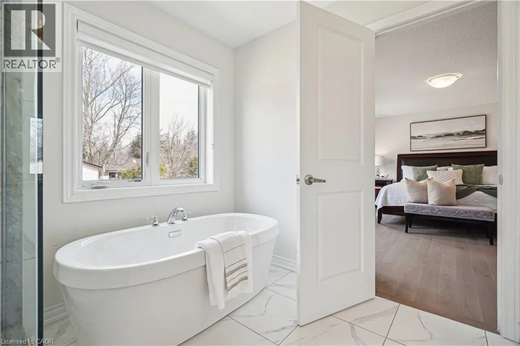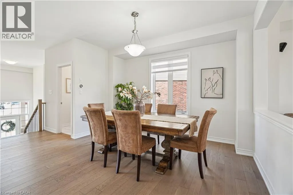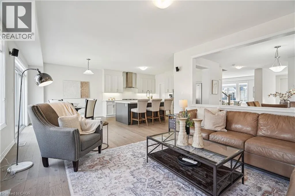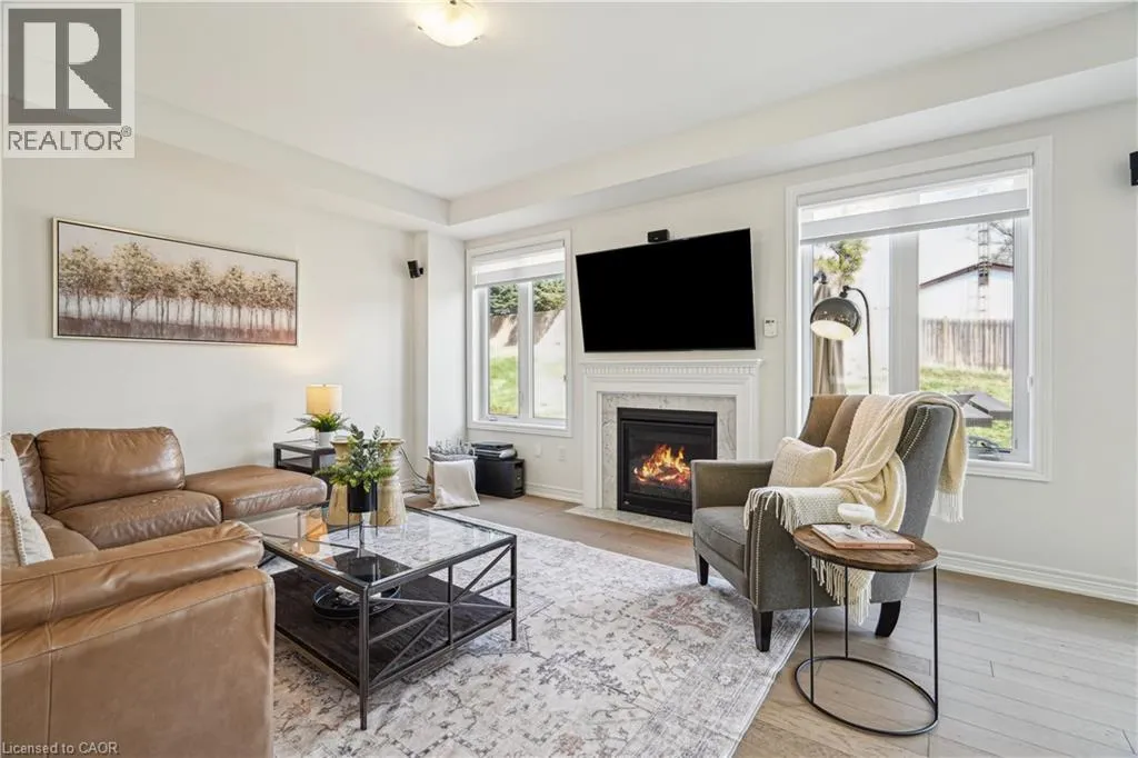 Main St N to Drexler Avenue UPGRADES GALORE! 4 STUNNING BEDROOMS! LARGE PIE-SHAPED LOT! This delightful 4-bedroom, 4-bathroom home, built in 2019, offers a warm and inviting atmosphere perfect for family living. As you step inside, you'll be greeted by gleaming hardwood floors that flow seamlessly throughout the home. The 9-foot ceilings enhance the sense of space and light, creating an airy ambiance. The front living room, bathed in natural light from large windows, provides a cozy spot for relaxation. The heart of the home is undoubtedly the upgraded kitchen. Featuring extended cabinetry, quartz countertops, a built-in wall oven and microwave, and a stylish backsplash, it's both functional and beautiful. The center island with a breakfast bar is perfect for casual meals or morning coffee. The open-concept breakfast area and family room create a seamless flow for everyday living. The family room's gas fireplace adds warmth and charm, making it an ideal gathering spot. Upstairs, you'll find four generously sized bedrooms, each with access to an ensuite bathroom. The primary suite boasts a luxurious 5-piece ensuite, offering a private retreat at the end of the day. The large pie-shaped lot provides ample outdoor space for family activities or gardening enthusiasts. The backyard, accessible from the breakfast area, is a blank canvas awaiting your personal touch. Located in a family-friendly neighborhood, this home is within walking distance to schools, Rockmosa Park, trails, and the local library. The nearby Rockwood Conservation Area offers opportunities for hiking, picnicking, and exploring natural wonders. With a 2-car garage and additional driveway parking, there's plenty of space for vehicles and storage. While the basement remains unfinished, it presents an excellent opportunity to customize and create additional living space tailored to your needs. Don't miss the chance to make this property your family's new home. (id:27476)