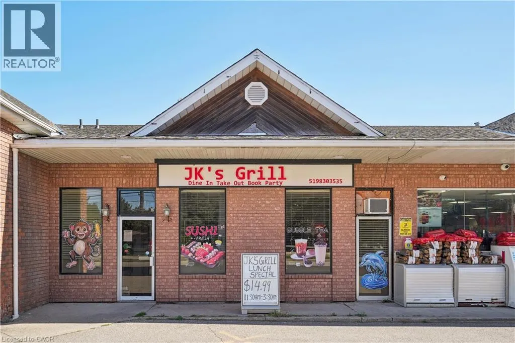 Main St to Alma St (in the Petro Plaza) Here's your chance to own Rockwood's only sushi and vermicelli restaurant JK'S Grill - a fully equipped, turnkey business with a loyal local following. This well-established 40-seat eatery offers dine-in and take-out service in a bright, welcoming space with two modern washrooms and a professionally equipped commercial kitchen. Located in a busy plaza anchored by a Petro Canada gas station, JK'S Grill benefits from strong visibility and consistent drive-by traffic. The business includes all kitchen equipment, furniture, and fixtures, making it ready for immediate operation. A solid 10-year lease is in place with 8 years remaining and a current monthly rent of $2,700, providing long-term security for the next owner. Staffed with three full-time employees, the restaurant runs smoothly and is well-positioned for further growth through catering, delivery, or extended hours. Whether you're an experienced restaurateur or a food entrepreneur looking for your first venture, JK'S Grill offers a rare opportunity to take over a proven concept in a high-demand, low-competition market. Business only - real estate not included. Full equipment list and financials available to qualified buyers. (id:27476)