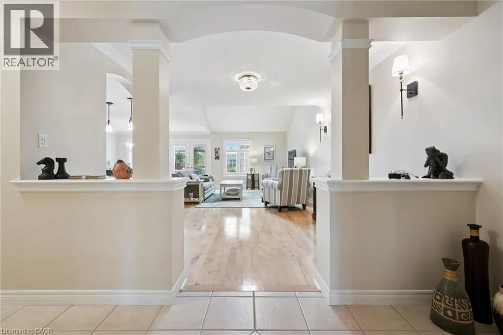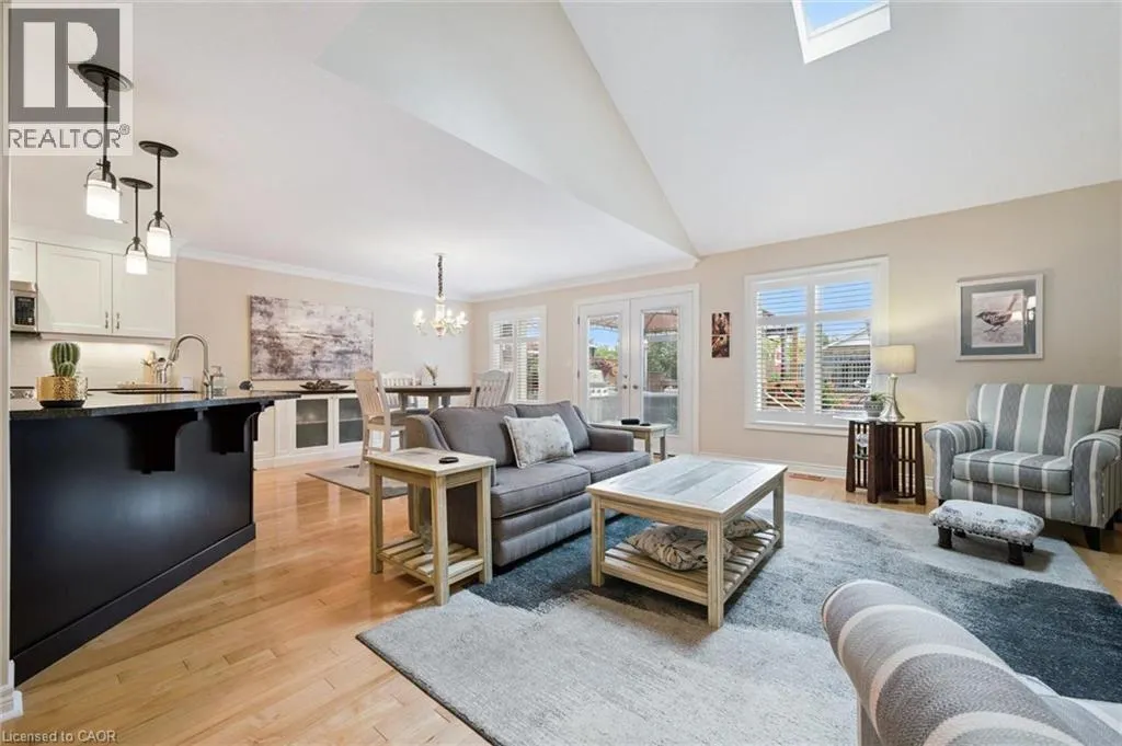 Cobblestone Pl Extensively renovated 2-bdrm, 2.1-bath executive townhome in heart of the picturesque community of Rockwood! Set on peaceful street just steps from the river, trails & downtown core, this is where carefree upscale living meets small-town charm. Curb appeal is undeniable W/interlock driveway, front porch, manicured gardens & attached 2-car garage. Inside the open-concept layout is impressive W/cathedral ceilings, arched entryways, sun-filled windows including skylight & seamless flow from great room to the dining area, accented by hardwood floors. In the dining area, B/I buffet cabinet/espresso bar provides ample storage blending functionality W/elegance. Garden doors offer access to back deck creating effortless indoor-outdoor flow. Renovated kitchen W/top-tier S/S appliances, custom 2-toned cabinetry, granite counters & centre island W/pendant lighting & seating. W/I pantry provides smart storage! Completing this level is laundry room & 2pc bath. Upstairs the primary bdrm features picture window, W/I closet & dbl-door entry to 5pc ensuite W/vanity with granite & dbl sinks, soaker tub & sep glass shower. Bright loft office W/custom shelving adds perfect space for working from home, reading or creative pursuits. Finished lower level offers incredible flexibility W/above-grade windows, rec room W/fireplace that could also serve as home gym or second living space. Large bdrm W/dbl closet & 3pc bath make this ideal for guests, teens or in-laws. Private backyard oasis W/new deck & spacious patio surrounded by mature landscaping. Just mins from Rockwood Conservation Area, enjoy quick access to limestone cliffs, caves, canoeing, hiking & historic Harris Woollen Mill ruins. Short walk brings you to downtown for shops, cafes & dining. Effortless commutes to Guelph, Milton, Halton Hills & Brampton. Whether you're downsizing or upgrading your lifestyle this beautiful home delivers perfect balance of luxury, comfort & community. Welcome to Riverwalk where nature meets elegance! (id:27476)