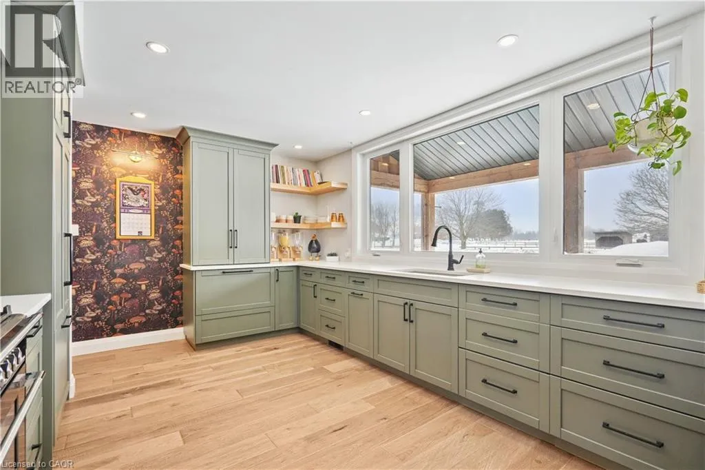 Welcome to 8687 Wellington Rd 22 in Rockwood, a beautifully renovated 4-bedroom, 3-bathroom family home offering 2,240 sq ft of thoughtfully designed living space on a 100 x 150 ft lot just minutes from Belwood Lake Conservation Area. Completely transformed in 2023, this home was rebuilt with care and quality, including a second storey addition, new roof, energy-efficient windows, upgraded insulation, new wiring and plumbing, modern mechanical systems, and an on-demand hot water heater. Step inside to a bright open-concept main floor where the heart of the home is a stunning chefâs kitchen featuring quartz countertops, a spacious breakfast bar, gas range with pot filler, pot lights, oversized windows and a walk-in pantry that makes family organization effortless. The living room impresses with a soaring vaulted ceiling open to above, while the dining room walks out to the backyard. The main floor primary bedroom offers privacy and convenience with a walk-through closet and beautifully finished 4-piece ensuite. A 2-piece powder room completes the level. Upstairs, families will love the open loft space currently designed as a home office overlooking the living room. Three generously sized bedrooms and a 4-piece bathroom provide room for growing families. The finished basement offers additional living space including a recreation room and laundry room. Outside, enjoy a double car garage with interior access, parking for up to 6 vehicles in the driveway. Located just 12 minutes to Belwood Lake Conservation Area, 18 minutes to Fergus, and 20 minutes to Acton GO Station for commuting into Georgetown, Brampton, and Toronto, this property delivers rural tranquility without sacrificing accessibility. If you have been searching for a fully renovated country home near Rockwood with space, privacy, and commuter convenience, this is the one that feels like home the moment you walk in. (id:27476)
