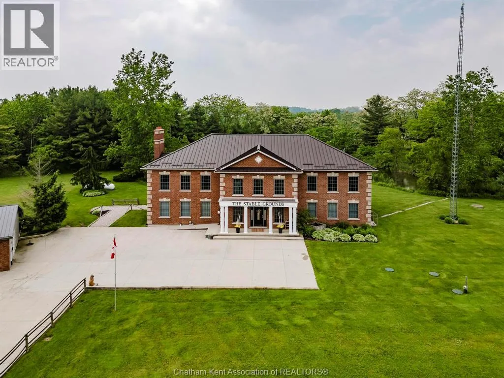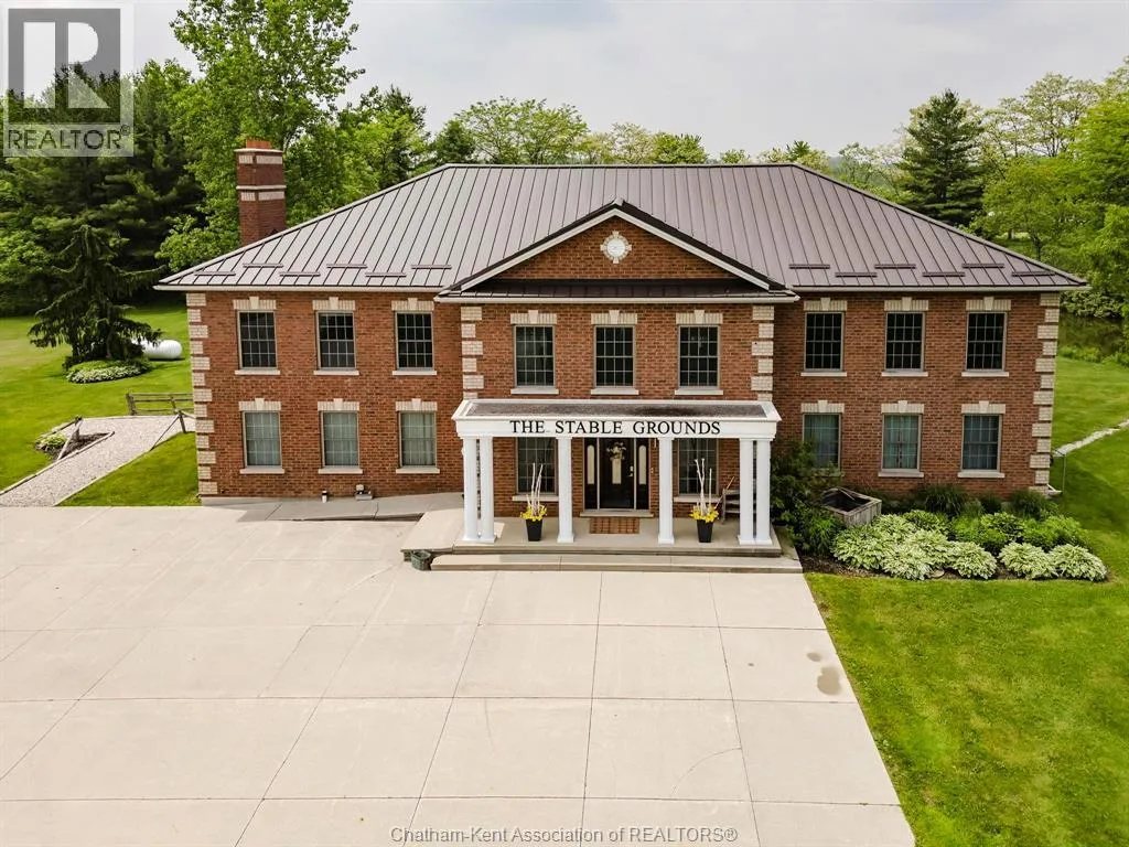 Exit 401 on Furnival Rd going north. Property is on the left just past the curve. Presenting a rare & exceptional opportunity to acquire a meticulously maintained 55.03-acre countryside retreat. Ideally located just minutes from Highway 401 in West Elgin this facility was built with seclusion & convenience in mind. Currently operating as a thriving wellness retreat, the business is relocatingâoffering you the chance to reimagine this extraordinary estateâs next chapter. At the heart of the property stands a sprawling 7,500 sq ft residence with 10 spacious bedrooms & 7 bathrooms, designed to host large groups or multi-generational families with ease. The open-concept layout features a stunning chef's dream industrial-style kitchen, complete with a large island, separate butler's kitchen, & bistro-style seating area with access to a panoramic 60' balcony overlooking a tranquil pond & peaceful landscapeâperfect for entertaining or running a commercial operation. A cozy fireplace central to the great room creates a warm & welcoming atmosphere for gatherings at the core of the premises. The fully finished lower level offers a private gym, yoga room, gathering room & dedicated office space-catering to both relaxation & productivity. State-of-the-art equestrian facilities are sure to captivate with its 100x150 indoor riding arena, 6-stall horse barn, 3 fenced paddocks, & fully outfitted tack room with attached studio apartment. The grounds also feature trails, offering serene views & the peaceful ambiance that defines this one-of-a-kind estate. Zoned A1 with permitted wellness facility use, the property is primed for continued commercial operation, agricultural ventures with 19 workable acres, or private luxury living. Whether you envision a private sanctuary, a retreat center, or an equestrian training facility, this property delivers unmatched potential in a truly idyllic setting. Donât miss your chance to own a turnkey acreage combining natural beauty, luxury amenities, & business-ready infrastructureâall within easy reach of major travel routes. (id:27476)