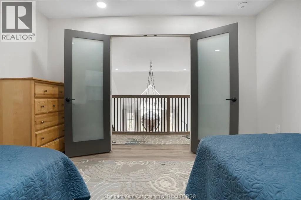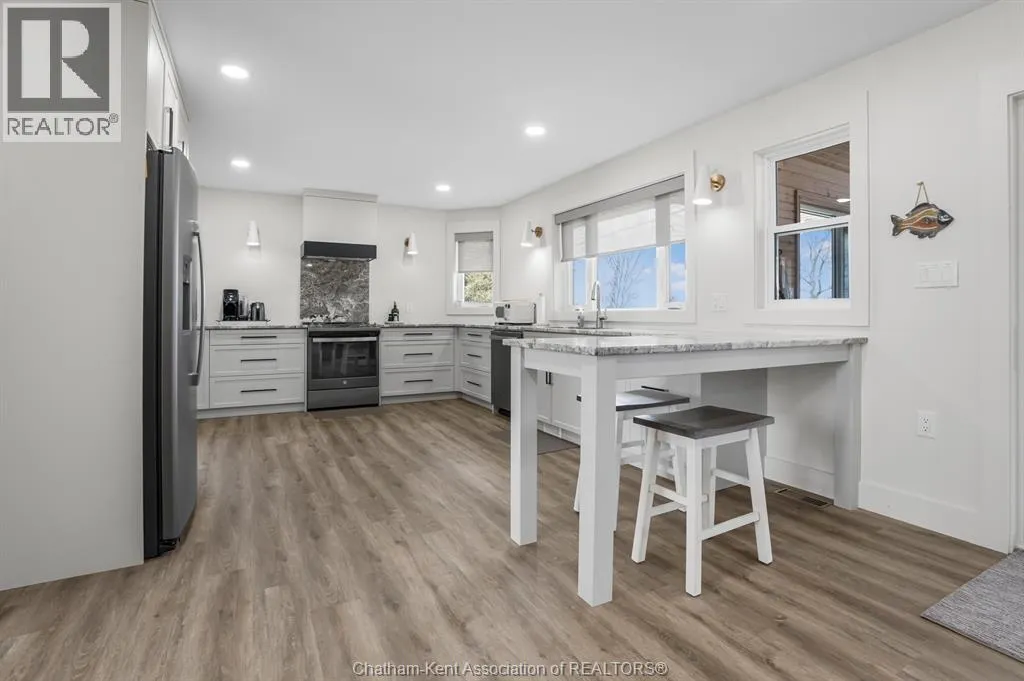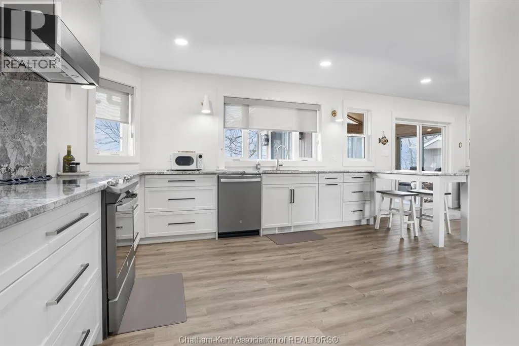 Welcome to beautiful Rondeau Provincial Park in Southwestern Ontario between London and Windsor, where your summer experience in this Carolinian Forest partners with warmer seasonal temperatures and cool Lake Erie breezes. This micro-climate provides rare fauna and trees native to the North and South Carolina areas. Spring arrives earlier and fall lingers to make this truly a multi season cottage or your year round home. Stepping inside this wonderfully remodeled 2 storey home you will be amazed at its sharp and clean features. Beautifully done kitchen cabinets with hard surface countertops, updated appliances, bright natural space and views to the Lake make meal prep in this kitchen an easy task. The common areas are bright with large updated windows. This common area is spacious for family and entertaining throughout the main floor. There is a full bath at the side door for easy access from outdoor areas. The main floor primary bedroom has a modern porcelain tile shower. Second floor has 3 bedrooms accommodating 2 double beds in each room and a full updated bath on the second floor. There are 2 large walk in closets on the second floor for storage or can accommodate extra beds. This home can easily entertain and sleep up to 15 people. There is a sunroom attached off kitchen/dining area. There is a maintenance free composite deck off the sunroom with BBQ space. The outdoor possibilities are endless with hiking, small craft or on shore fishing in Rondeau Bay, and swimming in Lake Erie, or sunning or walking the beach. The sunrise viewing from the property is exquisite, as well as the clear nights with full moon. Star gazers will enjoy a clear dark sky above the water. There is a water treatment system. Also has the safety of a Generac brand generator for the extreme weather events. Rondeau Provincial Park cottages are on leased land. The lease has a current expiration date of December 31 , 2038. Call to personally view this property at any time. (id:27476)