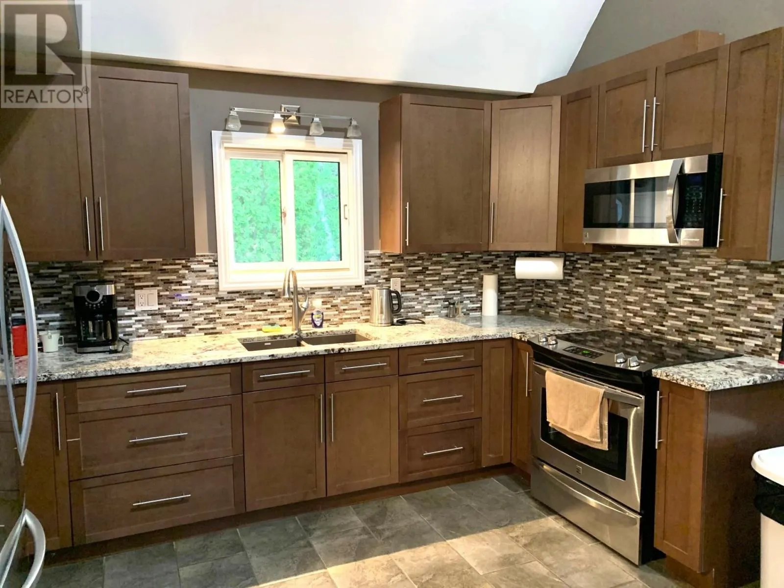 Hwy 11 East of Jellicoe and 15 mins from Downtown Geraldton WILDGOOSE LAKE! year round living on just over an acre of property on Wildgoose Lake 15 mins from downtown Geraldton! This 1980 sqft, 6 bed home features updated kitchen with huge island, vaulted ceilings, modernly painted inside with newer shaker style doors, 2 massive baths, 3 beds on main floor with walk out deck off living/dining, lower level features walk out basement, summer kitchen, 3 beds and large rec room with pellet stove. 3 car detached heated garage with forced air propane heat. gorgeous view off the deck with stairs leading too sauna and entertaining room down by lake Don/t Miss this one! Call Today (id:27476)