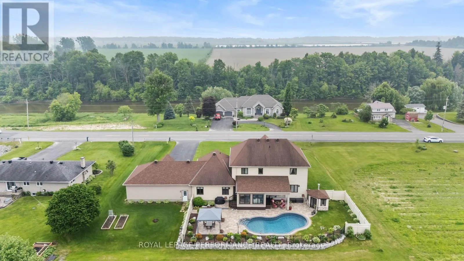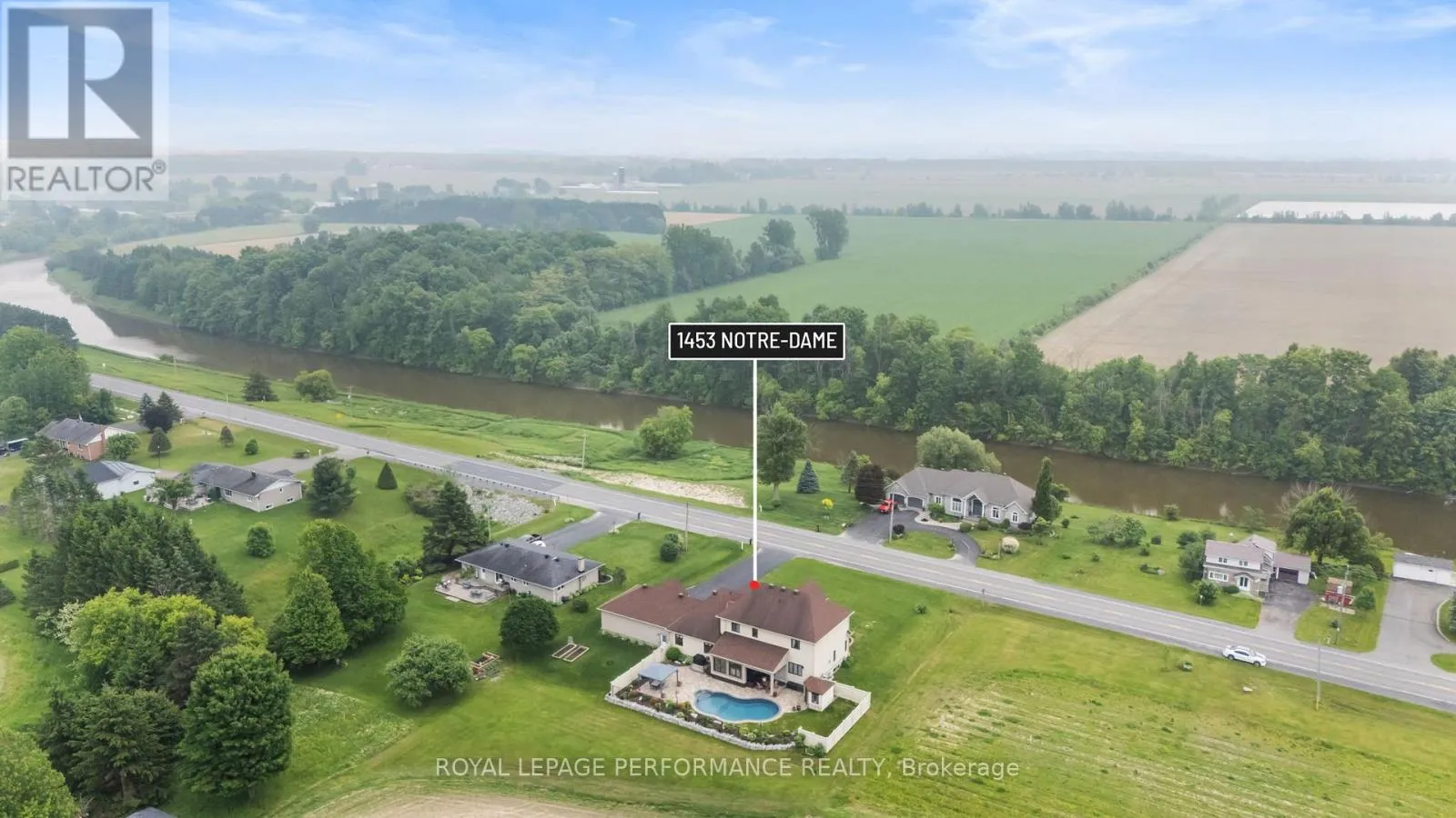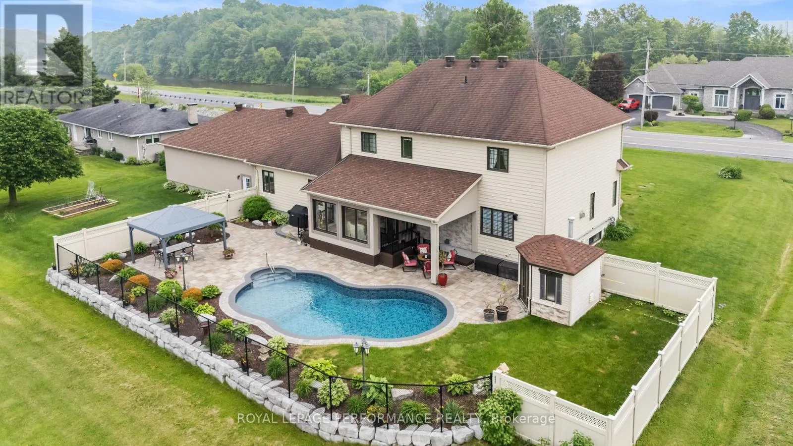 Cross Streets: Notre Dame and Limoges Rd. ** Directions: Hwy 417 to Limoges exit, South on Limoges Rd, right on Notre-Dame. Welcome to 1453 Notre Dame St in Embrun - an exceptional, custom-built home spanning approximately 4,200 sq ft. From the grand foyer, step into a living room that seamlessly flows into a dining area accented by a striking triple-sided gas fireplace. The chefs dream kitchen features a spacious island with granite countertops, a wine fridge, top-of-the-line stainless steel appliances, and custom cabinetry, complemented by an additional dining and living space with vaulted ceilings. Modern potlights and elegant chandeliers throughout add character and warmth. The main floor in-law suite, with its own entrance, radiant flooring & wall unit AC, boasts an open-concept layout and a full bathroom - perfect for extended family or a home business. Upstairs, the master suite impresses with a walk-in closet and a luxurious 5-piece ensuite. Three additional bedrooms and a full bathroom offer space for the whole family. The fully finished basement is equipped with radiant flooring and offers a spacious family room with dry bar, an additional bedroom, full bathroom, a den, and a theatre room with surround sound speakers ideal for movie nights or entertaining. Step out to the 4-season sunroom with a cozy fireplace & heater floors, leading to your private backyard oasis. Enjoy the heated salt water in-ground pool, beautifully landscaped yard with outdoor speakers, covered seating area, gazebo, fenced-in yard, garden beds, green space, and a firepit - no rear neighbours and Embrun's most scenic sunsets included! The 3-car radiant heat garage provides ample storage, while smart built-in speakers throughout, a smart security system, smart lights, a sprinkler system, and a generator complete this exceptional property. Welcome home! (id:27476)