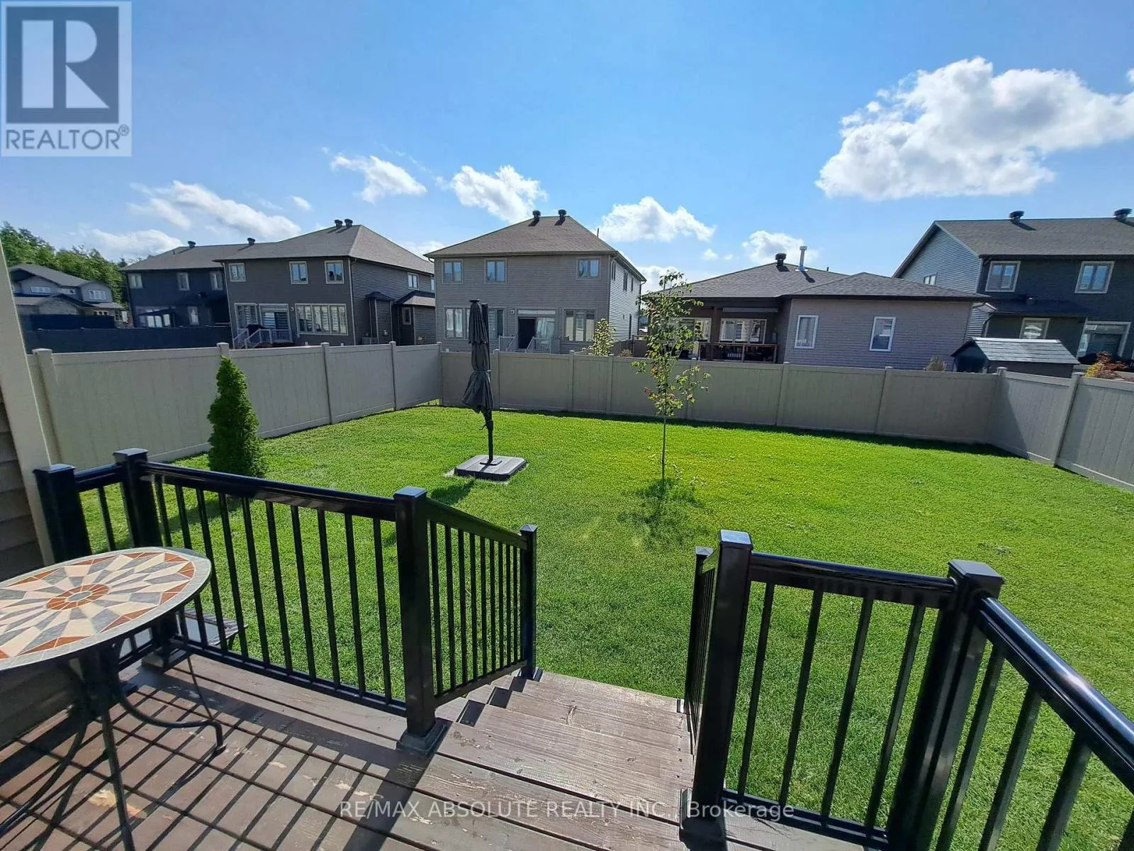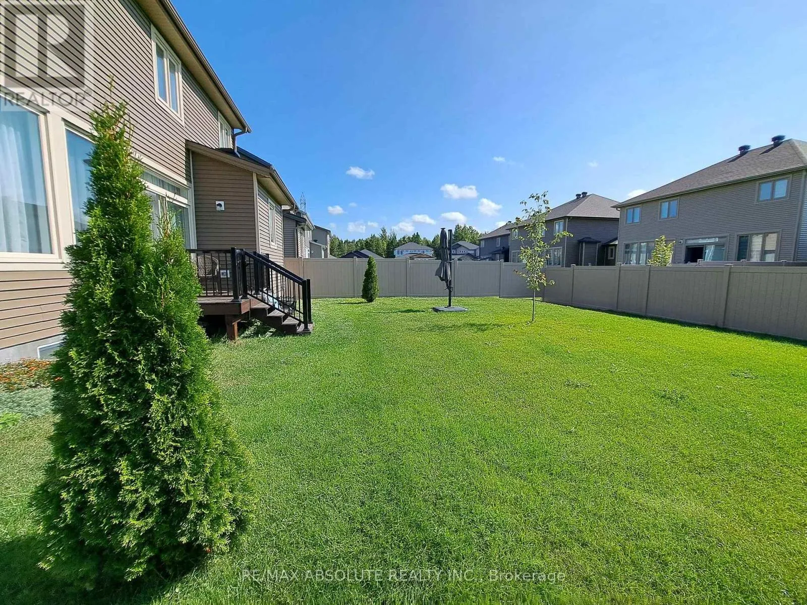 Cross Streets: Central Park Blvd & Parkview Terrace. ** Directions: From Notre Dame roundabout take the exit for Russell on Castor street, take right on Eadie Rd, turn left on Central Park Blvd, turn right on Parkview terrace, the house will be on the left. ** PRICE JUST DROPPED $30,000.00!!** Beautiful 4-Bedroom Tartan Summerhill Home in Family-Friendly Community! Welcome to this stunning 2-storey, 4-bedroom, 3.5-bathroom home built by Tartan in 2022, located in a highly sought-after, family-oriented neighbourhood, near New York Central Recreational Trail & park, close to French/English public and catholic schools, and all amenities in the villages of Russell and Embrun. The main floor features elegant hardwood flooring throughout, a bright home office/den, a formal dining room, and a spacious open-concept kitchen and living area complete with a cozy gas fireplace and sliding doors with deck to the backyard. The kitchen boasts granite countertops, a ceramic tile backsplash, a gas stove, abundant cabinetry, and a functional eat-in island with storage, perfect for both daily living and entertaining. Upstairs, the generously sized primary bedroom offers double walk-in closets and a luxurious 5-piece ensuite with a soaker tub. Three additional bedrooms, a full bathroom, and a convenient laundry room complete the upper level. The semi-finished basement provides even more living space with a large family/rec room, a full 4-piece bathroom, and dedicated storage and utility rooms. This is a perfect place to call home move-in ready and designed for family living. (id:27476)