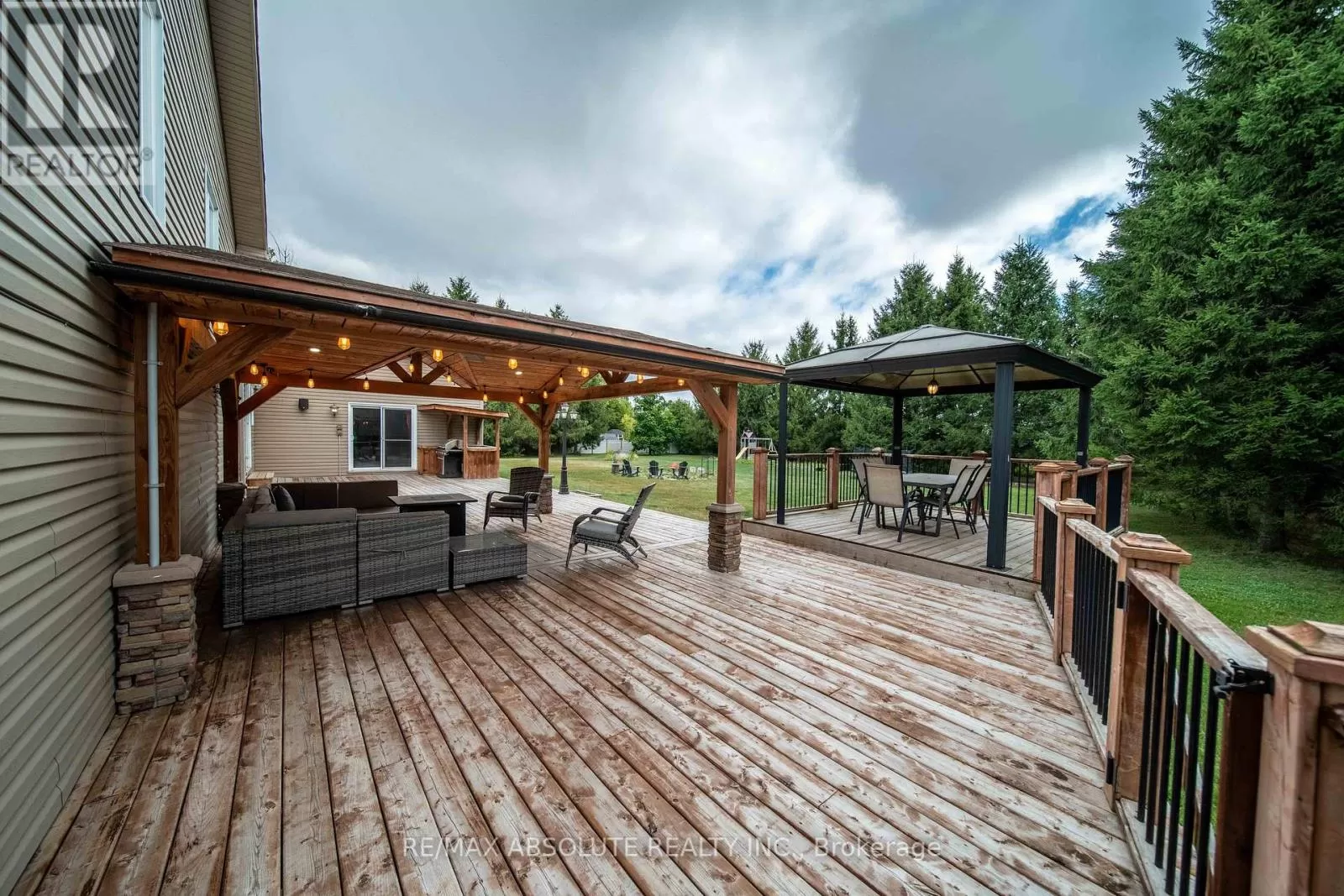 Cross Streets: Rout 300 & St Thomas. ** Directions: From Highway 417 going eastbound, take exit 79 (Limoges), at the light, turn right onto Limoges Road. Take the first exit at the roundabout onto Route 300, at the first stop, turn right and the property will be on your right. Welcome to 735 St. Thomas! This beautiful 5-bedroom, 2.5-bath bungalow sits on a 1.5-acre lot, just minutes from Embrun and all amenities, offering the perfect blend of countryside charm and modern convenience. Step inside to an inviting open-concept layout filled with natural light. The main level features gleaming hardwood and ceramic flooring, a welcoming entrance with a cozy fireplace, and a spacious kitchen with stylish two-tone cabinetry and elegant granite countertops. The primary suite boasts a walk-in closet and a private ensuite for your comfort. The fully finished basement offers a large open space, ideal for entertaining family and friends. A huge heated garage provides ample room to store a mobile home, vehicles, or the potential to transform part of it into an additional entertainment area while still leaving space to park. Outside, enjoy your private backyard oasis complete with a large deck, cozy gazebo, and an outdoor cooking station with a pergola, perfect for gatherings or peaceful relaxation. ** New roof (2022) & new driveway pavement (2024)** (id:27476)