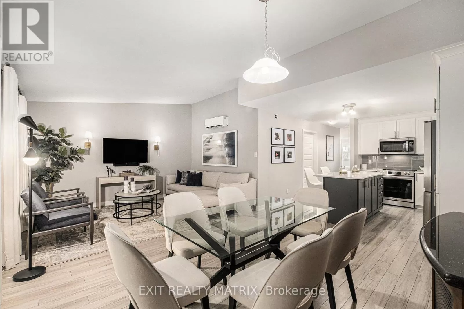Cross Streets: Ste. Marie & St. Moritz. ** Directions: Notre Dame St, turn onto Ste. Marie, turn left onto St. Moritz. Prepare to be wowed by this stunning 2nd-level condo in Embrun - Modern, bright, and absolutely jaw-dropping! From the moment you step inside, natural light pours across the sleek open-concept layout, creating a space that feels both elegant and inviting. At the heart of this condo, the designer kitchen steals the show with its stylish center island, abundant cabinetry, and stainless steel appliances included. Perfect for hosting or simply indulging in everyday luxury. The dining area flows seamlessly to your private covered balcony, where you'll take in peaceful forest views and no rear neighbours a rare and coveted find. With 2 bedrooms, including a comfortable primary suite with a large closet, and a modern 4-piece bathroom, this condo blends comfort with style. Every detail radiates sophistication and functionality. With 1 convenient parking spot and a location close to everything Embrun has to offer shops, trails, and community charm you're not just buying a condo, you're stepping into a lifestyle. (id:27476)