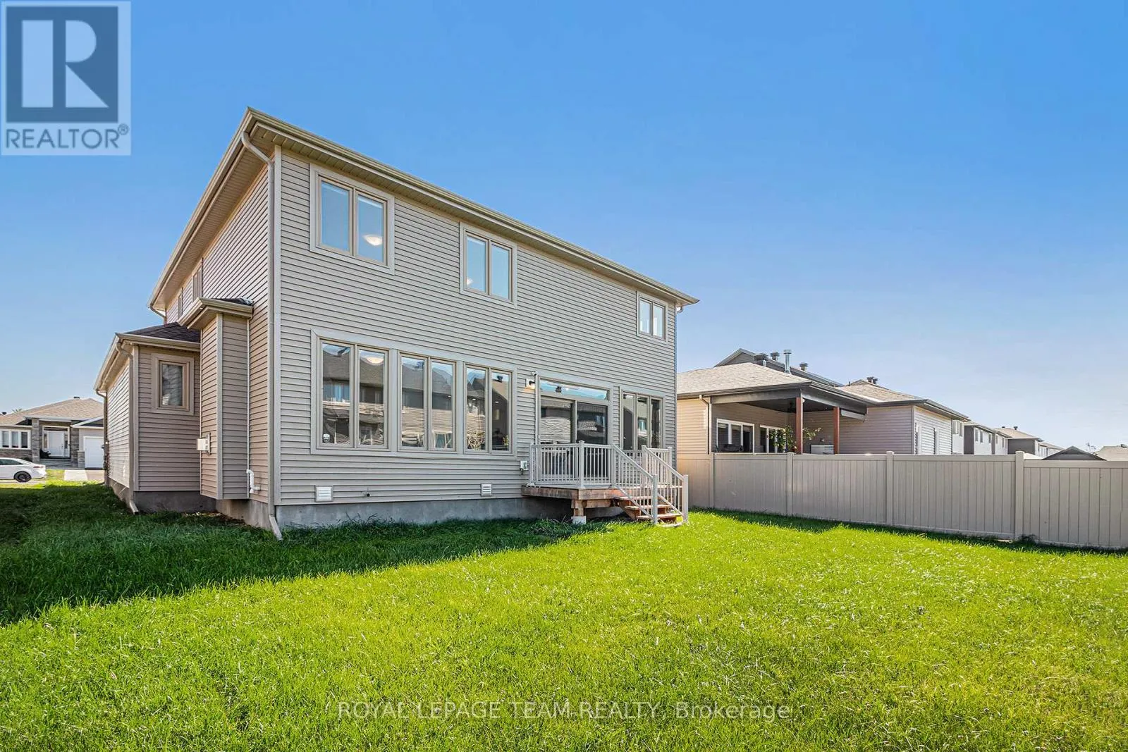 Cross Streets: Central Park Blvd/Eadie Rd. ** Directions: From Highway 417 take St Guillaume Rd South and west on Notre Dame st then take north on Eadie Rd and west on Central Park Boulevard. Welcome to this stunning 4-bedroom, 4-bathroom home in the family-friendly community of Russell. Designed with style and functionality in mind, this home features hardwood and tile flooring throughout the main and second levels, offering a seamless blend of elegance and durability. The inviting living area is centered around a cozy fireplace, perfect for relaxing evenings with family and friends. The chef-inspired kitchen is a true showpiece, complete with a spacious island, Thermador 36 6-burner gas cooktop, Bosch Benchmark wall oven, Bosch dishwasher, and French door refrigerator. Every appliance has been carefully selected for quality and efficiency, making this kitchen ideal for everyday living and entertaining. The second floor features 4 generously sized bedrooms, 4 well-appointed bathrooms, and a layout that blends open-concept living with private retreats, this home offers the perfect balance for modern family life. The premium laundry room is equipped with an LG 5.2 cu. ft. front-load washer and matching steam-clean dryer, offering both convenience and performance. Additional highlights include a 25-year warranty centralized vacuum system. Located in the heart of Russell, close to schools, parks, and amenities, this home is ready to welcome its next chapter. (id:27476)