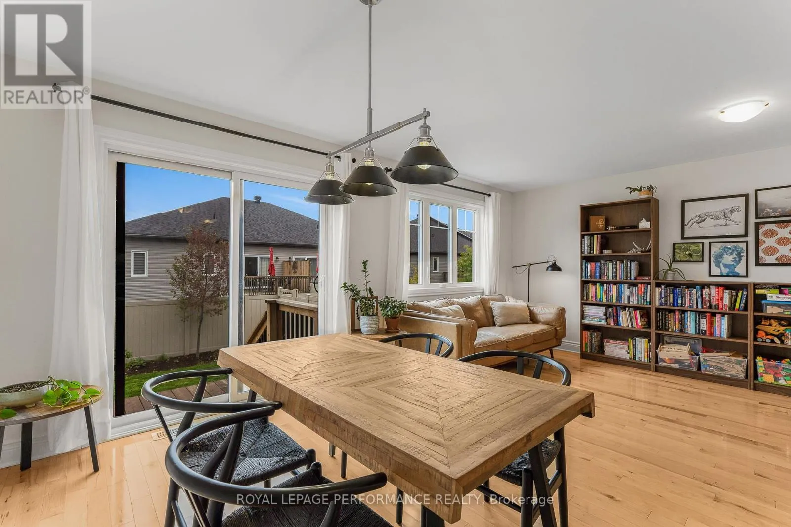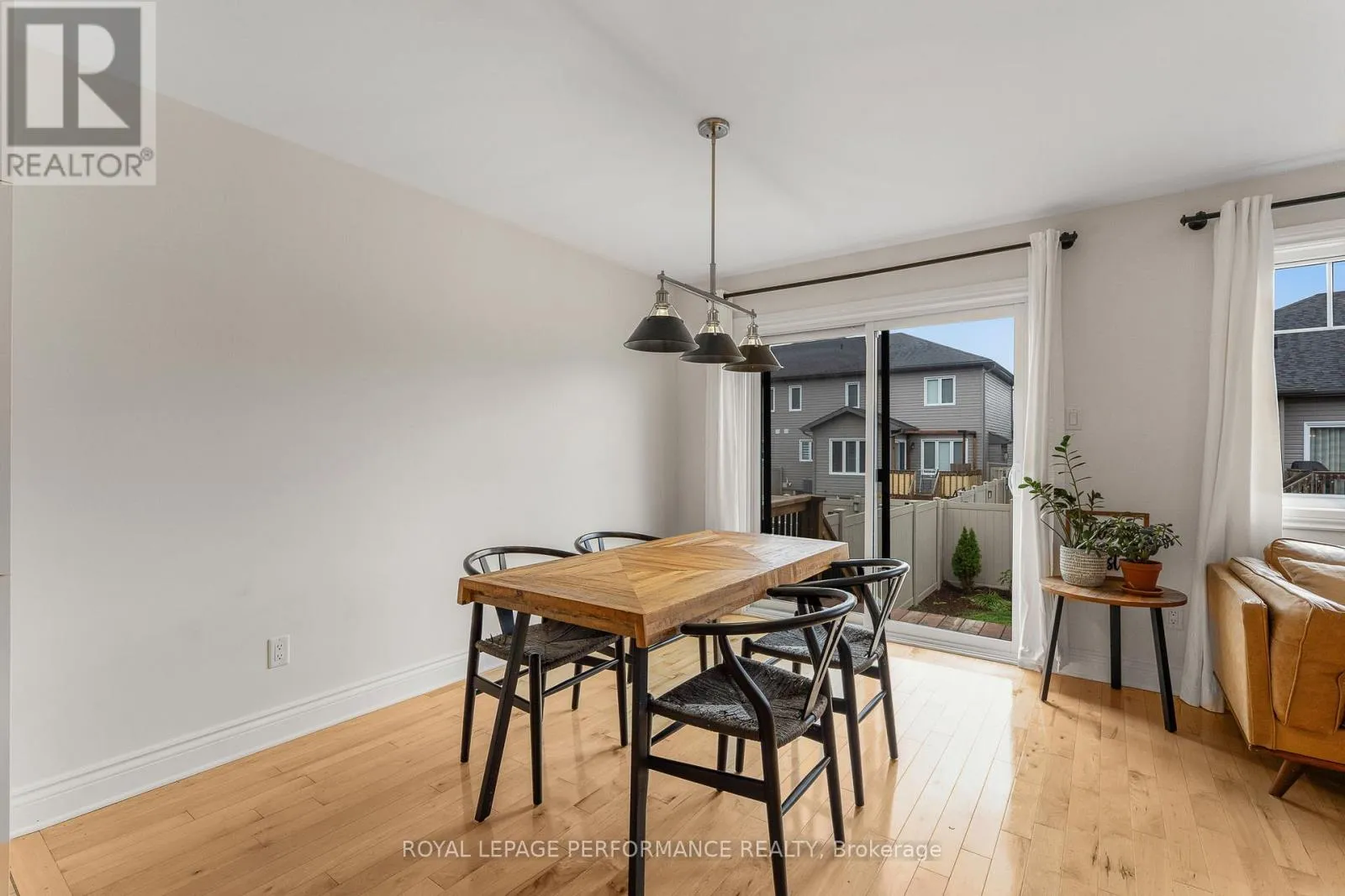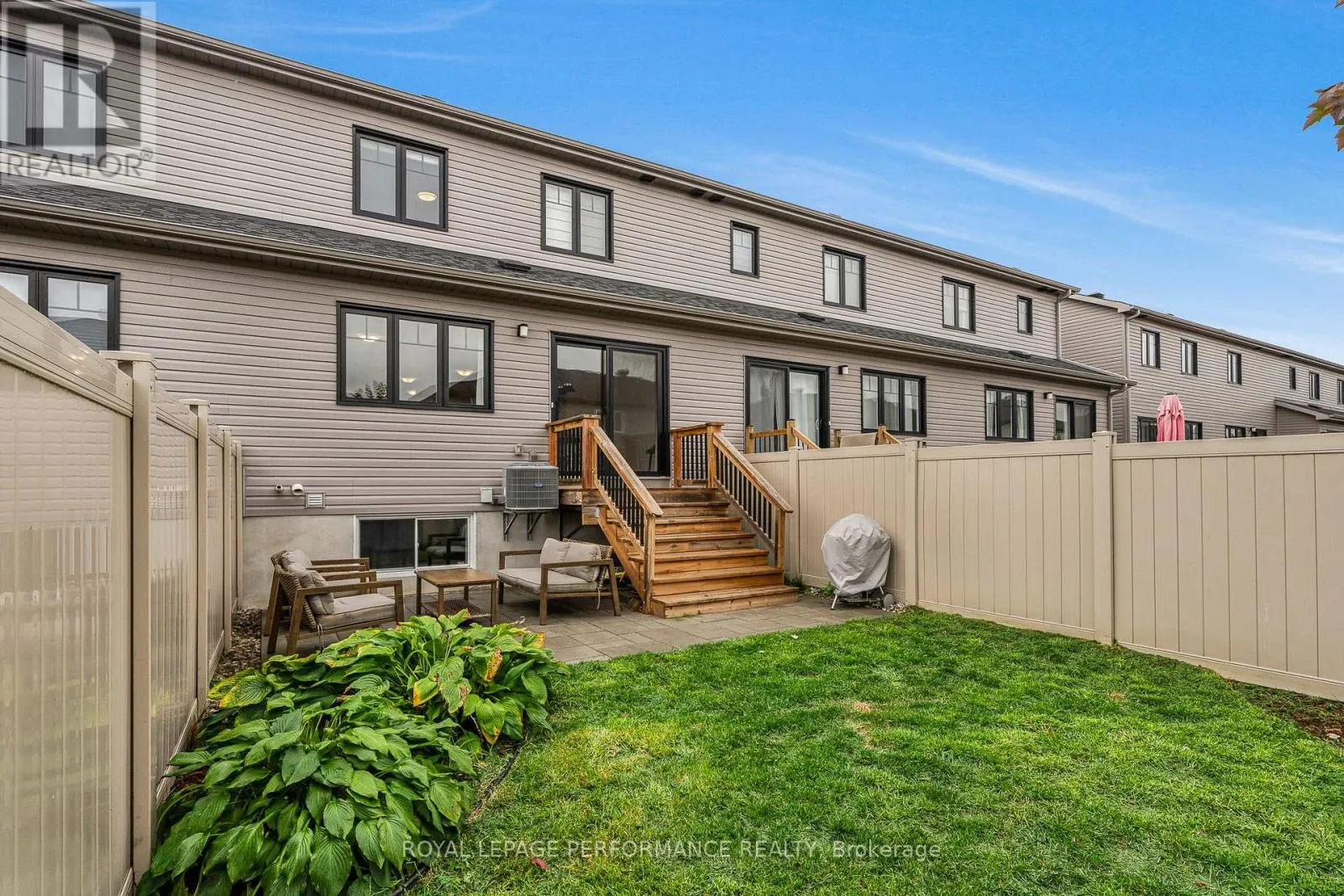 Cross Streets: North Russell Rd and Central Park Blvd. ** Directions: North Russell Rd South to East on Central Park Blvd to South on Twilight Ave. Step into comfort and quality in this beautifully upgraded townhouse located in the sought-after Sunset Flats community. Built by Clement Homes, this bright and modern home offers exceptional finishes, thoughtful upgrades, and a family-friendly layout perfect for everyday living and entertaining.The inviting foyer welcomes you with oversized tile flooring, custom wainscoting, upgraded closet doors, and convenient garage access. Gleaming hardwood floors lead you into the open-concept main living area, where natural light fills the space.The chef-inspired kitchen features stainless steel appliances, granite countertops, extended cabinetry, gorgeous tile backsplash, and a generous island that seamlessly connects to the dining and living areas perfect for gatherings and family meals.Step outside to enjoy your fully fenced backyard complete with a rear deck and interlock patio ideal for BBQs, kids, and pets! Upstairs, the spacious primary bedroom impresses with large windows, a full wall of closets (with potential for a walk-in), and plenty of room to relax. The main bath is tastefully upgraded with double sinks, a custom shower/tub combo, and ample storage space. Two additional bedrooms complete this well-designed second floor.The fully finished basement offers a bright and airy family room, plus a laundry/storage area and utility room. There's also a rough-in for a future bathroom already vented, framed, and wired. Built with quality and efficiency in mind, this home features: 5" baseboards, 6" reinforced concrete party wall, High-efficiency furnace, HRV system, 6'x4' rear deck And much more! Don't miss your chance to own this move-in-ready gem in one of Russells most desirable communities. Schedule your private showing today! (id:27476)