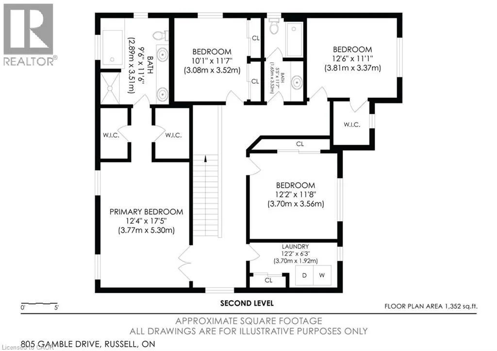 North Russell Rd or Eadie Rd to Central Park Bl. to Gamble Dr. Welcome to 805 Gamble Drive, a stunning 2-storey, 5 Bedrooms, 3 Bathrooms, detached family home in the highly desirable Russell Trails Tartan community. This modern, move-in-ready home (built in 2023) offers over 2,500 sq ft of finished living space on a premium 50-foot lot, featuring an open-concept design and tons of luxury upgrades perfect for a large family lifestyle. The main floor offers 10-foot ceilings, hardwood flooring, and large windows that fill the home with natural light. The open-concept main floor boasts a separate formal dining room with crown molding, a spacious great room with a gas fireplace, and a main-floor den, office or 5th bedroom with elegant French doors, ideal for a guest suite. The chef-inspired kitchen features quartz countertops, a large center island with breakfast bar, stainless-steel appliances, a modern designer herringbone backsplash, and extended cabinetry additional to abundant pantry storage. Perfect for entertaining family and friends! Upstairs offers four generous bedrooms, including a large luxurious primary suite with two walk-in closets and spa-style ensuite bathroom with separate shower, soaker tub and Jack and Jill double sinks. Additional bedrooms are spacious and bright, ideal for children, guests, or a home office setup. There is even more flexibility for a basement home gym, media room, or play area with wide windows throughout. Situated on a quiet, family-friendly street, the property faces the views of community pond, park, and walking paths, and just minutes from schools, shopping, restaurants, and the Russell Fairgrounds & Arena. The New York Central Fitness Trail which connects you to Embrun is ideal for a leisurely bike ride or a refreshing run. Some photos AI stagged (id:27476)