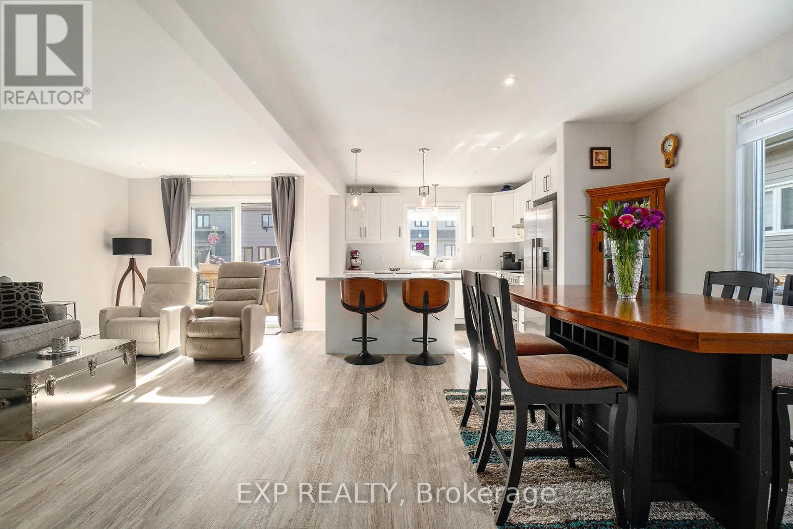 Cross Streets: Central Park/Azure. ** Directions: Central Park to Azure. Welcome to 704 Azure, a 3 bedroom, 2.5 bath semi-detached two-storey in the desirable Sunset Flats community of Russell. Designed with everyday living in mind, this home combines style, function and comfort in an open, light-filled layout. The main floor features a spacious living room with abundant natural light, a kitchen with ample cabinetry, central island with breakfast bar seating and stainless-steel appliances that overlooks a dining area. Luxury vinyl flooring runs throughout the living spaces, with ceramic tile in wet areas for easy maintenance. Upstairs, retreat to the primary suite complete with a walk-in closet and 4-piece ensuite with large walk-in shower. Two additional bedrooms, a full bath and the convenience of second-level laundry completes this level. The partially finished basement is ready for your personal touch whether you want to create a home gym, media room or recreation space. Outdoors, enjoy a west-facing backyard perfect for afternoon sun and evening relaxation. Located on a 35 ft frontage lot with double-wide driveway and attached garage. A double door side access to the backyard makes storage and yard use even more practical. The backyard is fully fenced with a deck area, covered gazebo and greenspace: perfect for kids, pets and peaceful downtime. All this just steps to schools, parks, trails, and recreation, with downtown Ottawa only 20 minutes away. Move-in ready and waiting for you! (id:27476)