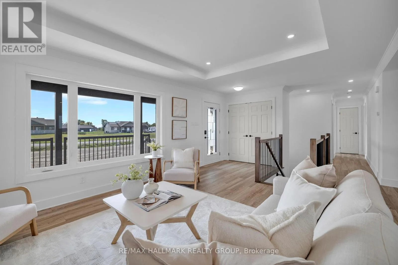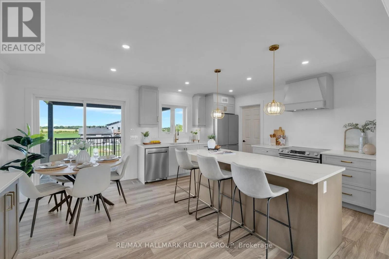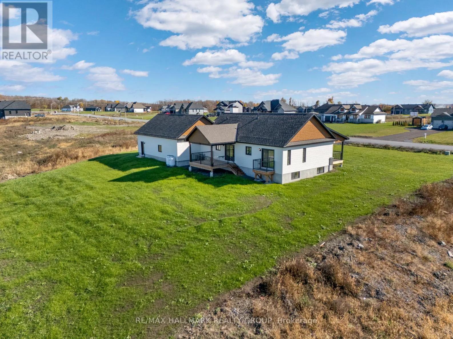 Cross Streets: Gregoire Road/Route 500. ** Directions: Gregoire Road to west of Route 500, right on Dagenais and left on Trudeau. Are you looking for a new build but don't want to wait? This home is ready to move in now! Welcome to this brand new 2 bedroom, 2 bathroom custom built Guildcrest bungalow in Russell Ridge Estates! Fabulous curb appeal with the amazing welcoming covered front porch spanning the entire length of the home, perfect to enjoy morning coffee or to relax. Modern open-concept floor plan. The bright and inviting living room features a gas fireplace flanked by windows on each side. The gorgeous kitchen includes an abundance of maple cabinets, quartz counters, trendy gold coloured fixtures and a large island (7'5" x 3') with a breakfast bar. The kitchen has access to the laundry room and additional pantry shelving. The dining area features a beverage bar, additional cabinetry and has patio door access to the rear deck. The primary bedroom suite enjoys a 3 piece ensuite bathroom with double shower, as well as a large walk-in closet, and patio door access to a private deck. A second good-sized bedroom and full 4 piece bathroom complete the main level. The unfinished basement is nice and high and ready for your personal touch with insulation and drywall already in place on the walls and a rough-in for a future bathroom. Great backyard space. There is a large covered rear deck (15'5" x 12') to enjoy BBQ's and outdoor living. You'll love the huge 3 car garage with inside access. Quick access to amenities in Russell Village as well as in Embrun. Minimum 24 hour irrevocable on offers. (id:27476)