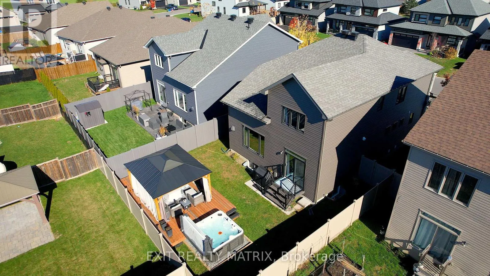 Cross Streets: Lucerne & Strasbourg. ** Directions: From Notre Dame St. in Embrun, head north on St Thomas Rd. Turn left on Lucerne St. Right Strasbourg. Step inside and fall in love. This show stopping 4-bedroom, 2-storey home is immaculate from top to bottom-bright, airy, and filled with natural light. The gourmet kitchen steals the show with endless cabinetry, sleek counters, a stylish sit-at island, and a sun-drenched breakfast nook with patio doors leading to your backyard paradise. The living room is pure elegance, featuring a breathtaking floor-to-ceiling stone fireplace and large windows that fill the space with warmth and light. A convenient main-floor bedroom (currently an office) and a chic 2-piece bath complete this level. Upstairs, the open mezzanine creates a dramatic first impression. The primary suite is your personal retreat with a dreamy walk-in closet and a spa-inspired 5-piece ensuite. Two additional bedrooms connect through a Jack & Jill bathroom, and the dedicated laundry room keeps everything effortlessly organized. The lower level is insulated, features a bathroom rough-in, and is ready for your imagination-home gym, theatre, or extra suite-the possibilities are endless. Outside, the magic continues with a private hot tub, gazebo, and spacious deck-all within a fully fenced backyard oasis designed for unforgettable evenings under the stars. This isn't just a home-it's a lifestyle. (id:27476)