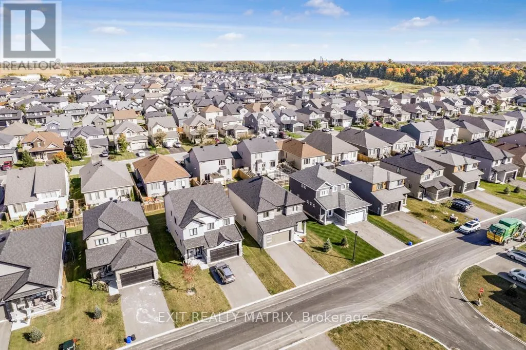 Cross Streets: Lucerne & Namur. ** Directions: Head south on St Thomas Rd toward Lyon St. Turn right onto Lucerne Dr. Turn right onto Namur St and the destination is on the right. Discover your dream home in Embrun! This stunning 4-bedroom + den, 3-bathroom residence by award-winning Valecraft Homes offers 2,376 sq.ft. of beautifully designed living space-just 25 minutes from Ottawa. Step inside to find gleaming hardwood floors and a bright, open-concept layout perfect for both family living and entertaining. The inviting living room features a cozy gas fireplace, creating the ideal ambiance for relaxation. The chef-inspired kitchen impresses with stainless steel appliances, a walk-in pantry, and a spacious island, flowing seamlessly into the dining area with patio doors leading to the backyard. A welcoming sitting area, large den/home office, stylish partial bath, and oversized garage complete the main level. Upstairs, you'll find four generous bedrooms and two well-appointed bathrooms, including a primary suite with walk-in closet and spa-like 4-piece ensuite. The unfinished lower level offers endless potential to customize to your taste. Conveniently located close to schools, parks, shops, and all amenities, this home truly combines comfort, style, and convenience. (id:27476)