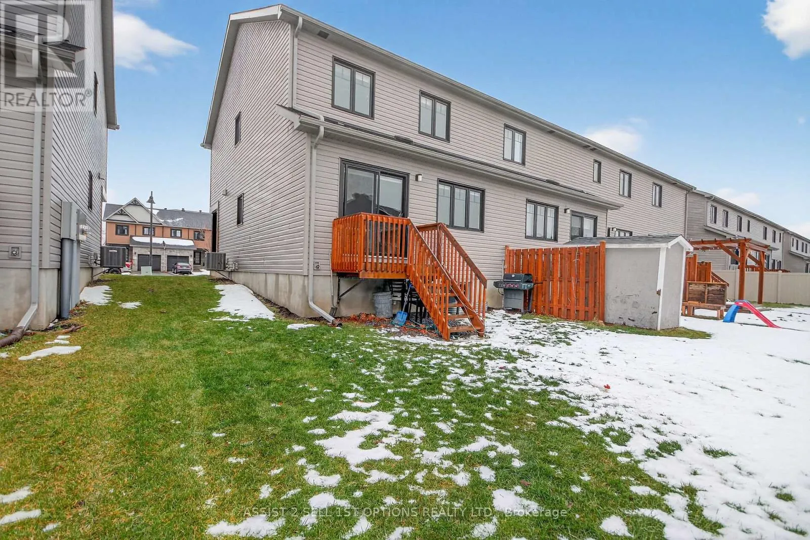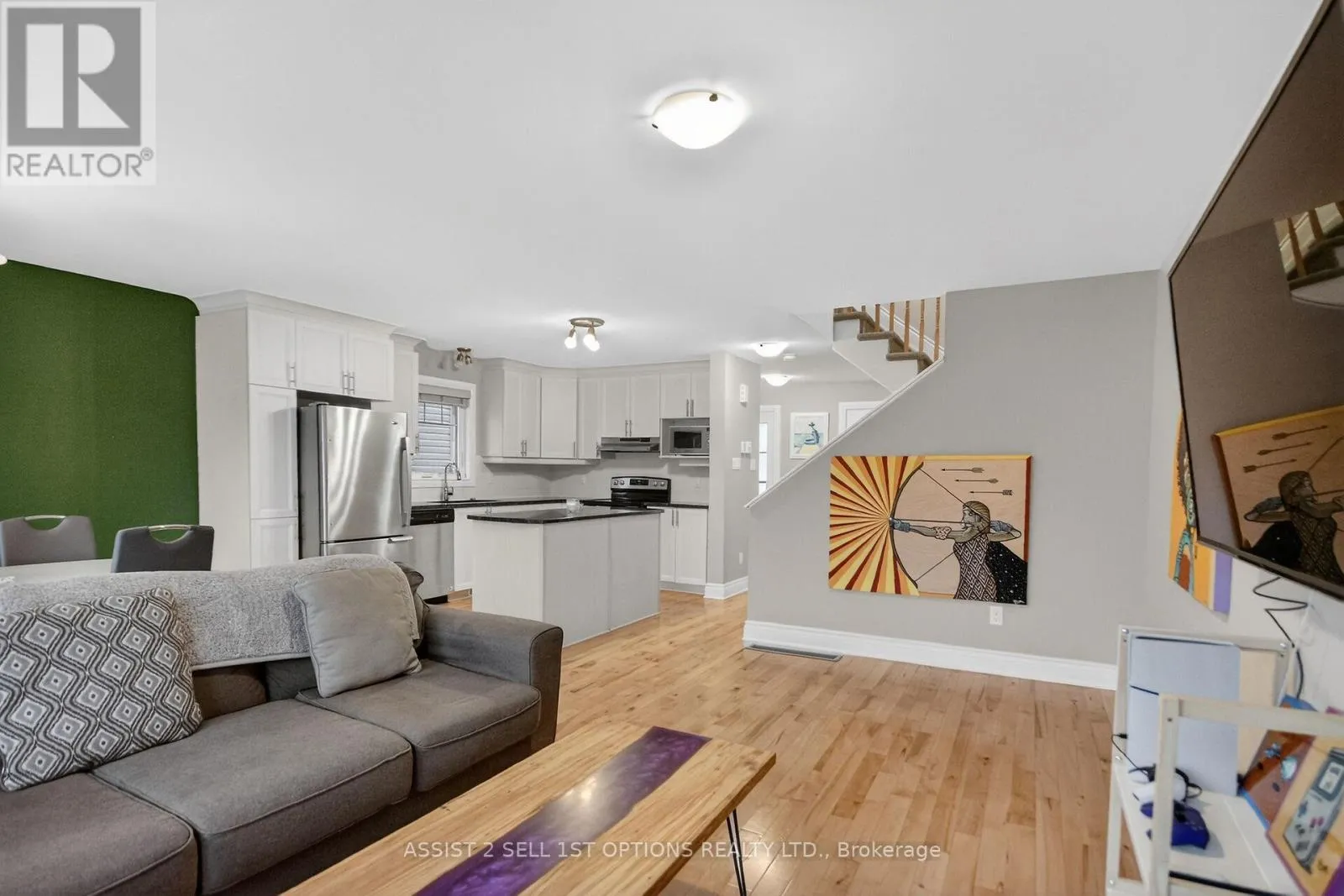 Cross Streets: Central Park Blvd. ** Directions: Off Central Park. Welcome to 355 Twilight Ave in the sought-after Sunset Flats area of the Town of Russell-an exceptional END -unit townhome widened by 4 ft. and offering nearly 1,400 sq ft on the main level plus a finished basement . This bright 3-bedroom home features a welcoming foyer with ceramic floors and double closet, a modern kitchen with granite countertops, crown moulding above cabinets, stainless steel appliances, and hardwood flooring throughout the main level. The living and dining areas are filled with natural light from large, bright windows. The spacious primary bedroom with two closets and well-sized secondary bedrooms are complemented by a main bathroom with double sinks. The finished basement offers a large rec room and full bath, plus a unique separate door providing excellent rental or in-law suite potential. Close to parks, schools, shopping, trails, and community amenities, with easy access to downtown Ottawa. (id:27476)