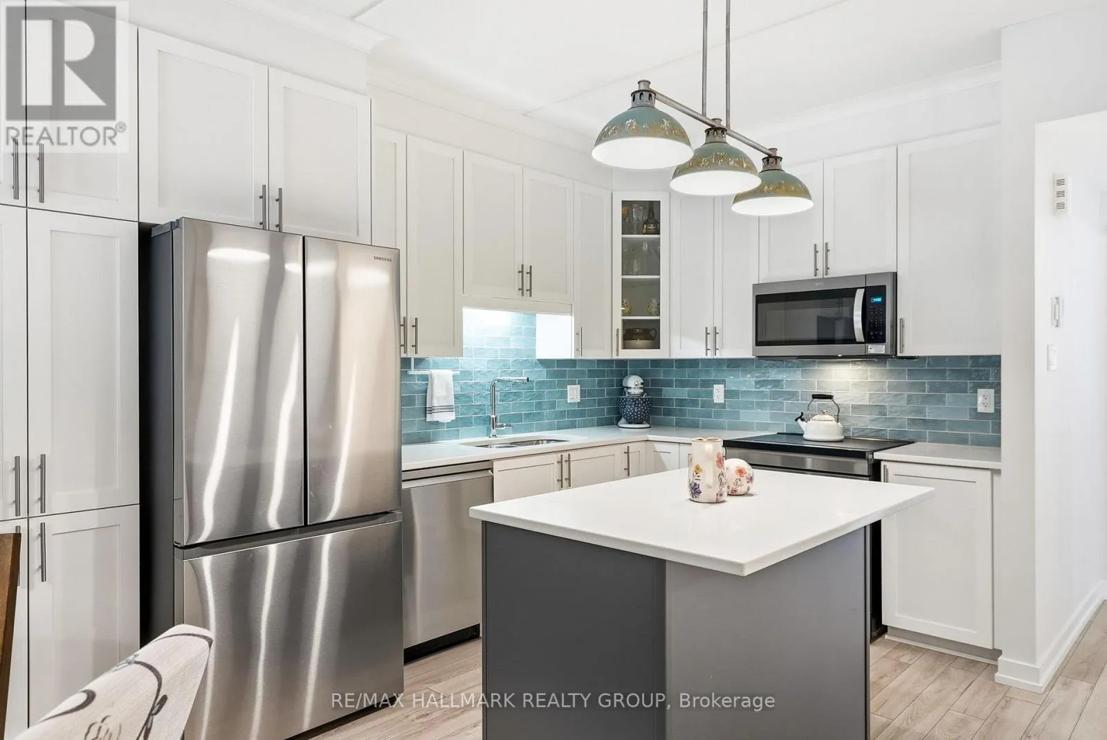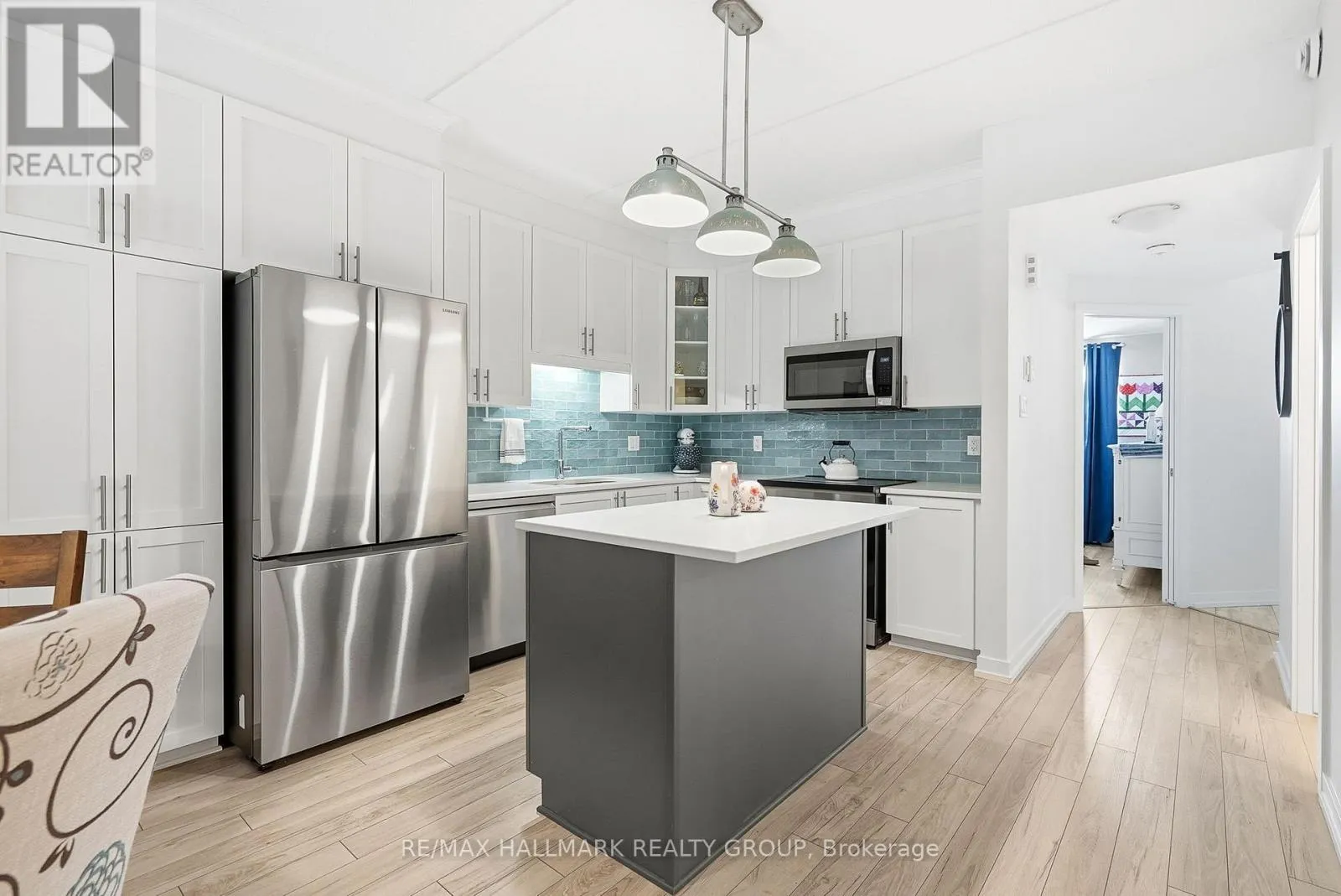 From the 417-HWY east, take exit 88 (Vars/Embrun), turn right onto St-Guillaume, at the roundabout take 3rd exit onto St Pierre, continue onto Ste-Marie, turn left onto St Moritz Trail. Welcome to 99 St. Moritz Trail, Unit 408 - a beautifully designed lower-level home offering privacy and tranquil views backing onto the Castor River. This modern unit features 2 bedrooms and 1.5 bathrooms, with a spacious open-concept living and dining area ideal for both everyday living and entertaining. The kitchen showcases quartz countertops, a stylish ceramic tile backsplash, and upgraded light fixtures. The main bathroom was updated in 2024, while the laundry room has been thoughtfully converted to include a convenient 2-piece bath. Radiant in-floor heating adds an extra level of comfort and efficiency throughout. The enclosed patio with retractable three-season windows provides serene views of mature trees and lush surroundings and also houses a dedicated storage room-perfect for enjoying the outdoors in comfort. Located in a prime, highly accessible area with quick access to major highways, shopping, and dining. Just a short walk to a park and scenic walking trails surrounding a tranquil pond. Parking included. A perfect blend of modern upgrades, privacy, and nature-this home is not to be missed. 24 hour irrevocable. (id:27476)
