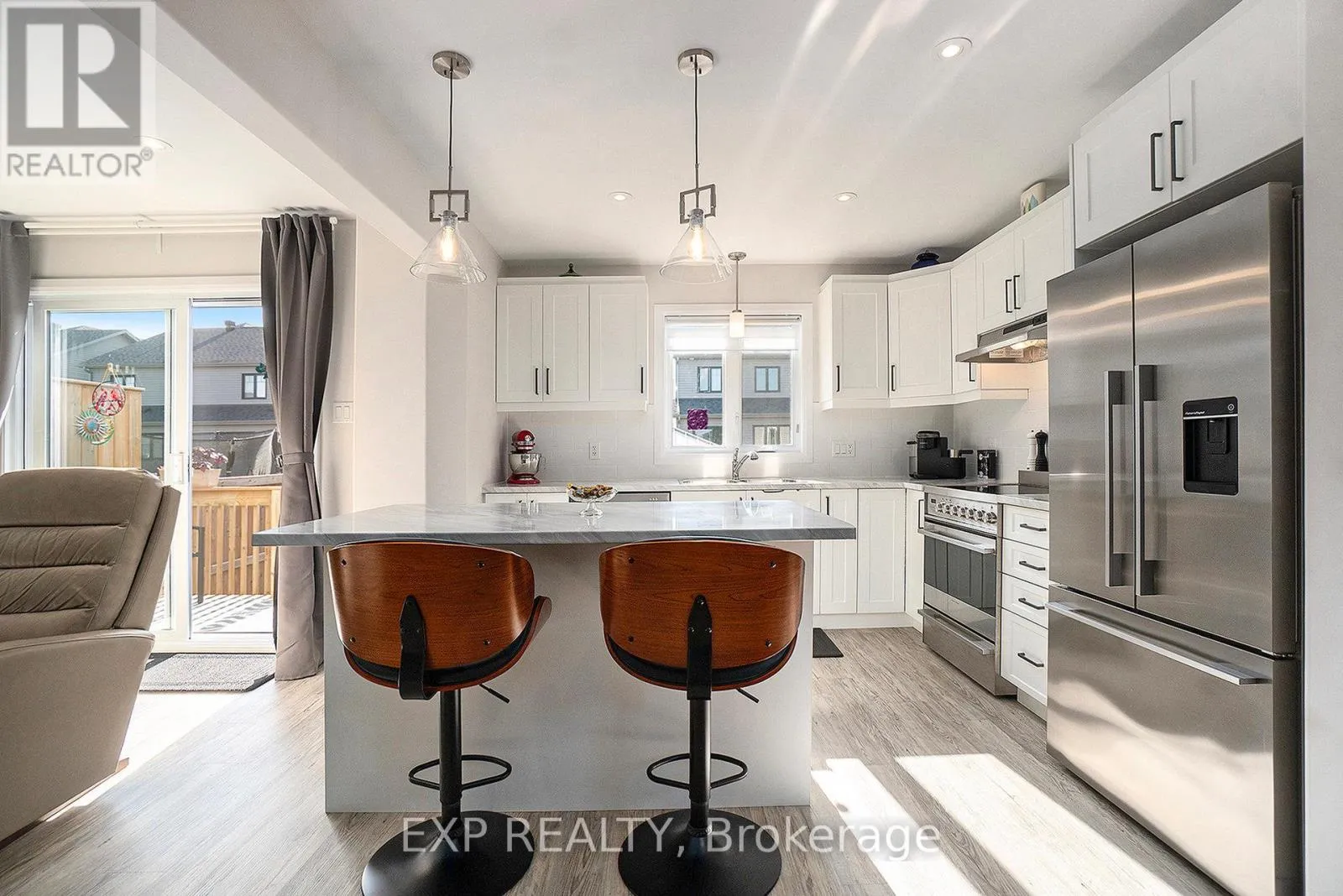 Cross Streets: Central Park/Azure. ** Directions: Central Park to Azure. *OPEN HOUSE SUN 15TH FEB 2-4PM* Welcome to 704 Azure, a turnkey 3 bedroom, 2.5 bath semi-detached two-storey home located in the sought-after Sunset Flats community of Russell. Thoughtfully designed and well laid out, this home offers a bright, open-concept layout that blends comfort, function, and contemporary style.The main level features a spacious, sun-filled living room, a well-appointed kitchen with ample cabinetry, stainless steel appliances and a central island with breakfast bar seating, all overlooking the dining area-ideal for everyday living and entertaining. Luxury vinyl flooring flows throughout the principal living spaces, complemented by ceramic tile in wet areas for easy maintenance. Upstairs, the primary suite provides a relaxing retreat with a walk-in closet and a 4 pc ensuite w/ large walk-in shower. Two additional bedrooms, a full bathroom and the convenience of second floor laundry complete this level. The partially finished basement offers flexibility and is ready for your personal touch - ideal for a home gym, TV room or recreation space. Outside, enjoy a west-facing, fully fenced backyard with a deck, covered gazebo and green space - ideal for kids, pets and relaxation. A double door side access adds practicality for storage and yard use. Situated on a 35-ft frontage lot with a double-wide driveway and attached garage, this move-in-ready home is just steps from schools, parks, trails, and recreation, with downtown Ottawa only 20 minutes away. (id:27476)