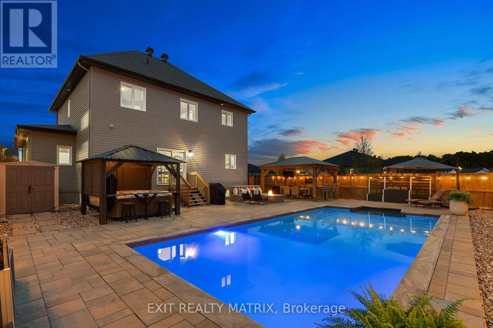 Cross Streets: Lucerne and Colmar. ** Directions: From Notre Dame St head north on St Thomas Rd. turn left on Lucerne Dr, right on Colmar. Home is on the corner Lucerne and Colmar. Located just 30 minutes from Ottawa and the downtown core, this beautifully updated two-storey home in the heart of Embrun offers the perfect balance of small-town charm and city convenience. Enjoy the space, privacy, and strong sense of community while staying easily connected for work, dining, and entertainment. Offering 4+1 bedrooms and a host of modern upgrades, this property combines timeless charm with modern comfort. The main level is thoughtfully designed, featuring a bright and inviting living room with a cozy gas fireplace and a chef-style kitchen with a center island, pantry, and abundant cabinetry. The seamless flow between spaces makes it perfect for family gatherings and hosting guests. Upstairs, the spacious primary suite includes a walk-in closet and ensuite. The finished basement expands the living space with oak stairs, a stylish wet bar, and a second fireplace - an entertainer's dream. Step outside to your private backyard retreat. This fully landscaped corner lot showcases a heated saltwater inground pool, hot tub, two gazebos, natural gas outdoor fireplace, gas BBQ hookup, and interlock with firepit and seating. The front yard was refreshed with new interlock and landscaping, adding striking curb appeal. Other updates include a modern laundry room and many thoughtful upgrades throughout, ensuring comfort and peace of mind. Every detail reflects pride of ownership and care. This is a rare opportunity to own a gorgeous home in excellent condition, offering elegance, lifestyle, and exceptional entertaining spaces in a growing, sought-after community. (id:27476)
