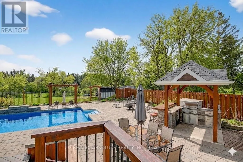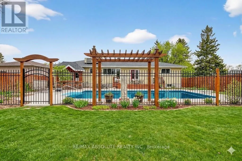 Cross Streets: Notre-Dame Street & St Guillaume Road. ** Directions: Taking exit 88 off of HWY 417 (Vars), going East Bound, turn right on St-Guillaume, take the second exit of the first roundabout. At the second roundabout, take the second exit onto Notre-Dame. The property will be on the right side of the street. Impeccably renovated waterfront bungalow in the heart of Embrun! This exceptional property features an in-ground pool, a covered outdoor kitchen, and a separate in-law suite, offering the perfect blend of comfort, functionality, and country charm. Ideally located within walking distance to grocery stores, the sports dome, the recreation centre, and bike trails. The bright main level offers a sun-filled formal dining room, a warm sunken living room, and a stunning kitchen with a large quartz island, stainless steel appliances, cooktop, abundant cabinetry, and a dedicated coffee bar. Expansive windows overlook the waterfront backyard and provide direct access to the outdoor space. Extensive custom cabinetry is featured throughout the main level, including the dining, living, office, and primary bedroom with a full wall of closets, offering exceptional storage. This level also includes two generously sized bedrooms, a versatile office/den-ideal for a home office or small business-and a 5-piece bathroom. The fully finished lower level boasts a spacious recreation room with a wet bar, a laundry room with wall-to-wall cabinetry and a hang-dry station, a mechanical/storage room, cold storage, and a 4-piece bathroom. The separate entrance in-law suite includes a kitchen, living area, bedroom, and 4-piece bathroom-perfect for multi-generational living or home-based business use. Outside, enjoy a private oasis with an extensive interlock patio, a well-maintained in-ground pool, an outdoor shower, and a garden shed. The covered all-cedar cathedral outdoor kitchen features granite countertops, sink, fridge, searing bar, built-in DCS BBQ with rotisserie and gas burner (natural gas), and stainless steel cabinetry. A generously sized heated garage completes this outstanding property. (id:27476)