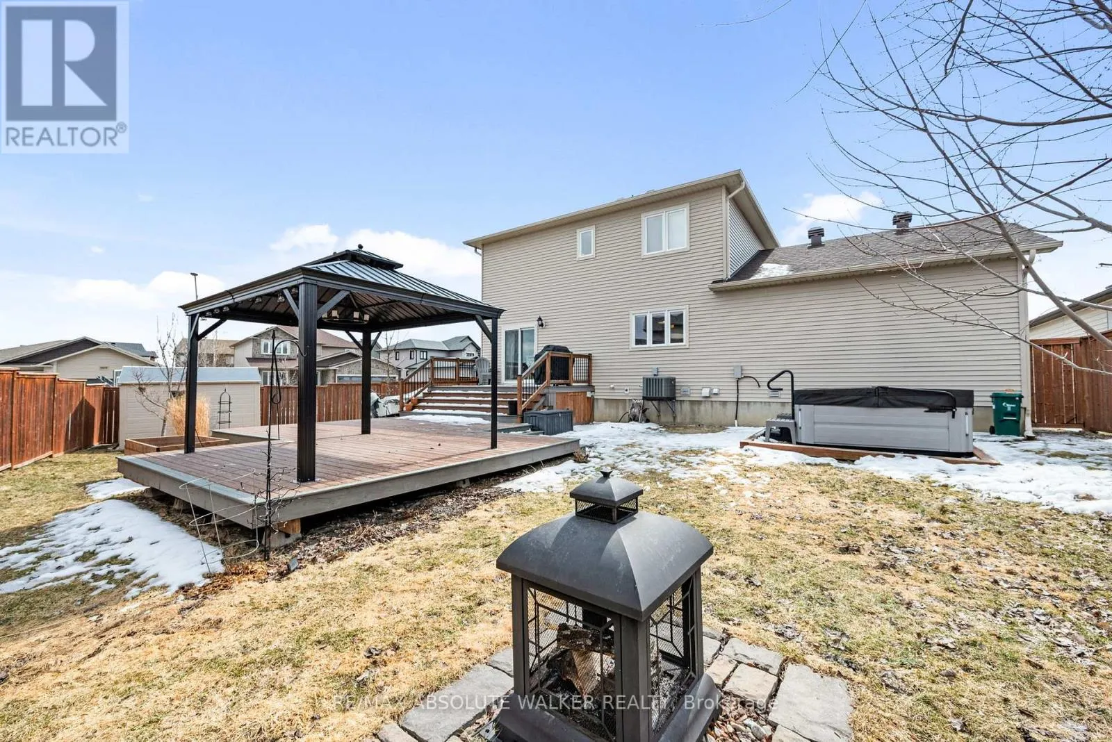 Cross Streets: Russell Rd and Concession St. ** Directions: Russell Rd to York Crossing to Settlement Ln. Stunning Corvinelli built Venezia model on a premium corner lot in the sought-after, family-oriented Russell Trails community, ideally located on a quiet street known for its strong sense of community and perfect for families. This bright, well-designed home offers a seamless layout for everyday living and entertaining, featuring a gorgeous kitchen that opens to the eating area and spacious living room, so you are always part of the conversation. Upstairs offers three well-sized bedrooms, including a standout primary suite with a feature wall, walk-in closet and beautifully finished ensuite. The lower level is ready for your personal touch, whether you envision a rec room, home gym or a fourth bedroom. Step outside to a private, fully fenced backyard complete with a large deck and gazebo, with a hot tub rough-in, creating an ideal extension of your living space and a safe area for kids and pets. Enjoy the charm of Russell with its local shops, restaurants, parks, schools and community amenities all nearby. Flooring includes hardwood, ceramic and wall-to-wall carpet. Minimum 24 hours irrevocable on all offers. (id:27476)