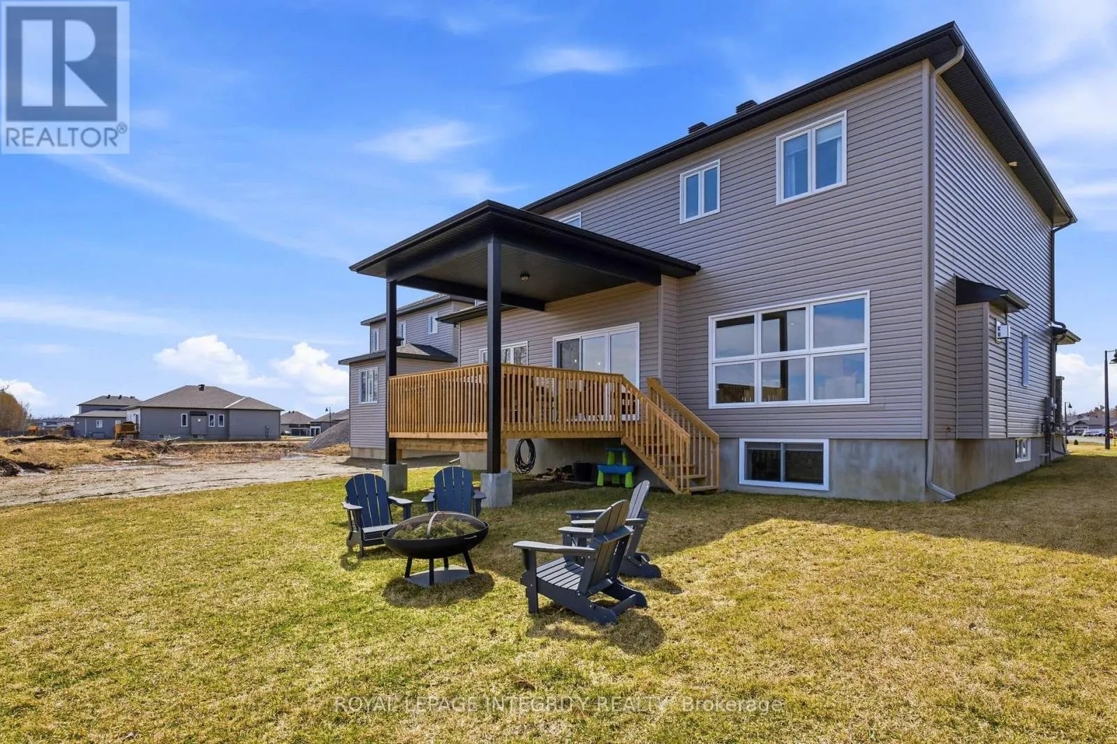 Cross Streets: Aurora St. ** Directions: Russel Rd to Central Park Blvd to Moonlight. Show-stopping DESIGNER HOME in the heart of Russell. This extraordinary, customized Castleview model offers over 2500 sqft above grade of thoughtfully designed, luxurious living space, set on a premium lot with no rear neighbours delivering exceptional privacy and tranquility. The inviting entryway unveils a beautifully curated open-concept main floor designed to balance relaxed daily living with refined entertaining. A warm and sophisticated living space, centred around a gas fireplace, transitions effortlessly into the dining area and onward to the showpiece kitchen featuring a butler's pantry and a striking statement island designed for gathering. A stylish and functional main floor office provides the ideal work-from-home setup, complemented by a well-designed mudroom with access to the oversized 3-car garage and paved driveway. Upstairs, the primary suite is a true oasis complete with a dreamy walk-in closet and a spa-inspired ensuite showcasing a standalone tub and glass shower. Two additional spacious bedrooms, a full bathroom, and a versatile loft offer flexibility for growing families, while the conveniently located upper-level laundry adds everyday ease. The professionally finished lower level sets this home apart, featuring a large recreation room, two additional bedrooms, a full bathroom, and ample storage space. Enjoy the best of small-town living with unbeatable walkability just steps to schools, grocery stores, cafés, Home Hardware, local spa, pharmacy, and more, with an easy commute to Ottawa. Russell's vibrant community offers year-round family-friendly events, a sports dome, tennis courts, and an exceptional lifestyle. A rare opportunity to own a truly turnkey, designer home in one of Russell's most sought-after settings. (id:27476)