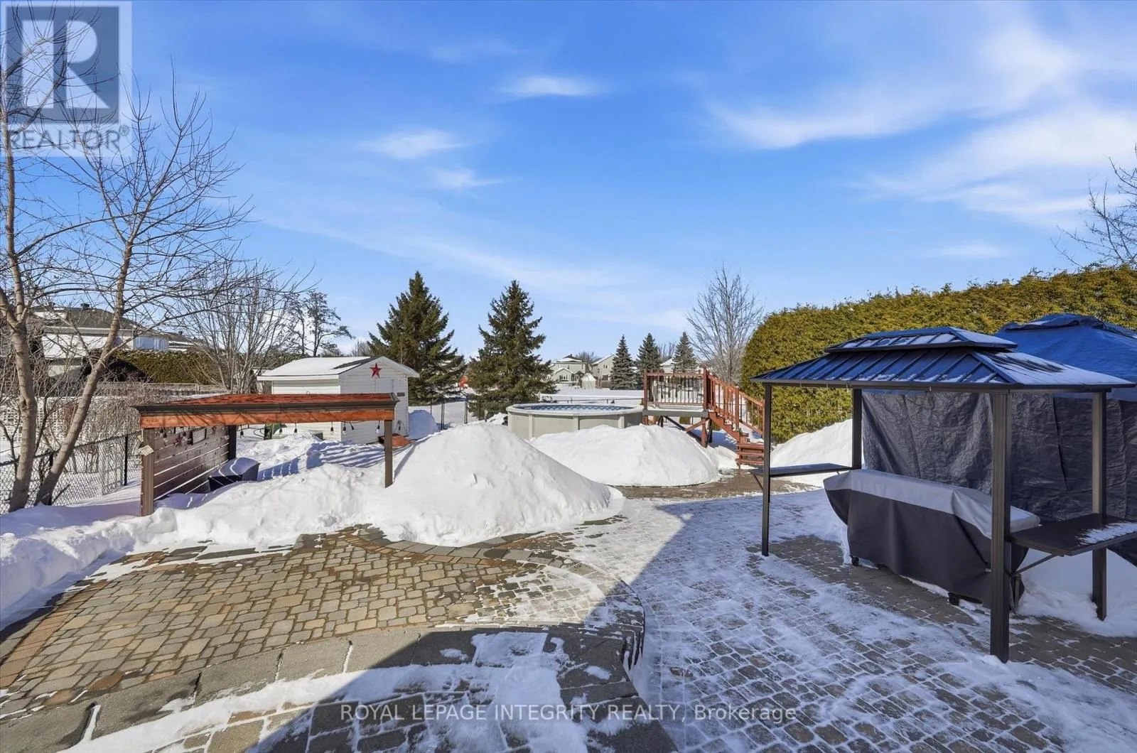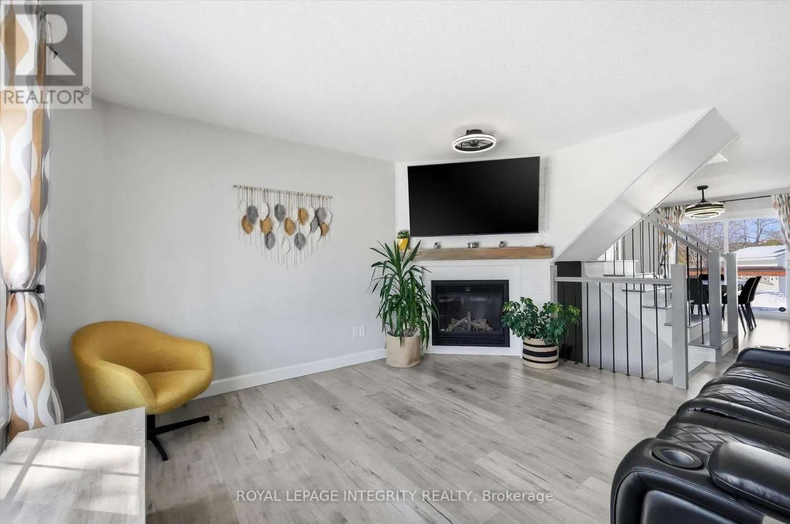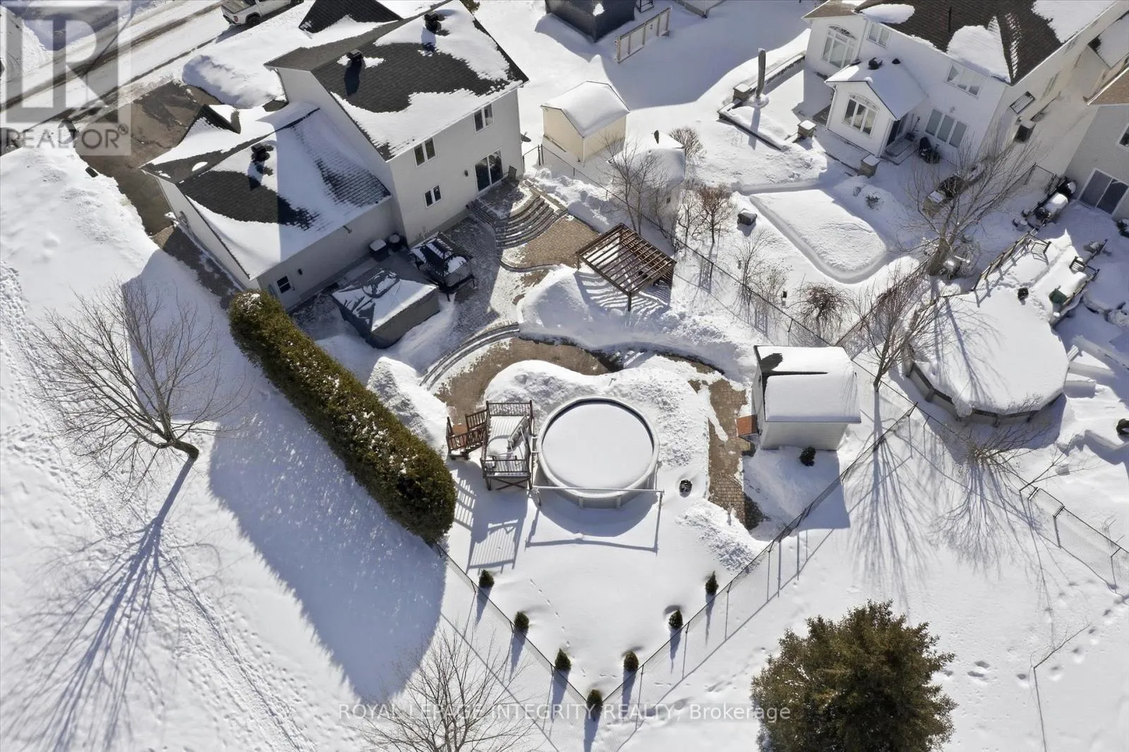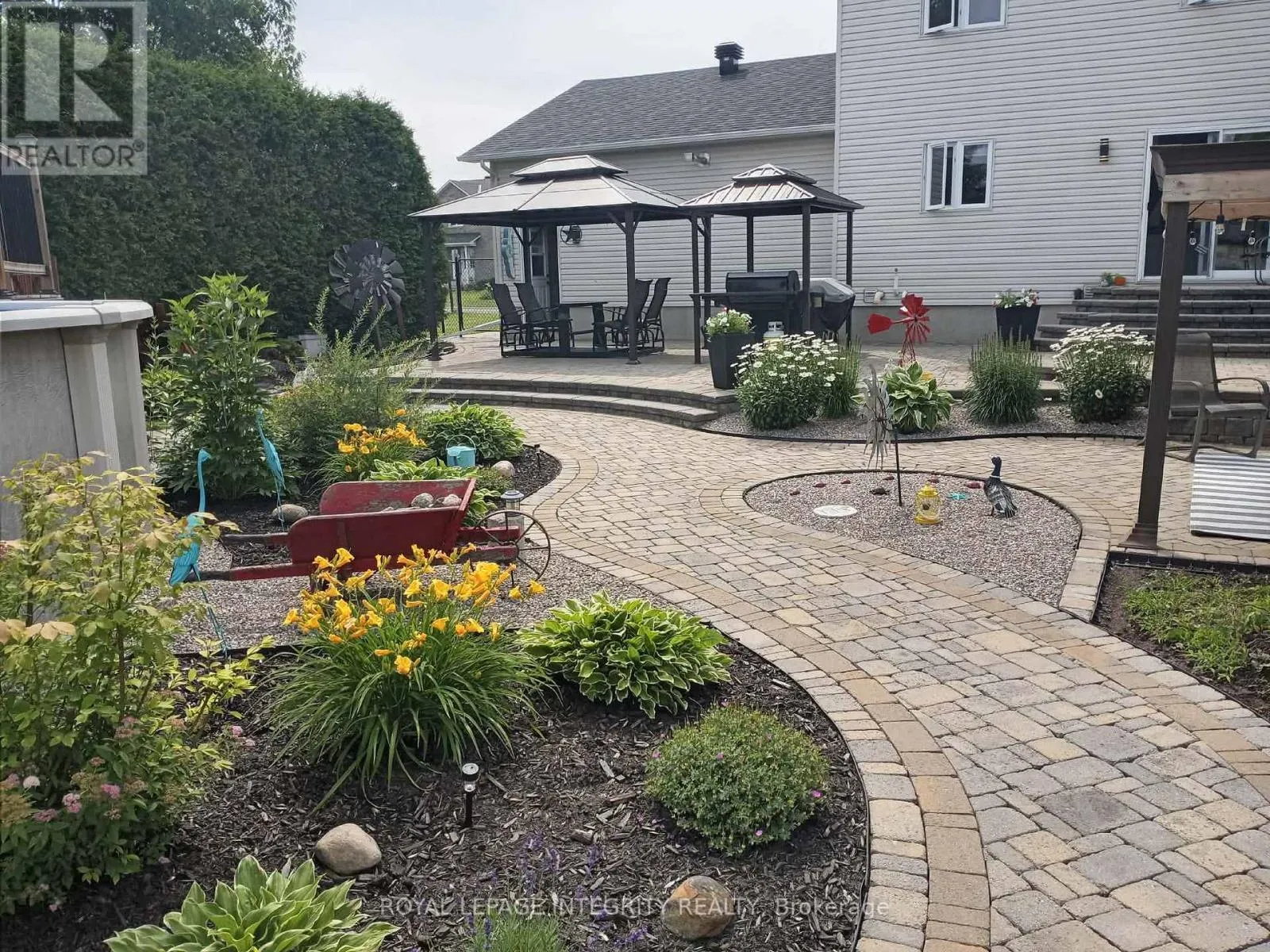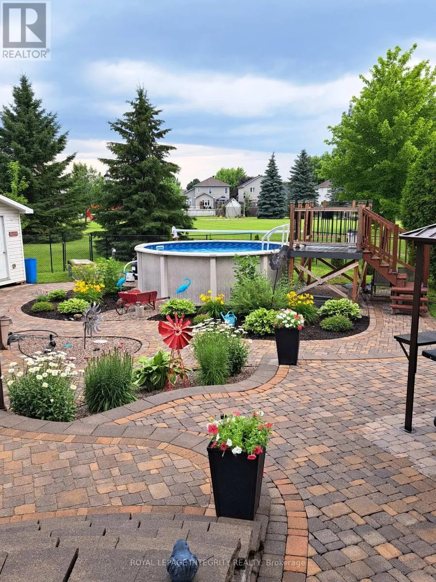 Cross Streets: Centenaire / La Citadelle. ** Directions: Notre-Dame to Centenaire, left on Frontenac. Property on the right. Sign on. Welcome to 36 Frontenac Blvd., in the heart of the friendly town of Embrun! This beautifully maintained and updated 3-bedroom, 2-bathroom home is ideally situated on a quiet street and set on a rare oversized 58' x 125' lot backing directly onto Mélanie Park and greenspace - offering privacy and a true backyard oasis. A large driveway accommodates up to four vehicles and leads to a welcoming foyer with inside entry to the heated double garage. The bright, open-concept main floor will wow you immediately, and is designed for comfortable everyday living as well as effortless entertaining. The sun-filled living room features a stunning fireplace with shiplap accent and wood mantle, flowing seamlessly into the kitchen complete with white cabinetry, new countertops, stainless steel appliances, and ample cabinet and prep space. A dedicated dining area with patio doors opens to the fully fenced, extensively landscaped backyard - highlighted by a pergola with lighting, BBQ space, shed with new roof and hydro, manicured hedge, and a 15' above-ground pool - all with the added luxury of no direct rear neighbours. A convenient partial bathroom completes the main floor and is large enough to accommodate a future shower. Upstairs, newly updated stairs and railings lead to the primary retreat featuring a large walk-in closet, along with a well-appointed 4-piece bathroom with separate soaker tub and shower, and two additional well-proportioned bedrooms. The finished lower level adds valuable living space with a generous recreation room featuring a bright window, plus a large storage area with dedicated laundry. A perfect blend of comfort, functionality, and outdoor living in a family-friendly location - this is one you won't want to miss. Simply move-in and enjoy! (id:27476)