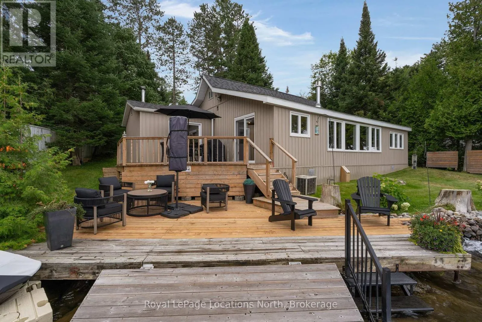 Hwy 11 to Oke Dr, to South Service Rd, to South Horn Lake Rd, to 1433, SOP Can Your Imagine Yourself Enjoying this view !! Lakefront Paradise on Stunning Horn Lake! Discover your year-round retreat on the pristine shores of Horn Lake , one of the area's most sought-after destinations for recreation and relaxation. This beautifully updated 1,500+ sq. ft. home offers breathtaking lake views from the living room, deck, and private dock, creating the perfect blend of comfort and natural beauty. Step inside to enjoy rustic elegance, featuring solid pine accents and a cozy wood-burning fireplace. Recent updates ensure peace of mind, including a new propane furnace (2022), energy-efficient windows & patio door (2021), a resurfaced deck (2024), and a freshly shingled roof (2019). For added space and versatility, a detached 24' x 24' garage/shop includes a finished upper level, ideal for guests, a studio, or extra living quarters. Your private dock offers deep water access, perfect for swimming, boating, and soaking in the crystal-clear beauty of Horn Lake. This lakefront haven is ready for you to enjoy. Don't miss your chance to own a piece of paradise ,, schedule your private viewing today! (id:27476)