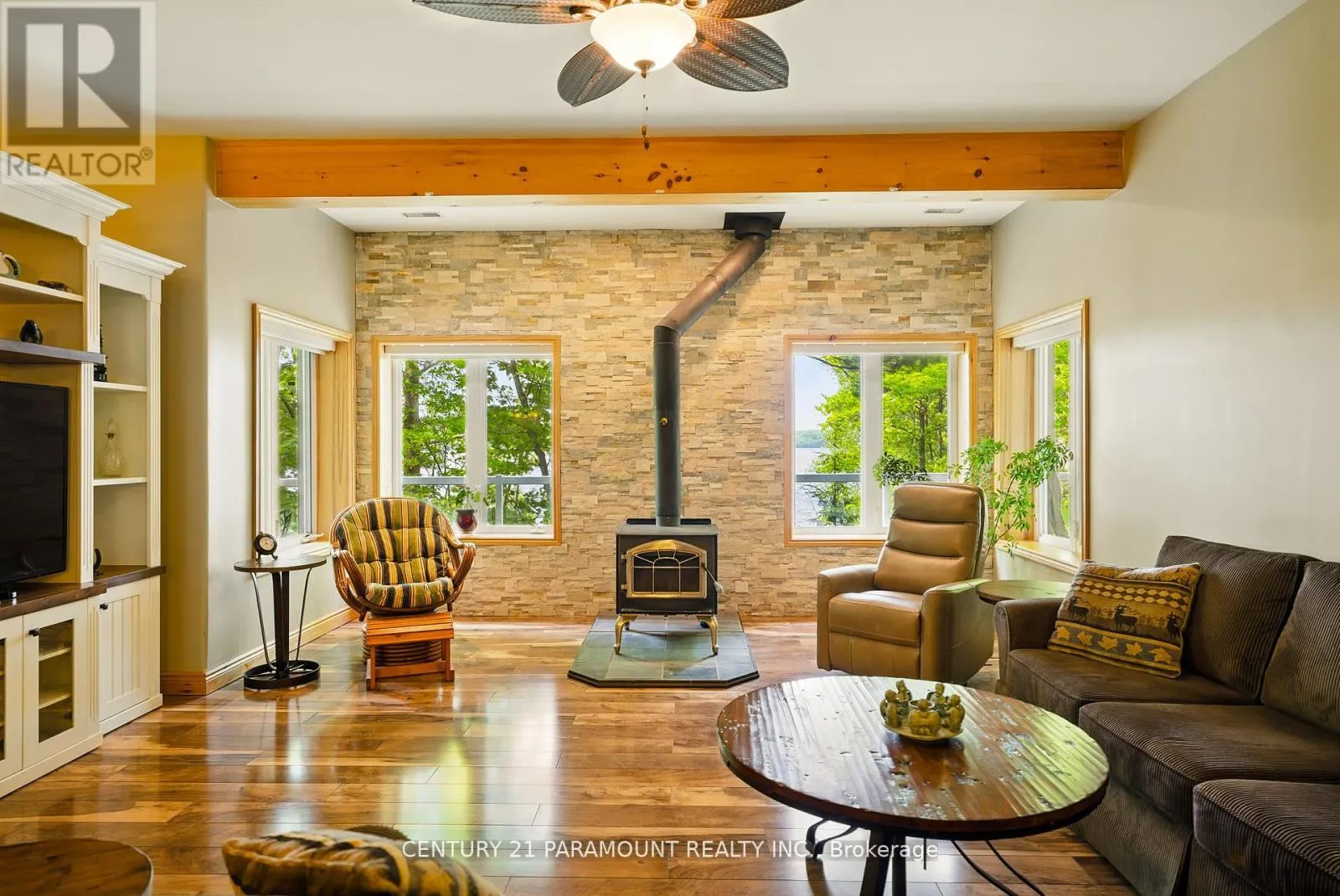 Cross Streets: Highway 520 and Lakeview Drive West. ** Directions: Hwy 520 to Lakeview Drive West, Right on Jeffrey Road, Right at Jeffrey Road Split. Built in 2008, this energy-efficient ICF block bungalow with walk-out basement offers year-round comfort. Situated at the end of a dead-end road provides privacy on this irregular 1-acre lot. Lake front property with the desirable southwest exposure of Lake Cecebe, a lake that offers 40 miles of boating joining Lake Cecebe with the Magnetawan River, Midlothian Lake and Ahmic Lake. Perfectly placed in between Burk's Falls and Magnetawan and just 30 minutes from Huntsville. The main floor of the home features hardwood/tile floors, a custom chef's kitchen by Cutter's Edge of Muskoka made of solid hickory including extra touches such as two sinks and Corian countertops. Open concept from kitchen, dining and living room provides the perfect space for entertaining your family and friends. The living room has vaulted ceilings and a grandeur granite stone gas fireplace. A deck off each side of the living room provides extra living space for outdoor dining and relaxation. Main floor primary bedroom has a walk-in closet, ensuite with double sinks, walk-in shower and heated tile floor. A pantry provides extra storage and a place for a freezer. The laundry room on the main floor shares a mud room coming in from the 2-car 30' x 30' garage with work bench. An added touch is the 2-piece washroom with a work sink in the garage. To complete this level is a second bedroom facing the lake. The lower level has 2 spacious bedrooms with closets, 3-piece washroom with heated tile floor. The family room has a Napolean wood burning stove, entertainment centre and a shuffleboard table. There is a wood room on this level for easy access to the wood or it can be easily converted to another bedroom. To continue with convenience, there is a kitchenette on this level equipped with a refrigerator, microwave, cupboards and sink for easy cleanup. Relax in an indoor hot tub that has a sliding door to the outdoors or convert to an office, bedroom or gym. Walk out to a deck which leads you to the lake. (id:27476)