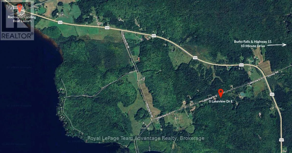 Cross Streets: Highway 520/Lakeview Drive E. ** Directions: Highway 11 N to exit 261; Merge onto Ontario St; right onto Ryerson Centre Rd/Highway 520 W, left on Lakeview Drive E. 1- acre vacant residential building lot in Ryerson Township, minutes from Burk's Falls, Highway 11 and Lake Cecebe. Offering approximately 200+ feet of road frontage, this treed property provides privacy while allowing flexibility for future development. Hydro is available across the road. Situated on year round municipally maintained road the lot offers reliable four-season access. Approximately 10 minutes to Burk's Falls and Highway 11 and about 5 minutes to the Lake Cecebe boat launch. An opportunity to build in the Almaguin Highlands with convenient access to local amenities and nearby recreational lakes. (id:27476)