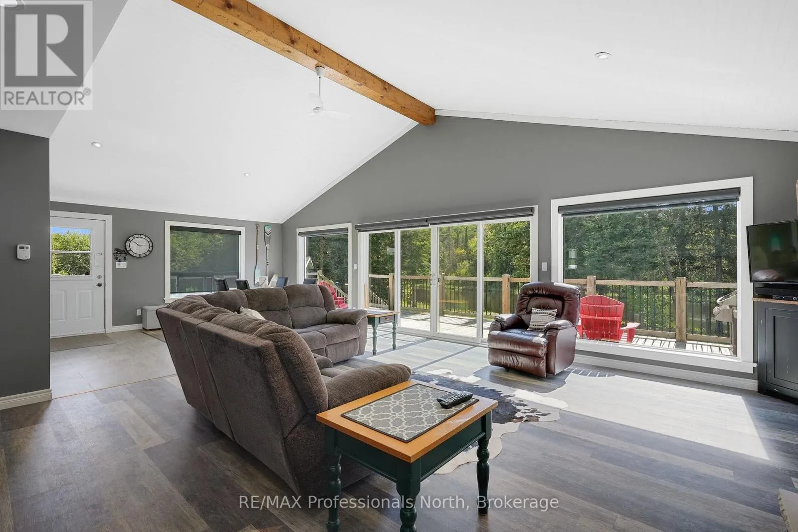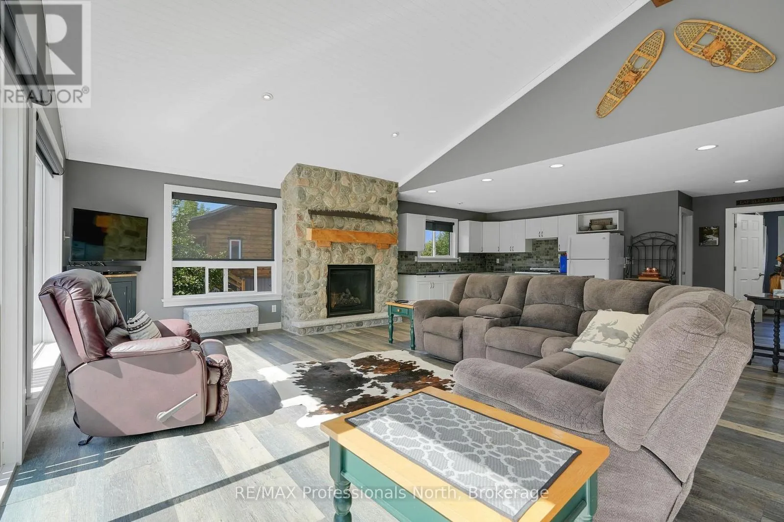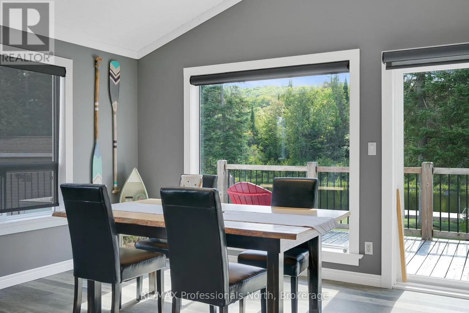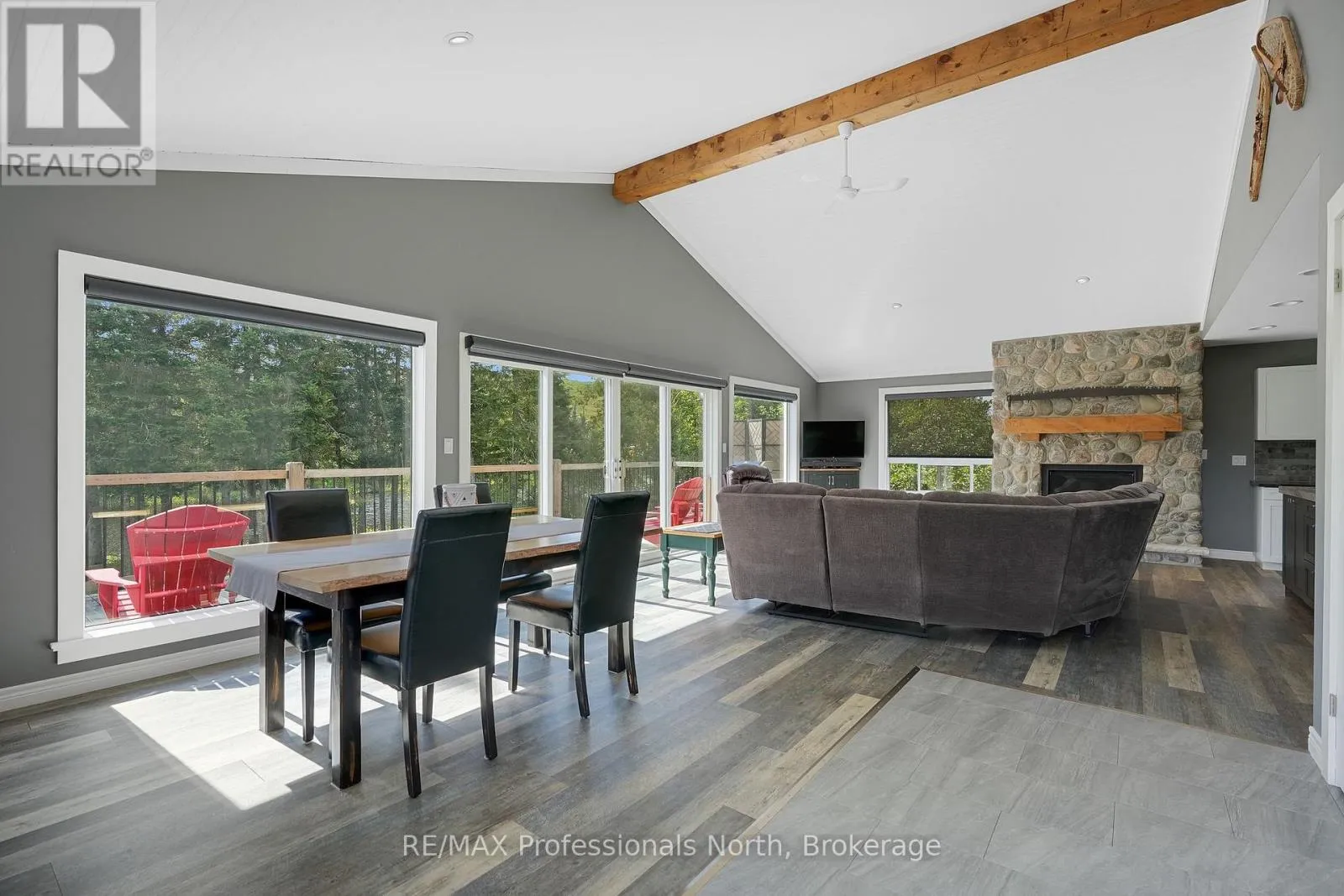 Cross Streets: Midlothian & Spring hill Rd. ** Directions: HWY 11 North, to Ontario street ramp Burks falls / Magnetawan, High street to hwy 520, to midlothian, left on springhill rd, right on Spring Hill rd W , sop. Welcome to 939 Spring Hill Road in Burk's Falls, a peaceful riverfront retreat just 10 minutes to Burk's Falls and 30 minutes to Huntsville. Set along the beautiful Magnetawan River, this turnkey, low-maintenance 1,200 sq ft cottage or home offers the perfect blend of privacy, nature, and year-round enjoyment. Enjoy over 40 miles of boating through a scenic chain of waterways, including Goose Lake, Lake Cecebe, and into Magnetawan where you can dock for restaurants and the LCBO, then continue on to sought-after Ahmic Lake. The property features deep water off the dock, ideal for swimming, along with endless opportunities for kayaking and paddleboarding right from your shoreline, plus the convenience of a private boat launch at the water's edge. Located on a private year-round road, it is well suited for both cottaging and full-time living. Built in 2011, this thoughtfully designed property delivers off-grid living without sacrificing comfort, featuring a fully automated solar system and propane backup generator for reliable, effortless operation. Inside, a stunning wall of windows frames picturesque river views, filling the space with natural light. A custom stone fireplace anchors the living area, creating warmth and ambiance. A propane forced air furnace, newly installed in 2026, adds efficiency and comfort. The home offers three bedrooms and one bathroom, ideal for families or guests. Outside, a detached garage provides excellent storage for boats, snowmobiles, and ATVs, or flexible space for a workshop or entertaining. A rare opportunity to enjoy four-season waterfront living. Be sure to review the detailed feature sheet, including inclusions, exclusions, and negotiable items to make this property truly turnkey. (id:27476)