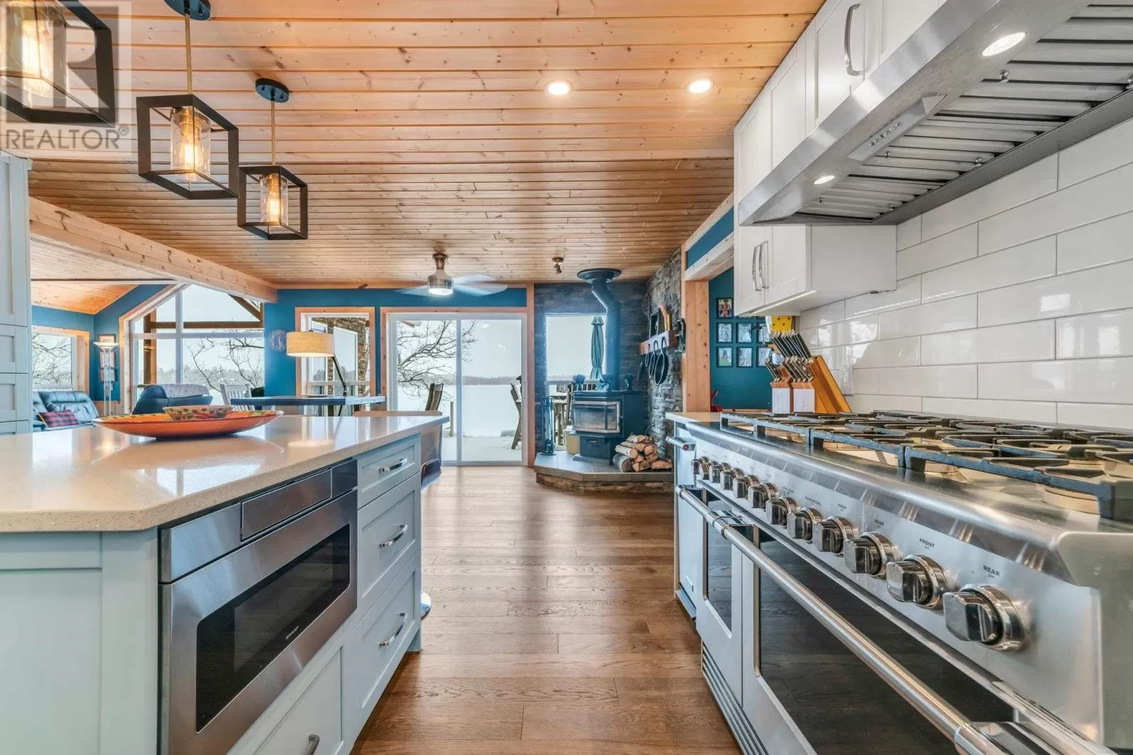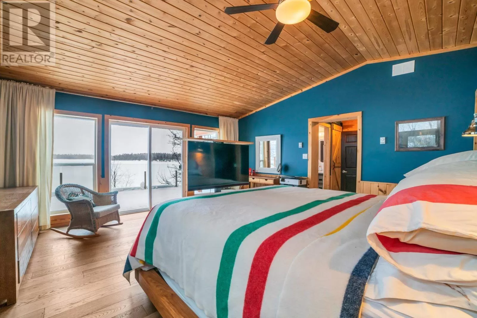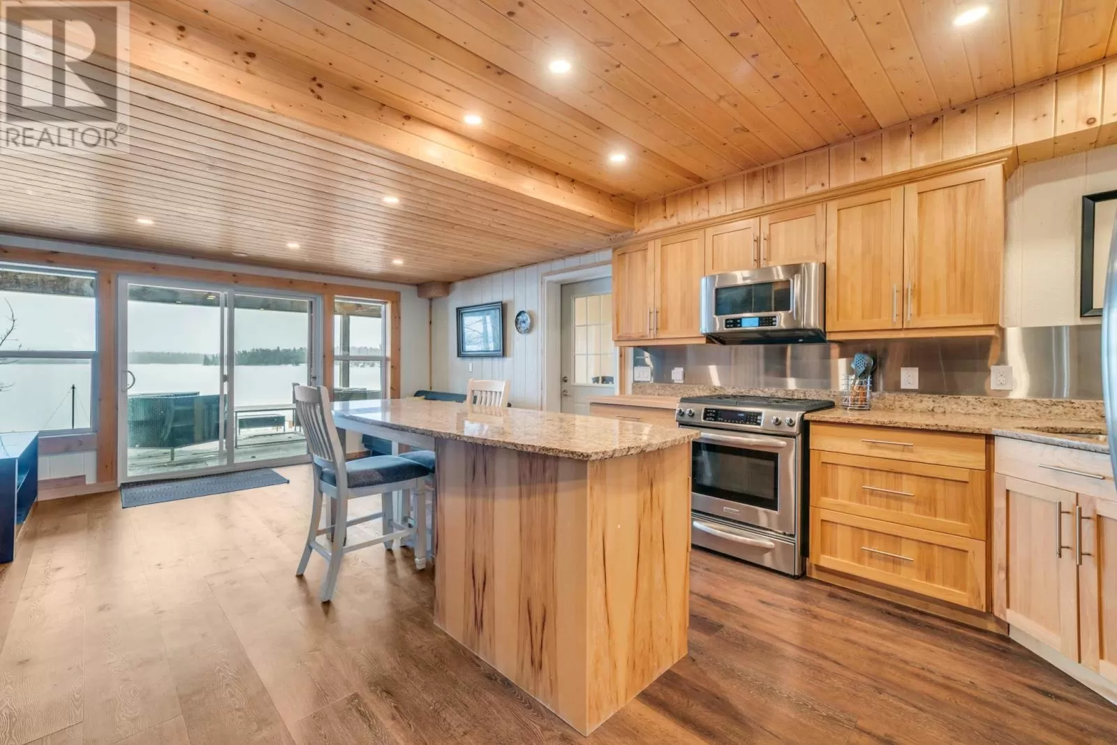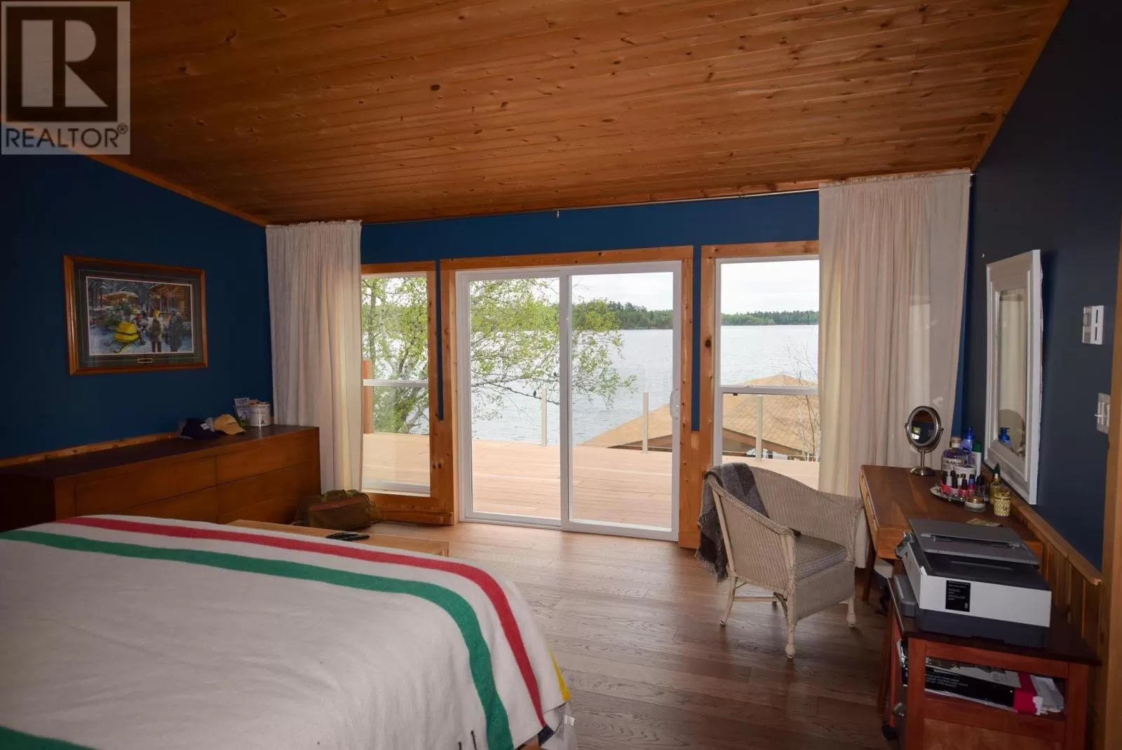 South on Mackenzie Portage road, through the settlement, just past the north Poplar road turn left onto lot 65 & 1. This property is on the left branch of the driveway. This stunning waterfront property on Poplar Bay, Lake of the Woods, offers 209 ft of prime water frontage and 3,300 sq ft of year-round living space. Featuring 7 bedrooms, 3 bathrooms, and a spacious living room with waterfront views and a wood-burning stove, this cottage is ideal for family gatherings. The newly renovated kitchen (2022) boasts floor-to-ceiling cabinetry, quartz countertops, and high-end appliances, including a Sub-Zero fridge and 8-burner gas range. The separate dining room leads to a front deck with glass railings, perfect for enjoying the view. The timber-frame sunroom is the heart of the home, with a wood-burning fireplace, in-floor heating, and large windows. The second-floor primary bedroom offers 2 en-suites, a walk-in closet with laundry, and deck access. Two additional bedrooms and a 2-piece ensuite complete the upper level. The lower level features its own kitchen, living room, 4 bedrooms (all with patio doors), and a 4-piece bathroom with custom tile. The 3-stall garage includes a workshop and 2-piece bathroom. Additional features include a backup generator, new windows, a wood shed, and a small beach area. Low height profile with deep water shoreline. Located on leased land (lease expires in 2067), with propane heat and annual fees of $2,750. Propane costs for 2024 are $4,762. This waterfront retreat is perfect for large families and entertaining. Heat: Propane in floor heat & wood stove Propane costs: $4762.00/2024 (heated year round) Assessment fee: $2750 for 2024 Chattels: Built in oven, range hood, microwave, freezer, fridge, Rental Items: Propane Tank Electrical: 200 Amp (id:27476)