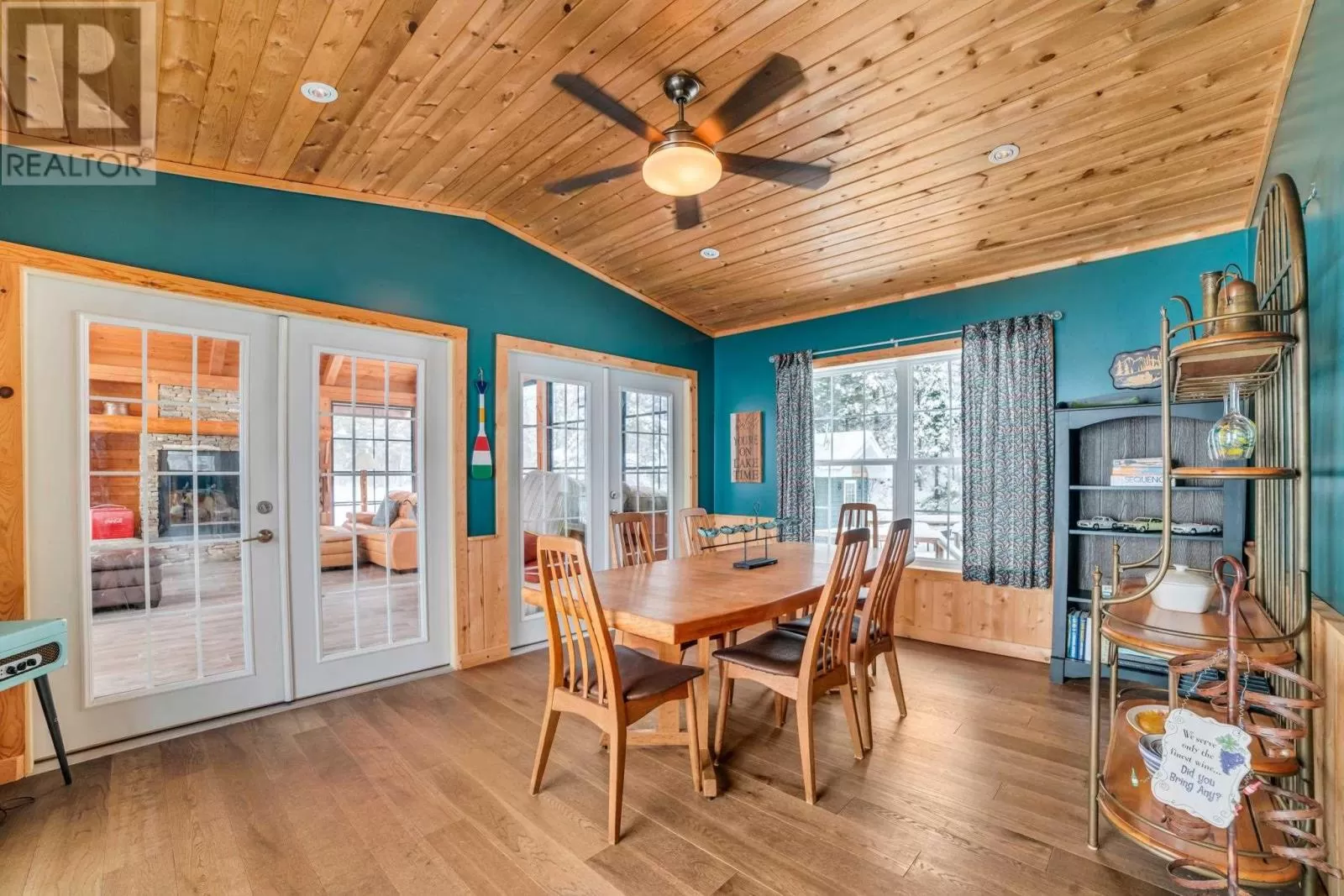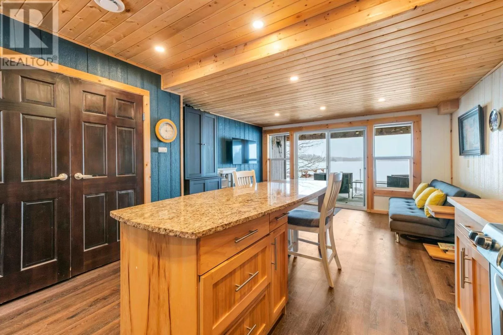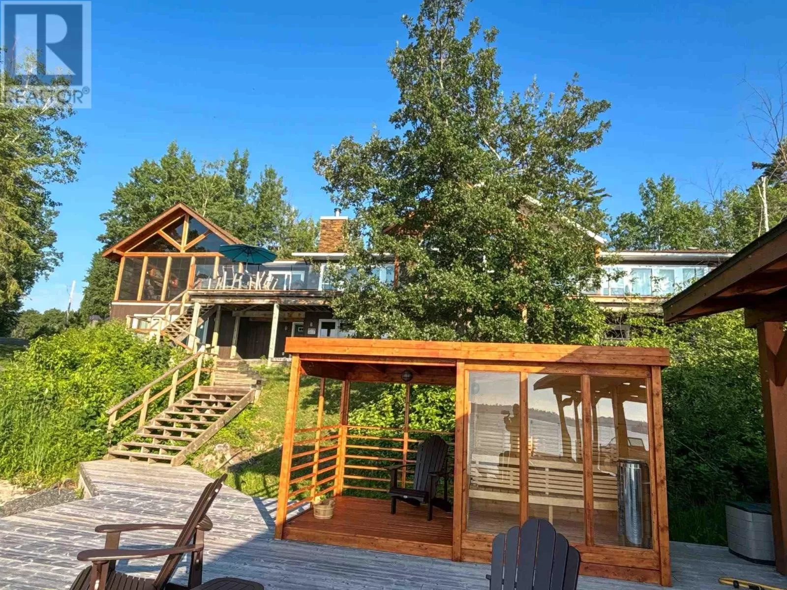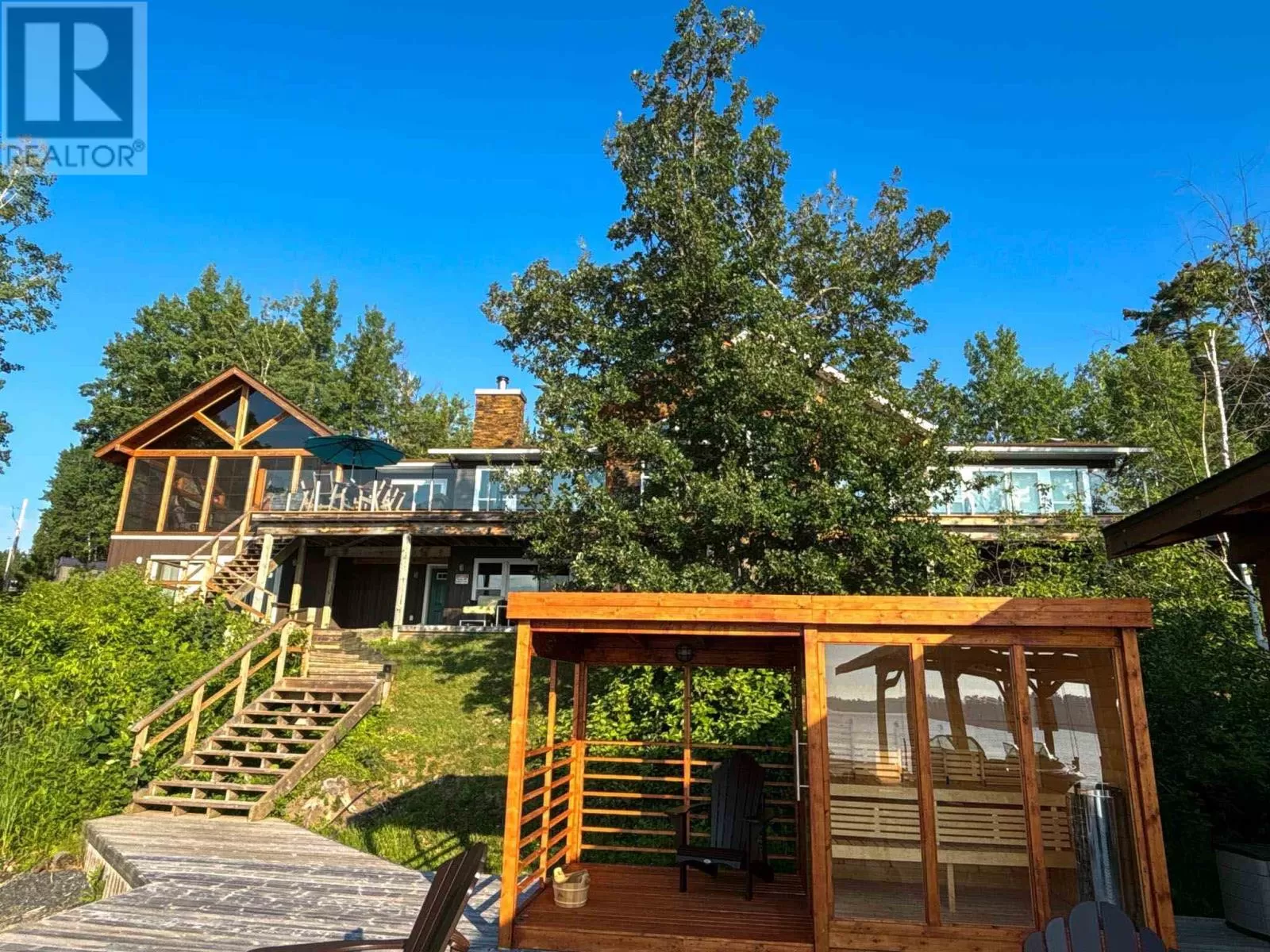 South on Mackenzie Portage road, through the settlement, just past the north Poplar road turn left onto lot 65 & 1. This property is on the left branch of the driveway. This stunning waterfront property on Poplar Bay, Lake of the Woods, offers 209 ft of prime water frontage and 3,300 sq ft of year-round living space. Featuring 7 bedrooms, 3 bathrooms, and a spacious living room with waterfront views and a wood-burning stove, this cottage is ideal for family gatherings. The newly renovated kitchen (2022) boasts floor-to-ceiling cabinetry, quartz countertops, and high-end appliances, including a Sub-Zero fridge and 8-burner gas range. The separate dining room leads to a front deck with glass railings, perfect for enjoying the view. The timber-frame sunroom is the heart of the home, with a wood-burning fireplace, in-floor heating, and large windows. The second-floor primary bedroom offers 2 en-suites, a walk-in closet with laundry, and deck access. Two additional bedrooms and a 2-piece ensuite complete the upper level. The lower level features its own kitchen, living room, 4 bedrooms (all with patio doors), and a 4-piece bathroom with custom tile. The 3-stall garage includes a workshop and 2-piece bathroom. Additional features include a backup generator, new windows, a wood shed, and a small beach area. Low height profile with deep water shoreline. Located on leased land (lease expires in 2067), with propane heat and annual fees of $2,750. Propane costs for 2024 are $4,762. This waterfront retreat is perfect for large families and entertaining. Heat: Propane in floor heat & wood stove Propane costs: $4762.00/2024 (heated year round) Assessment fee: $2750 for 2024 Chattels: Built in oven, range hood, microwave, freezer, fridge, Rental Items: Propane Tank Electrical: 200 Amp (id:27476)