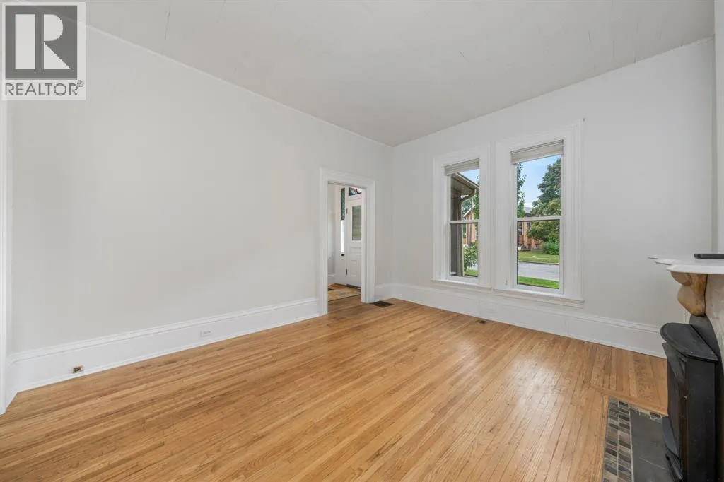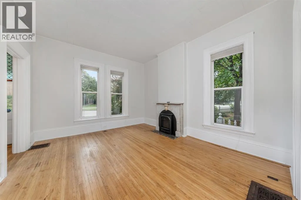 Welcome to 223 Brock Street â a charming bungalow located in central Sarnia. Step through the inviting front porch and inside youâll discover a cozy living room with a warm fireplace that flows into an oversized dining room, ideal for family gatherings. The main floor also offers a generous kitchen, 4-piece bathroom, and two comfortable bedrooms, as well as convenient main floor laundry. The basement provides plenty of space for storage. Outside, enjoy a great sized backyard with a patioâperfect for relaxing or entertaining. Complete with a detached one-car garage for added convenience. Brand New Furnace and heat pump installed with 10 year warranty 09/2025. This home combines comfort, practicality, and opportunity. Book your showing today! (id:27476)