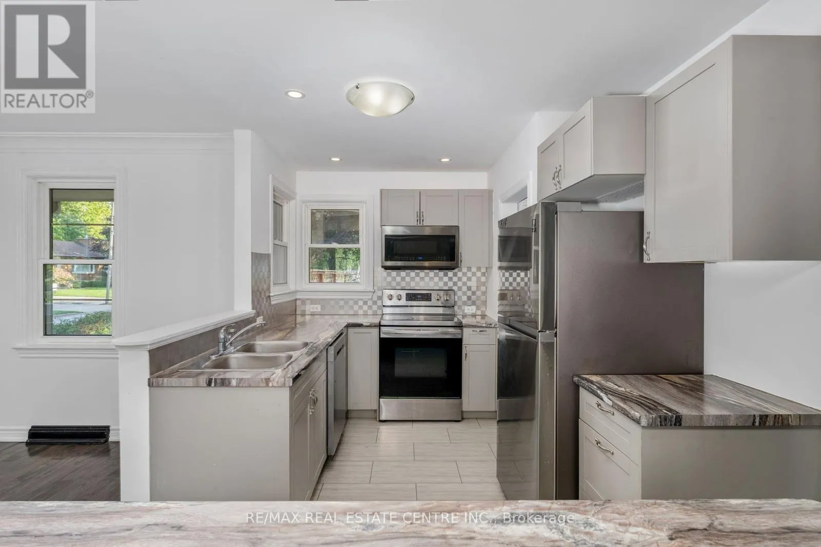 Hollywood PL / Newell St Welcome to this charming brick bungalow in the sought-after Oak Acres neighborhood of Sarnia! Set on a generous lot, this home offers a perfect mix of classic character and modern updates. Recent renovations include new shingles, flooring, and trim throughout, creating a fresh and move-in ready space. The main floor features a bright, flexible layout with an updated kitchen and quality finishes that elevate everyday living. Outside, the expansive lot provides plenty of room for gardening, recreation, or even future expansion. Nestled on a quiet residential street, the home offers quick access to parks, schools, shopping, and local amenities, making it an ideal choice for families, first-time buyers, or investors seeking lasting value. This property is a true gem combining comfort, convenience, and location. Dont miss your chance to make this beautifully updated bungalow your own! (id:27476)