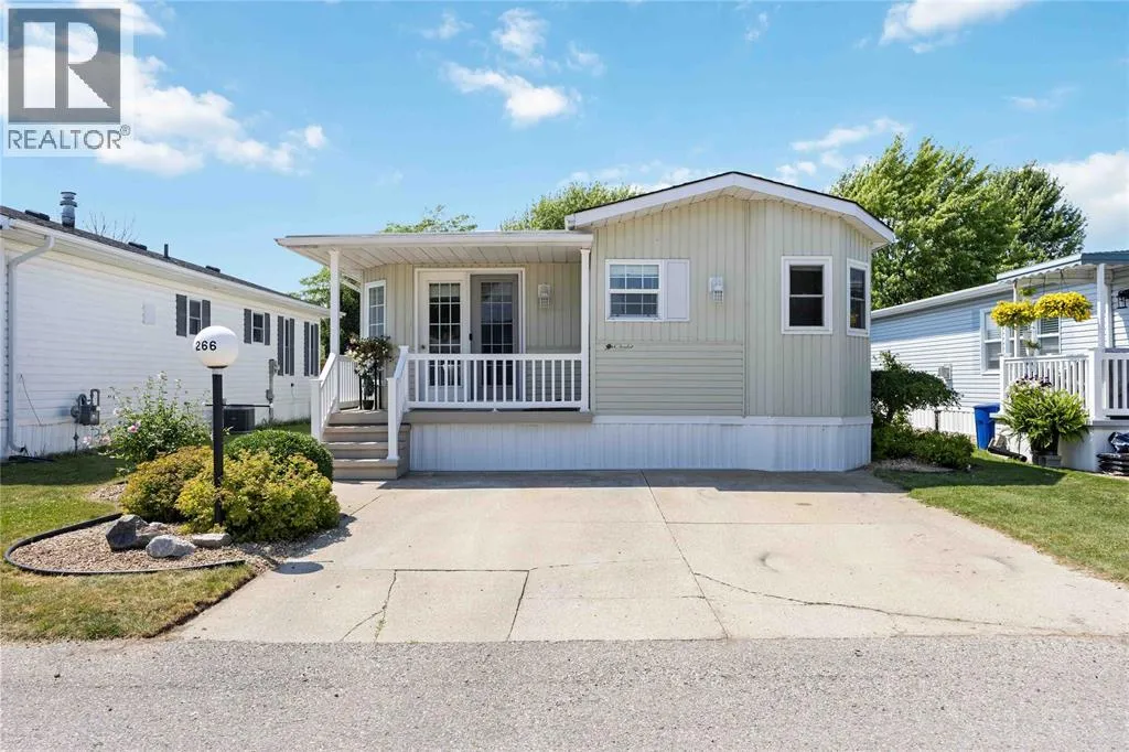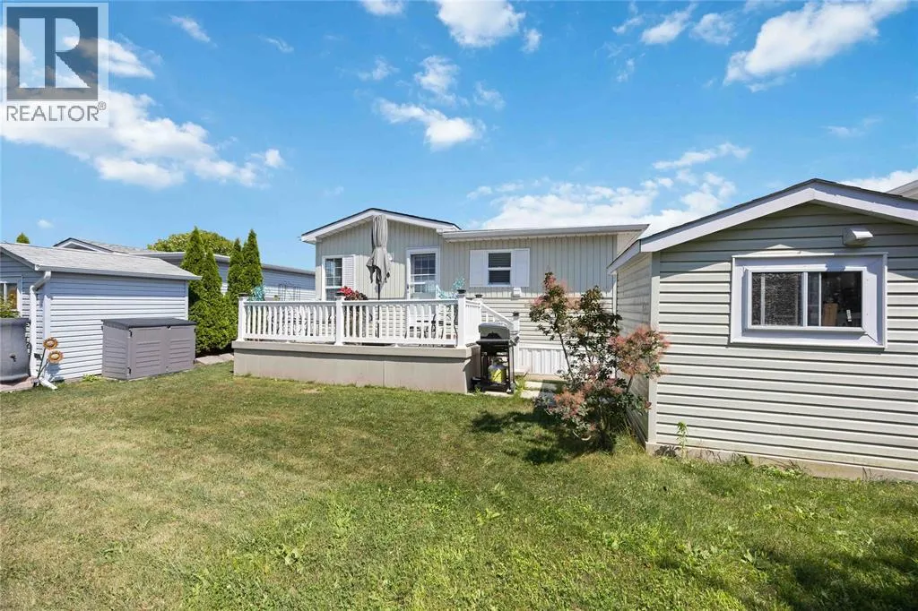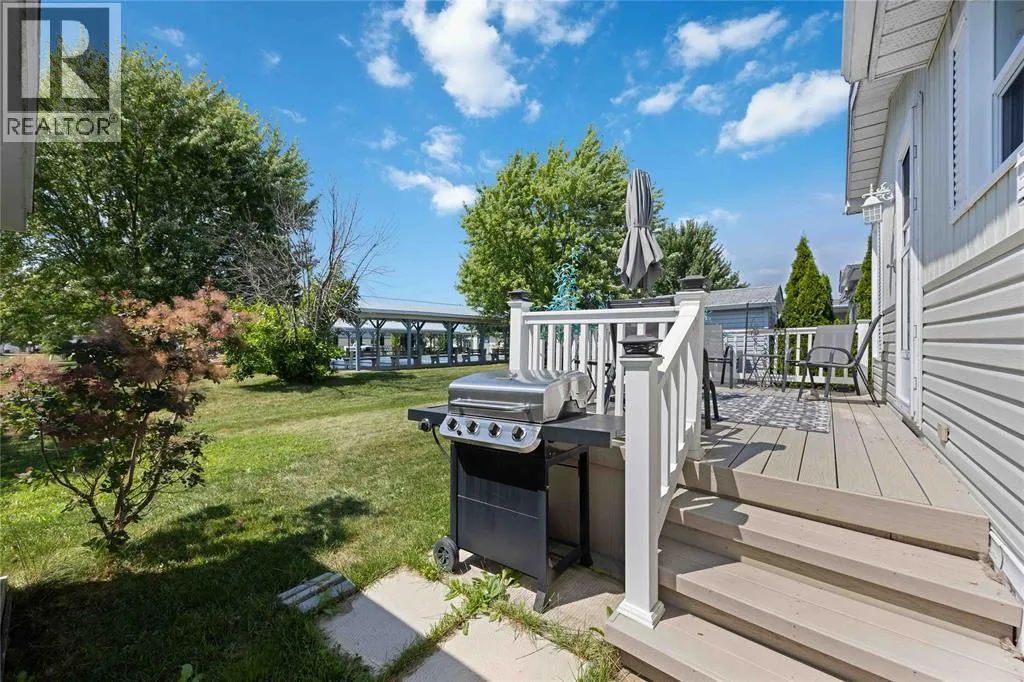 Head south on Blackwell Sd Rd from London Line. Turn east into park. Once inside the park, turn right, take the first left then turn left onto Centre St. Home is on the left. #266 This open concept, 2 bedroom 1.5 bath home is move-in ready and in a prime location! Close to the 12,000 sq ft club house featuring an indoor pool, gym, library, billiards room, and rec hall with kitchen. Steps from your back deck, you'll find bocce courts, horseshoe pits, shuffleboard, and newly refinished pickleball/tennis courts. This home offers newer laminate flooring throughout, an updated kitchen with newer countertops, and a new c/air unit installed in 2023. Plenty of space to entertain with open concept living room and dining room. Primary bedroom has ensuite and walk-in closet. Second bedroom walks out to a private deck with no homes behind you! A wonderful, turn-key, controlled entrance, adult-only community! A pleasure to show. Bluewater Country: the grown-ups-only paradise where living is as breezy as a beach day, with everything ready to go so you can kick back and enjoy life! (id:27476)