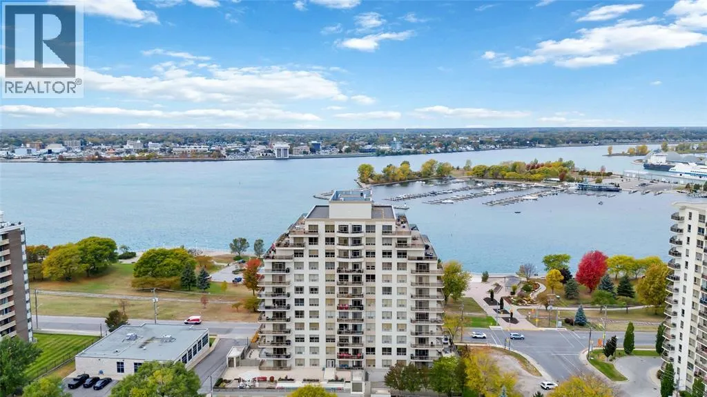 CORNER OF FRONT ST & LONDON RD. VISITOR PARKING SOUTH SIDE OR BEHIND. This stunning north-east corner unit condo offers 1,768 sq. ft. of bright, inviting living space with sweeping views of both the Sarnia Bay Marina and the city skyline, the perfect blend of waterfront tranquility and downtown convenience. The open-concept layout is ideal for entertaining, featuring a spacious living and dining area filled with natural light, and a kitchen with bright cabinetry. Step out to your wrap-around balcony and take in breathtaking sunrises year-round and beautiful evening sunsets, a view youâll never tire of. This two-bedroom, two-bathroom unit offers a thoughtful layout, modern comforts, and an unmistakable feeling of comfort. The well-managed Harbourfront building is known for its impeccable maintenance, cleanliness, and friendly community. The monthly condominium fee includes all utilities, ensuring effortless living. Residents enjoy access to numerous amenities including a guest suite for overnight visitors and a main-floor exercise room with river views. Your deeded parking space on P1 provides easy access to the elevators for maximum convenience. Enjoy the best of Sarniaâs waterfront lifestyleâright at your doorstep. Reach out today. Condo fee of 1019.10 includes Exterior Maintenance, Ground Maintenance, Heat, Hydro, Property Management, Recreational Facilities, & Water. (id:27476)