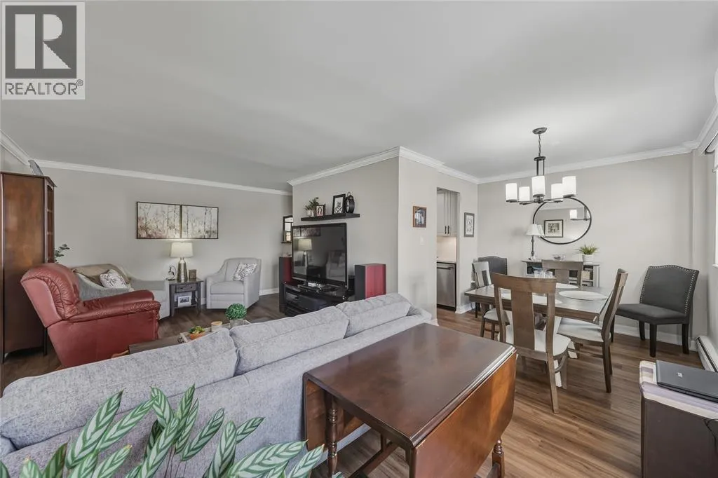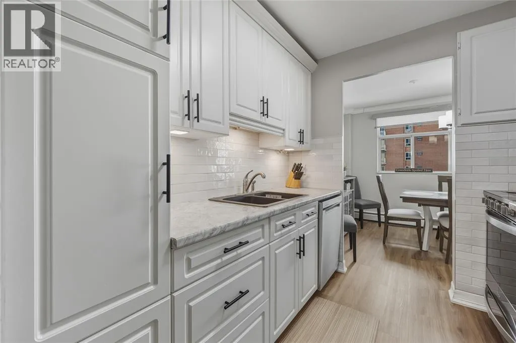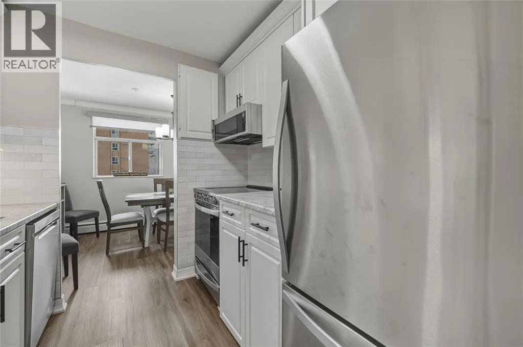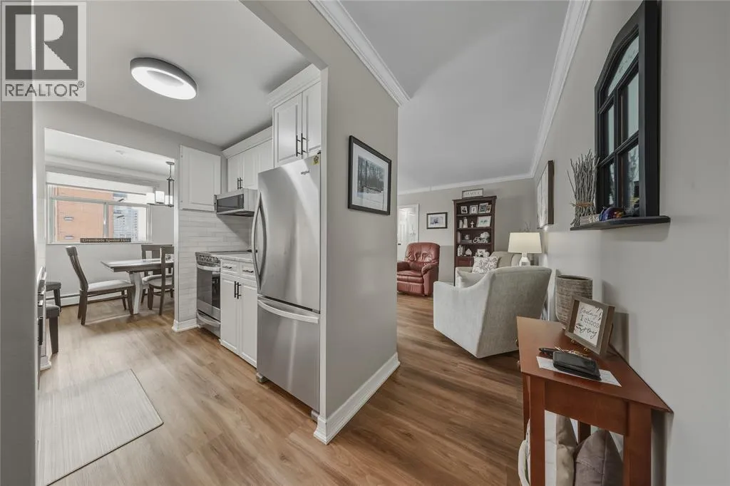 HEAD NORTH ON FRONT ST, TURN EAST ON DERBY LANE, BUILDING WILL BE ON THE LEFT. Welcome to effortless downtown living in this bright and beautifully updated 2-bedroom, 1-bathroom condo in Sarnia. Located on the 4th floor of a secure, well-maintained building, this unit offers stunning water views enjoyed right from your private balcony. Inside, youâll find a crisp white, updated kitchen including newer appliances and new flooring throughout installed by Fabbri Tile. The convenience continues with in-suite laundry and underground parking. This is truly low-maintenance living, with condo fees that include hydro, gas, and waterâowners are responsible for internet. Just steps from shops, restaurants, walking paths, public parks, and Sarniaâs charming downtown core, this condo offers the perfect blend of comfort, convenience, and location. (id:27476)