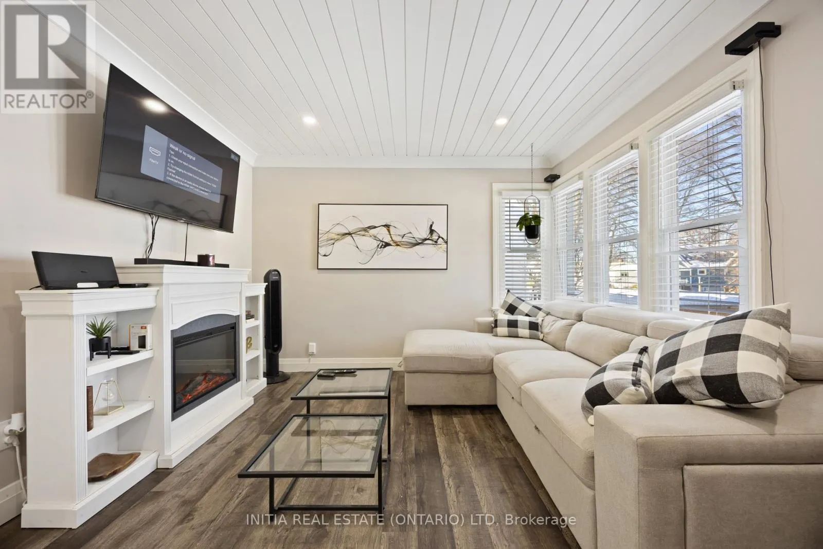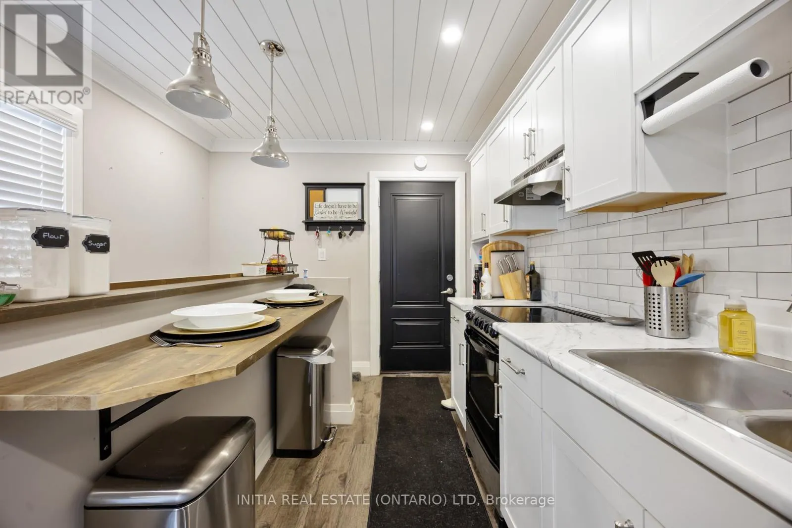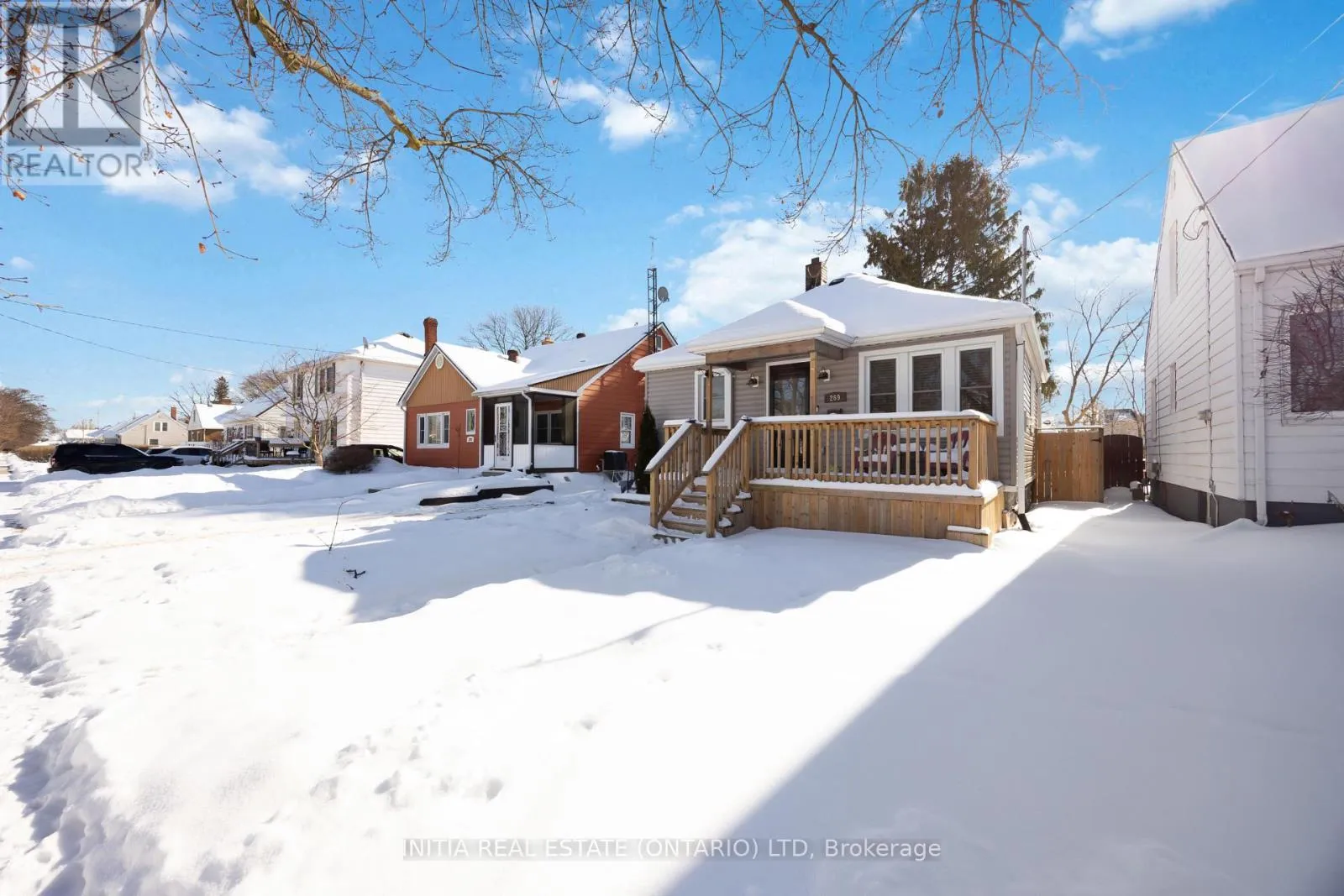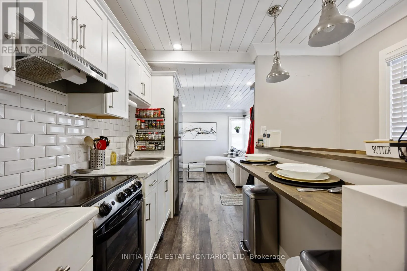 Cross Streets: Russell. ** Directions: LT 32 PL 98 SARNIA CITY; SARNIA. Fully renovated bungalow on a 172-ft deep lot, just steps from a K-8 school. Updated throughout with vinyl plank flooring, modern trim and doors, and shiplap ceilings with crown moulding. Bright kitchen with breakfast bar and access to a covered side porch. Main bath features a soaker tub with porcelain tile surround, and both bedrooms include custom closet organizers. New sun deck and sliding door overlook the refreshed yard with new fencing, French drain system with sump pump, re-grading and new sod, plus A/C relocation. Finished lower level adds a third bedroom, rec room, office/play area, and updated 3-pc bath. Detached 12x20 garage. Major updates include furnace, A/C, shingles, siding, eaves, windows, insulation, plumbing, entry doors, and full electrical rewire with new panel. Hot water tank rental. Move-in ready with all the big work done. (id:27476)