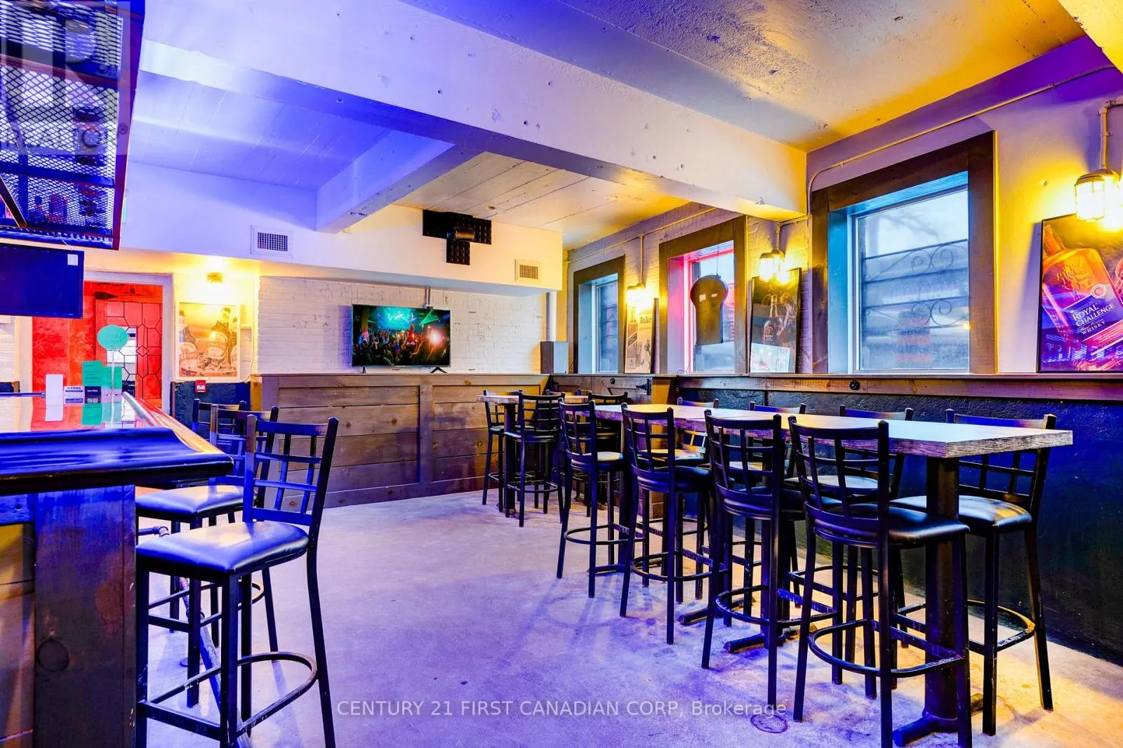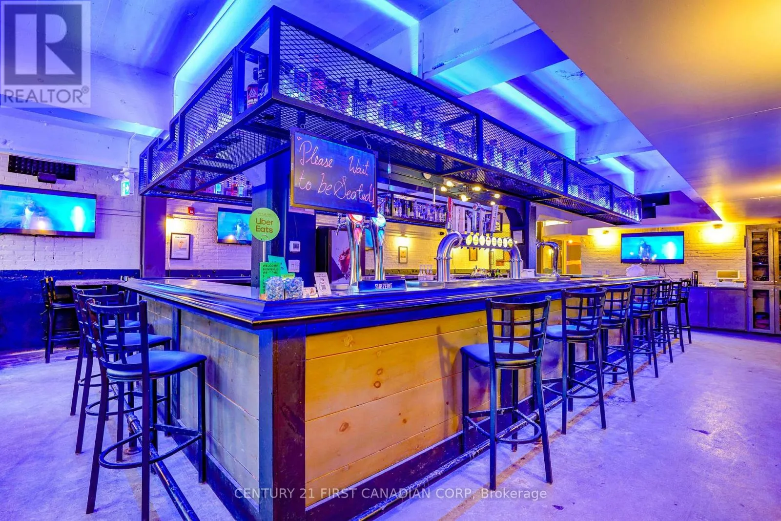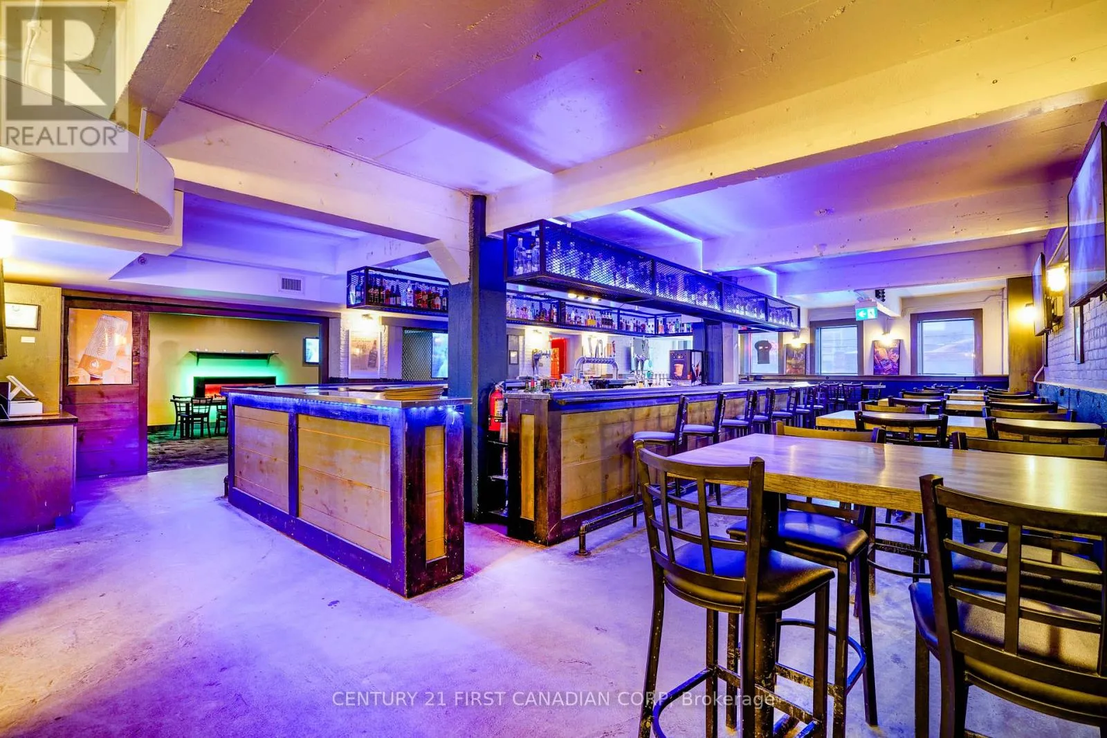 Cross Streets: Front St N. ** Directions: Take ON-402 W to Sarnia, take the exit toward Front St N/Christina St N. Follow signs for Front St and merge onto Front St S. Follow Front St S, turn left onto Davis St, turn left onto Christina St N. Restaurant is in the left side of street. Welcome to Malabari Bistro, the go-to gathering place in Sarnia. This is the kind of business buyers hunt for and rarely find: occupied daily, booked regularly for private events, and supported by proven revenue that reflects exactly what locals already know. Night after night, Malabari is where the community lands after work, where celebrations are hosted, and where even other restauranteurs show up when they're off shift, because the vibe (and the food) are that good. Set in a prime location with a lake view, this restaurant offers an atmosphere that works in every season. In warmer months, a roll-up patio door opens to serve a bustling crowd and brings the energy outside. When temperatures drop, multiple fireplaces create a warm, inviting setting that keeps guests lingering longer, ordering another round, and turning dinner into an evening. The operation is turnkey and fully equipped, with a strong menu, consistent demand, and a well-stocked bar built for volume. Currently running as dinner service with late hours, there's clear room to grow for the next owner through expanded hours, additional service periods, increased private bookings, and enhanced marketing. This is a rare opportunity to step into a fully functioning, community-loved establishment with momentum and upside. Sale includes chattels and equipment. Business name not included. (id:27476)