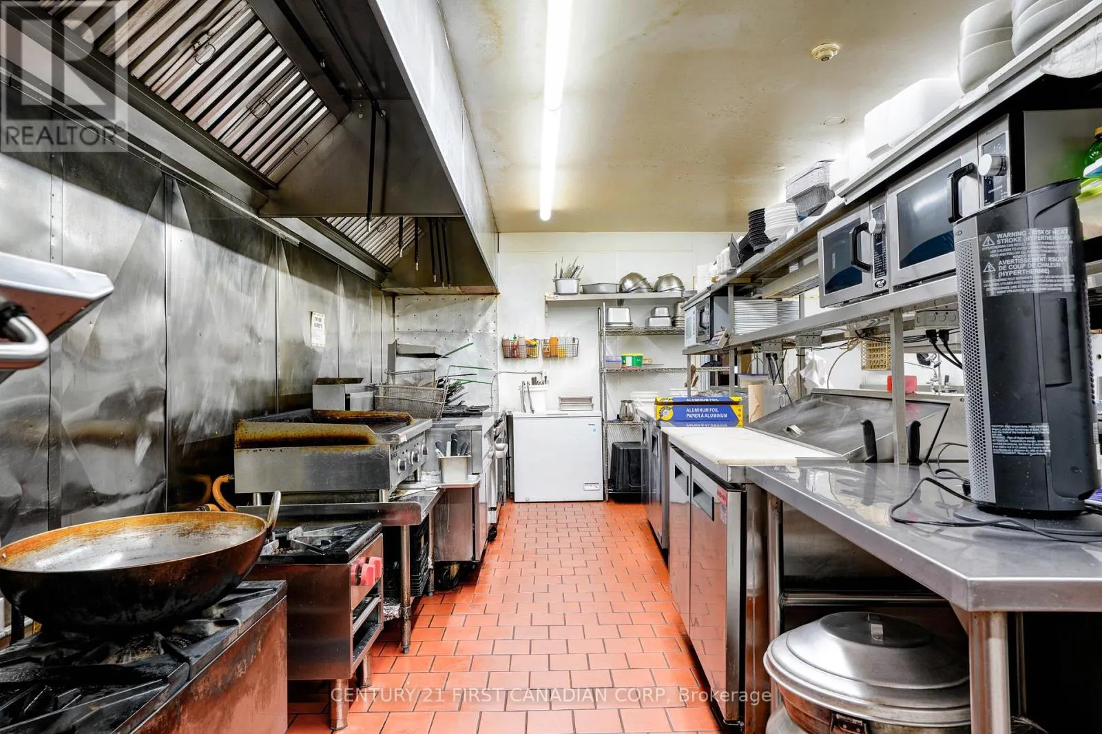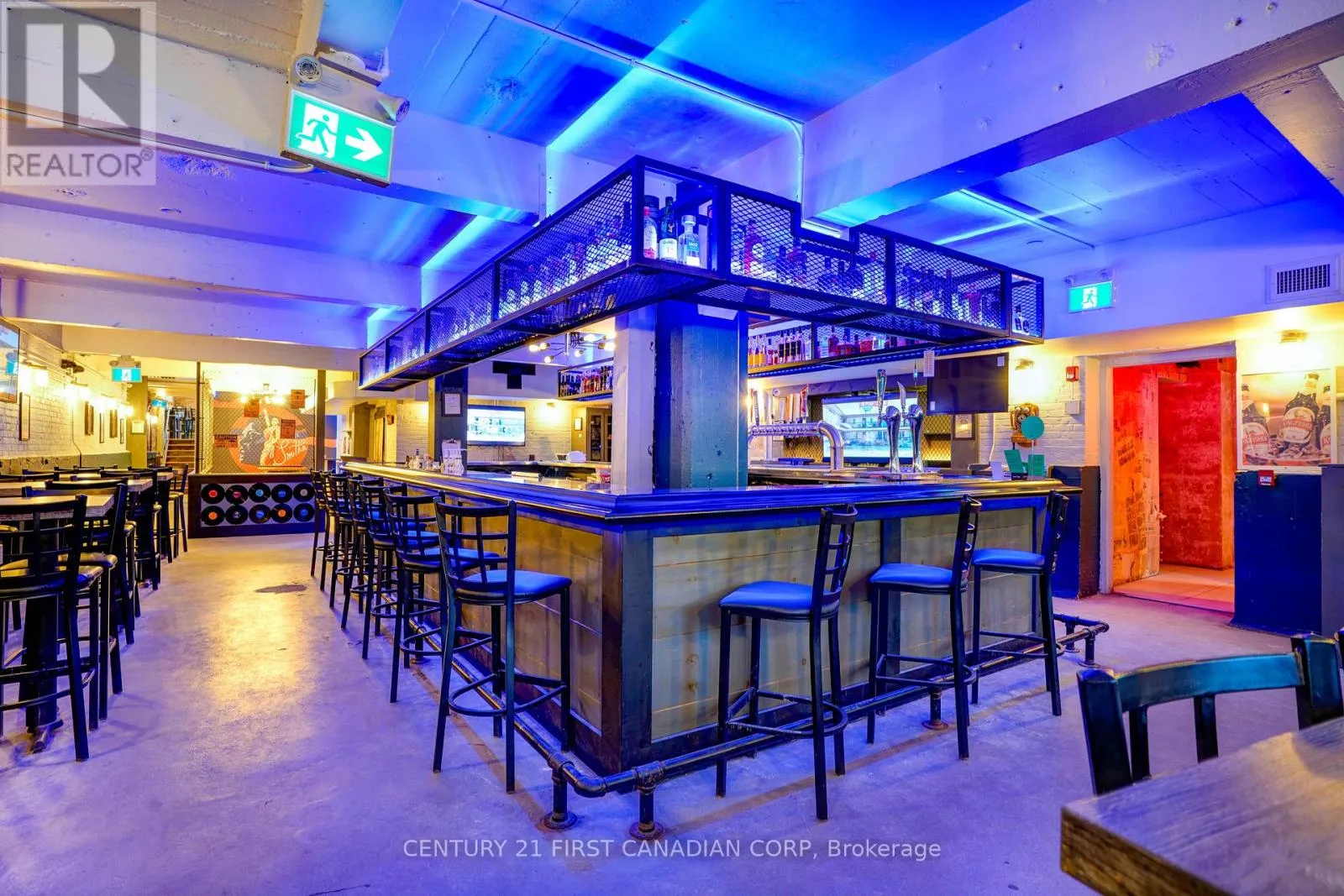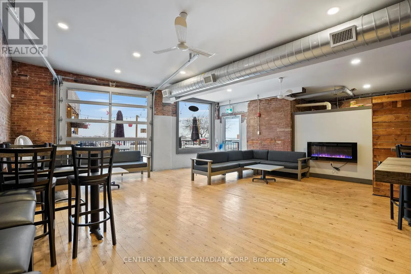 Cross Streets: Front St N. ** Directions: Take ON-402 W to Sarnia, take the exit toward Front St N/Christina St N. Follow signs for Front St and merge onto Front St S. Follow Front St S, turn left onto Davis St, turn left onto Christina St N. Restaurant is in the left side of street. Welcome to Malabari Bistro, the go-to gathering place in Sarnia. This is the kind of business buyers hunt for and rarely find: occupied daily, booked regularly for private events, and supported by proven revenue that reflects exactly what locals already know. Night after night, Malabari is where the community lands after work, where celebrations are hosted, and where even other restauranteurs show up when they're off shift, because the vibe (and the food) are that good. Set in a prime location with a lake view, this restaurant offers an atmosphere that works in every season. In warmer months, a roll-up patio door opens to serve a bustling crowd and brings the energy outside. When temperatures drop, multiple fireplaces create a warm, inviting setting that keeps guests lingering longer, ordering another round, and turning dinner into an evening. The operation is turnkey and fully equipped, with a strong menu, consistent demand, and a well-stocked bar built for volume. Currently running as dinner service with late hours, there's clear room to grow for the next owner through expanded hours, additional service periods, increased private bookings, and enhanced marketing. This is a rare opportunity to step into a fully functioning, community-loved establishment with momentum and upside. Sale includes chattels and equipment. Business name not included. (id:27476)