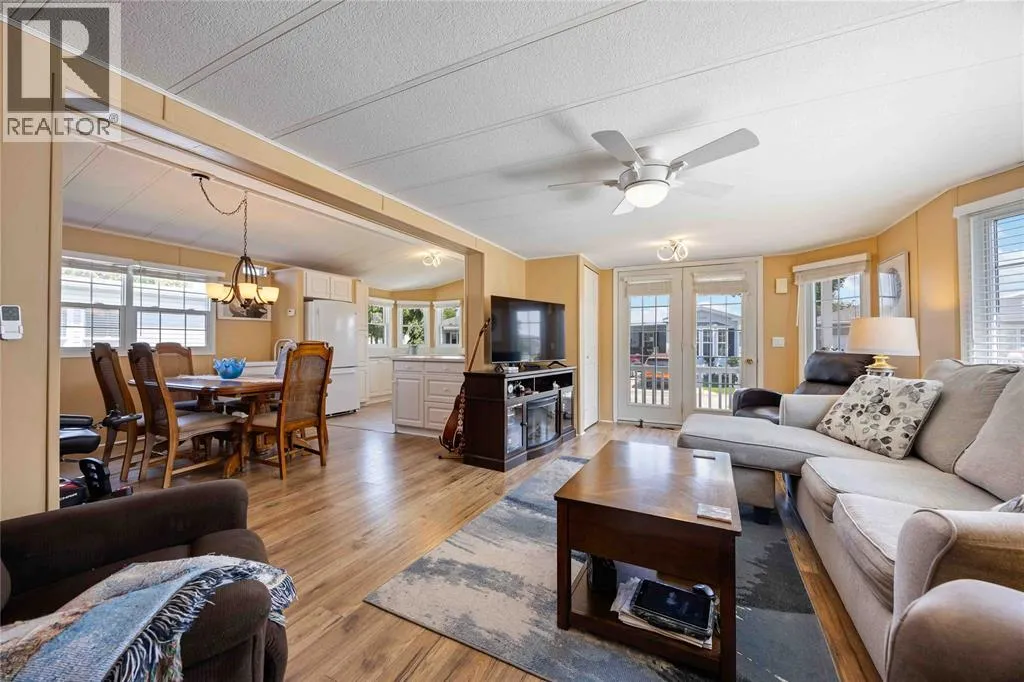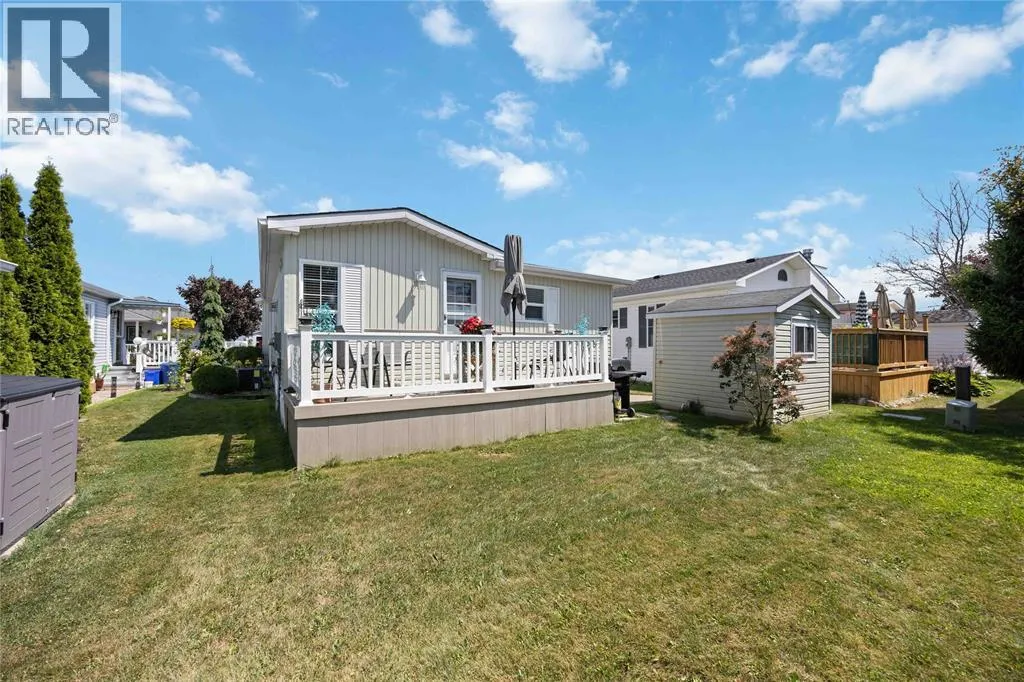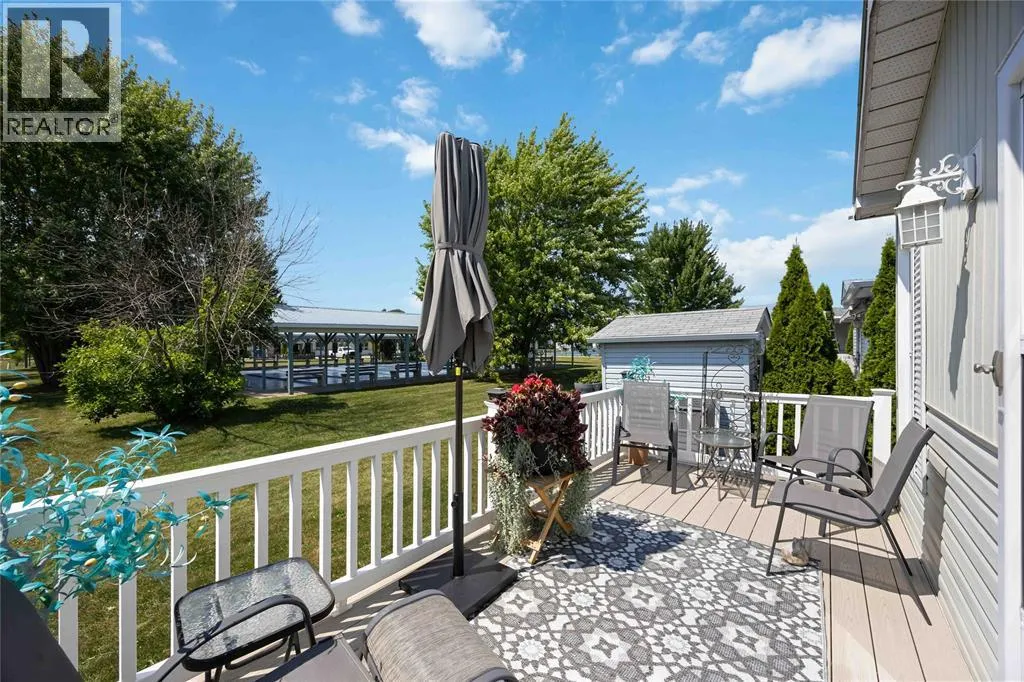 Head south on Blackwell Sd Rd from London Line. Turn east into park. Once inside the park, turn right, take the first left then turn left onto Centre St. Home is on the left. #266 This open concept, 2 bedroom 1.5 bath home is move-in ready and in a prime location! Close to the 12,000 sq ft club house featuring an indoor pool, gym, library, billiards room, and rec hall with kitchen. Steps from your back deck, you'll find bocce courts, horseshoe pits, shuffleboard, and newly refinished pickleball/tennis courts. This home offers newer laminate flooring throughout, an updated kitchen with newer countertops, and a new c/air unit installed in 2023. Plenty of space to entertain with open concept living room and dining room. Primary bedroom has ensuite and walk-in closet. Second bedroom walks out to a private deck with no homes behind you! A wonderful, turn-key, controlled entrance, adult-only community! A pleasure to show. Bluewater Country: the grown-ups-only paradise where living is as breezy as a beach day, with everything ready to go so you can kick back and enjoy life! (id:27476)