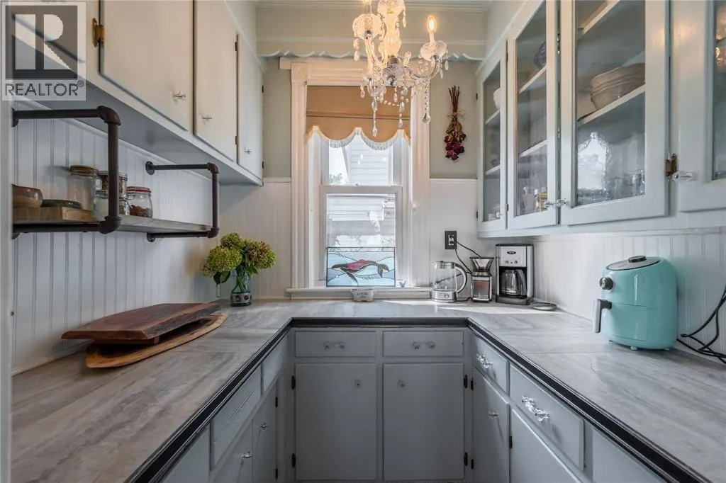 This beautiful Victorian-style century home brims with character and charm. Ideally situated close to downtown & the waterfront with 4 large bedrooms, freshly updated 4-piece bathroom, & a new 3-piece bathroom that retain the period's aesthetic. The home includes a delightful walk-in butler pantry, a second ""servers"" staircase from the kitchen to the second floor, spacious living room with elegant built-in bookshelves, & a newly installed gas fireplace. Significant upgrades include new garage door, HVAC, roof, siding, porch, patio, and pergola. The home boasts new vinyl windows & stainless-steel appliances. Perfect for a growing family or Victorian enthusiast, this roomy home offers potential for investors considering conversion to a bed & breakfast, duplex, or triplex. The property is beautifully landscaped with well-maintained gardens, paved driveway, garage with a new sectional door, & a fully fenced yard. Experience turn-of-the-century history & Victorian charm in this unique home. (id:27476)