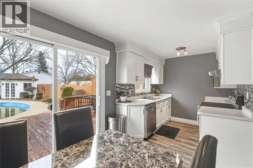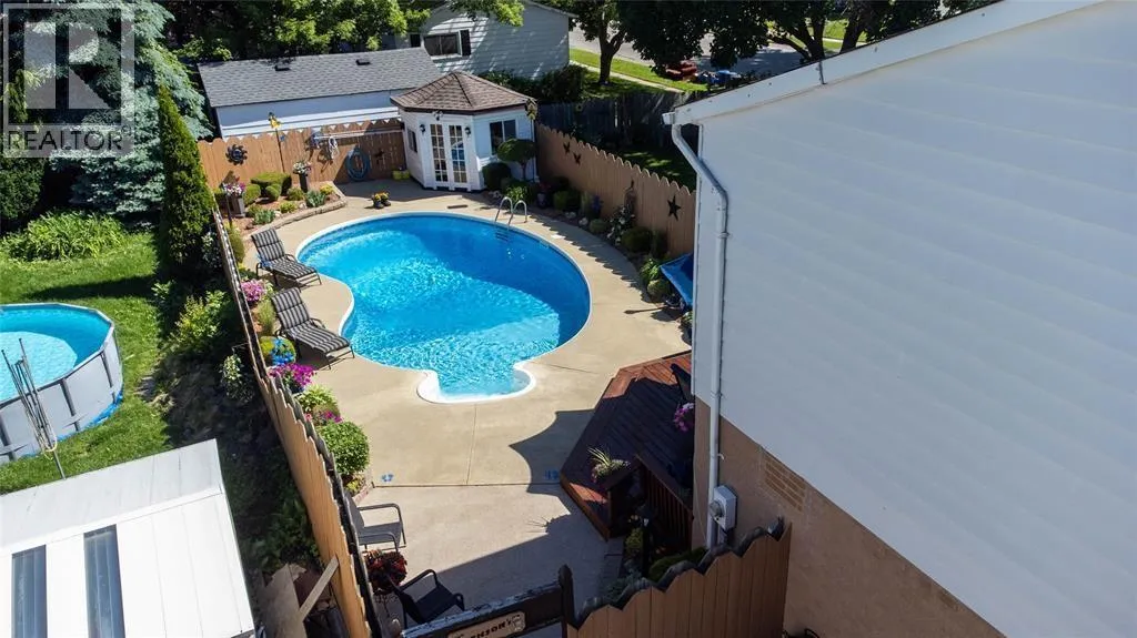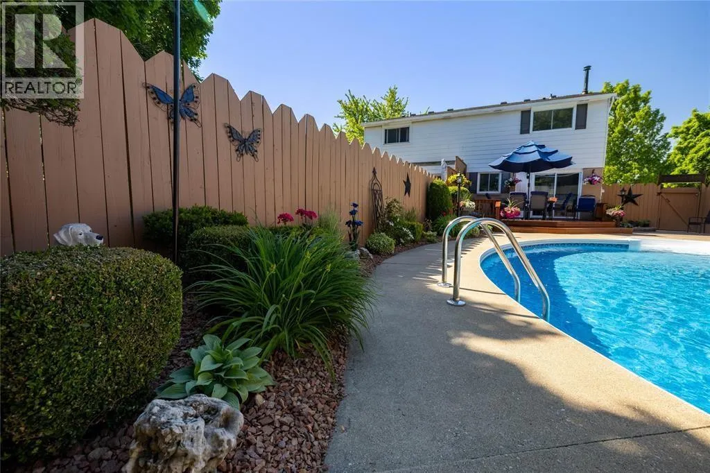 Backyard oasis alert! This updated 3-bedroom home features an in-ground pool, pool shed with hydro, landscaped yard & large deck - perfect for enjoying your home all summer long! Beautifully maintained with a spacious living room & eat-in kitchen with patio doors to the backyard, making the inside just as enjoyable. Upstairs offers 3 bedrooms & a renovated 4pc bath and a finished lower level with rec room & storage. Major updates: new paint throughout, newer roof, new appliances, new eaves/soffits/fascia ('25), flooring & baseboards (â24), bathroom (â24), furnace (â21), pool liner (â19), patio door (â18). It's move-in ready AND ""pool-party ready!"" (id:27476)