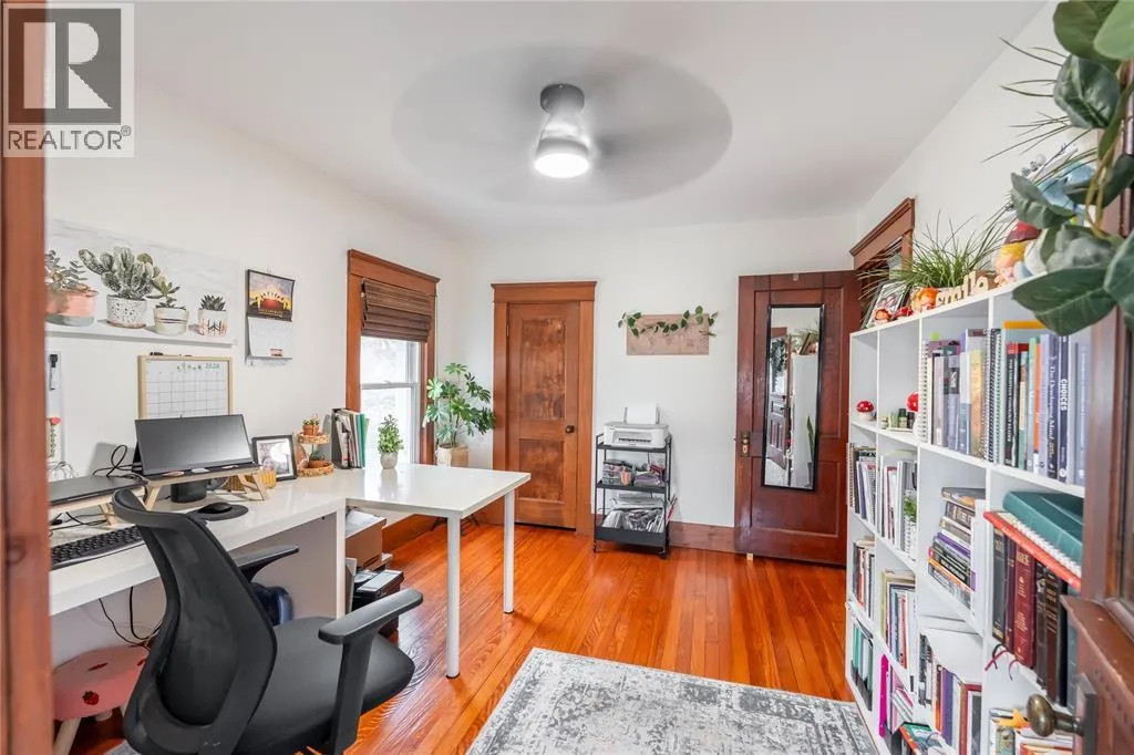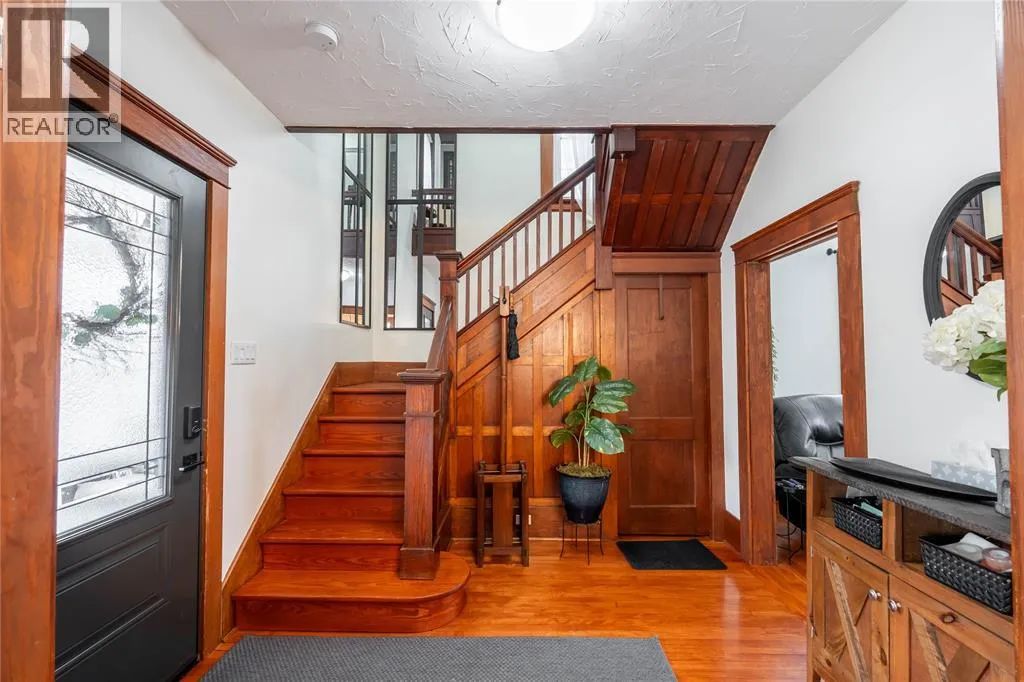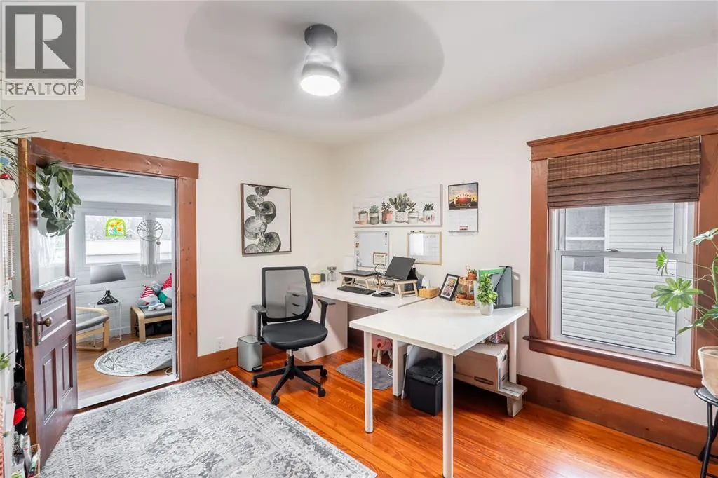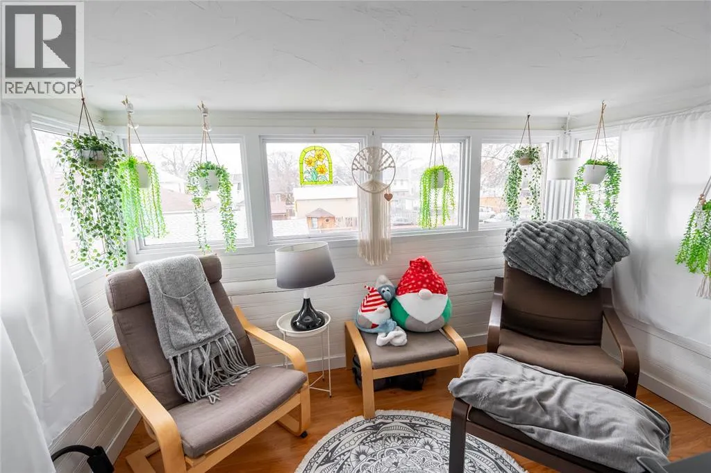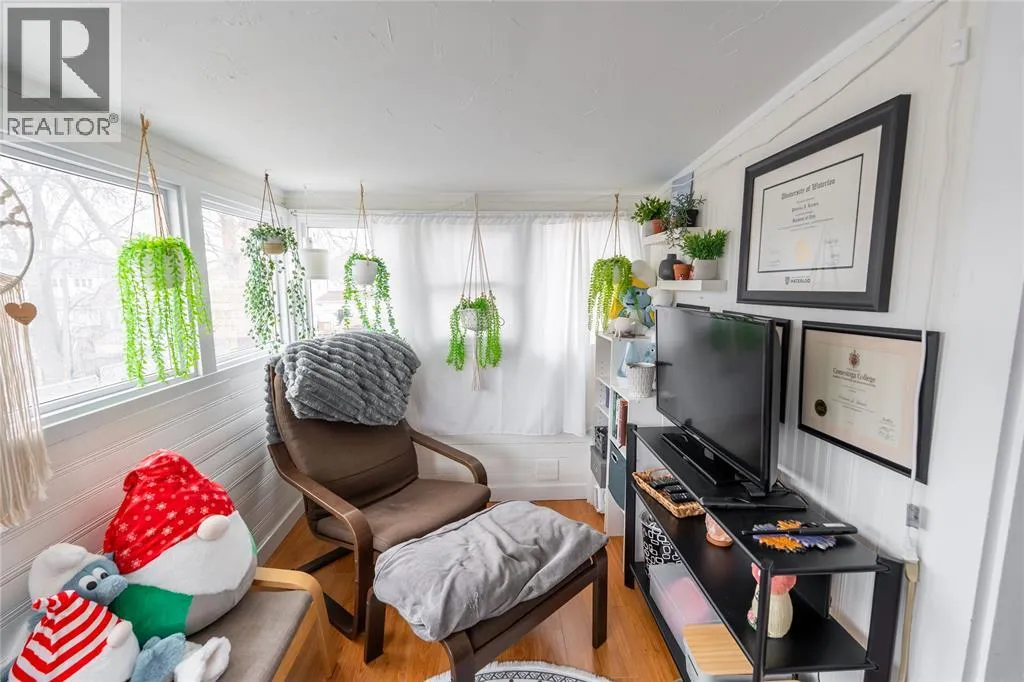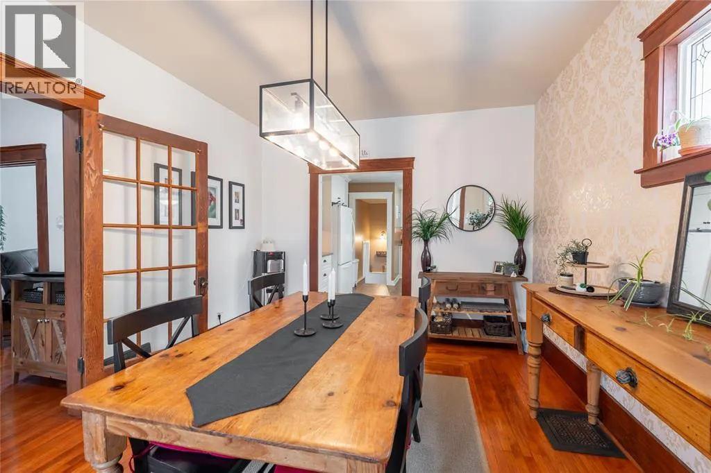 Enjoy your morning coffee on the large, covered front porch before stepping inside to a welcoming foyer featuring a beautiful wood staircase. Hardwood floors flow through the main living and dining rooms, creating an inviting space for everyday living and entertaining. The updated kitchen offers a bright, modern feel, while the rear mudroom with built-in cubbies adds convenience and organization. The second level features three bedrooms, including a primary bedroom with walkout access to a sunroom that is perfect for a home office or quiet retreat. The main bathroom showcases a classic clawfoot tub, adding to the homeâs character. The finished third-storey loft provides excellent additional living space, ideal for a kidsâ gaming area, hangout zone, or potential fourth bedroom. Recent updates provide peace of mind, including a newly renovated basement bathroom, an updated furnace and central air system with an ultra high efficiency furnace, new eavestroughs (2025), and a newly poured concrete driveway. Step outside to enjoy a private outdoor space complete with deck, pergola, and seating area, along with a detached garage for added convenience. (id:27476)