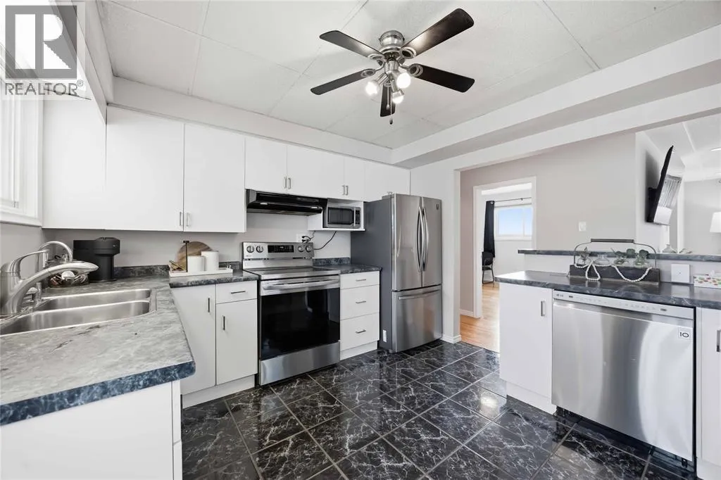 Here's your shot for a wonderful updated brick and stone one floor home! Featuring a detached 1.5 car garage and fenced yard with large 2 tier deck with hot tub. Inside you will find gleaming hardwood floors, large open kitchen, vinyl windows letting in lots of natural light, and 3 main floor bedrooms. The finished lower level has a massive 35' long rec room, along with a big 4th bedroom and full second bathroom. Centrally located with easy access to shopping and on a bus route. (id:27476)