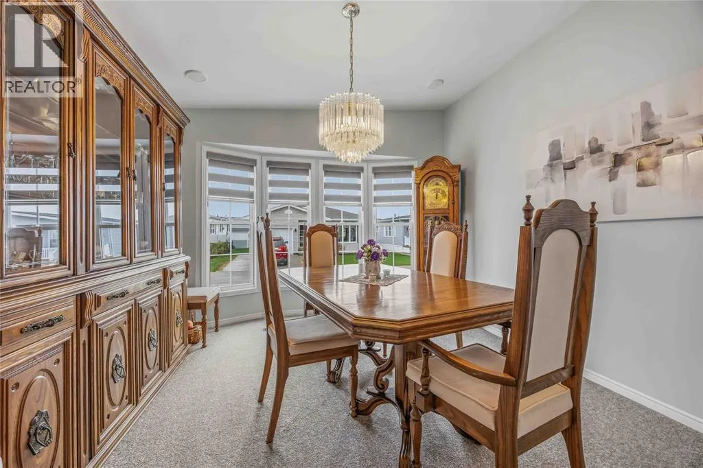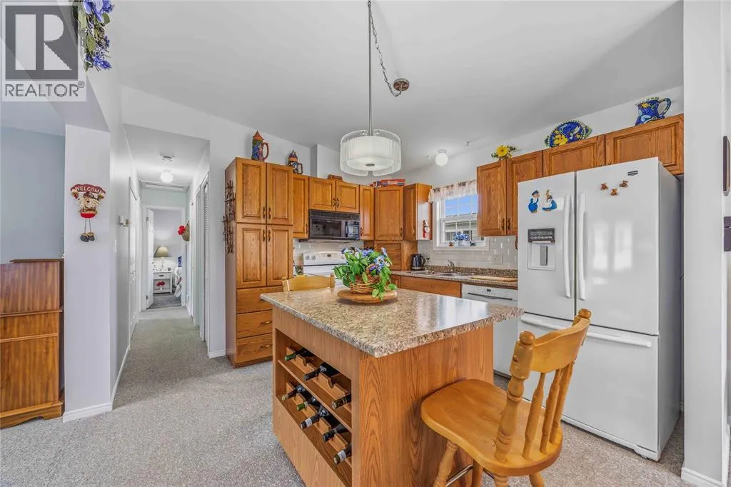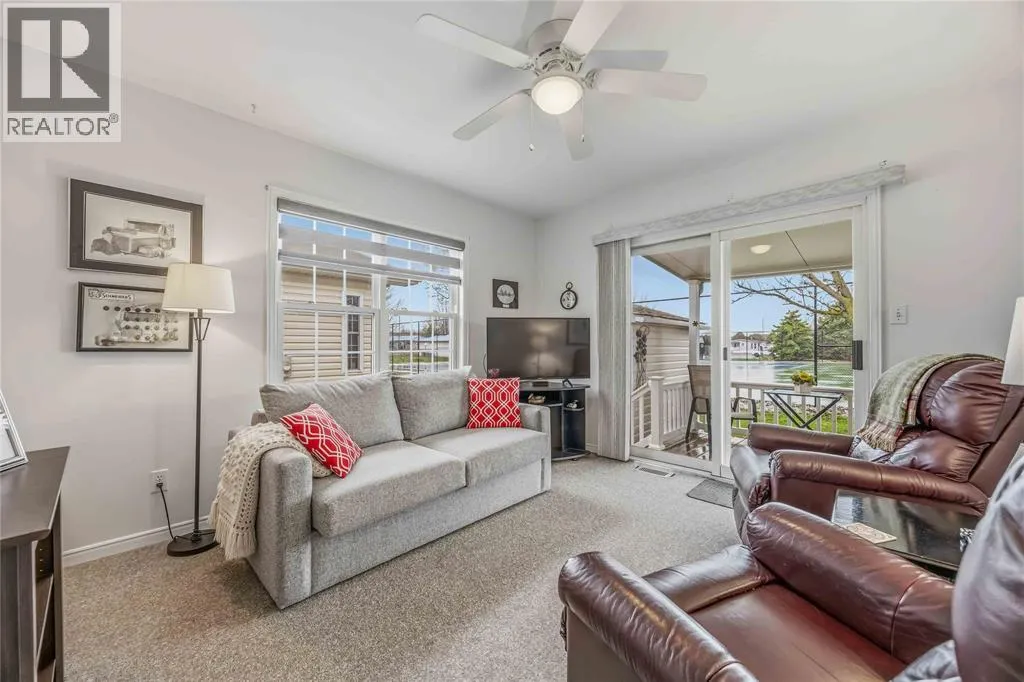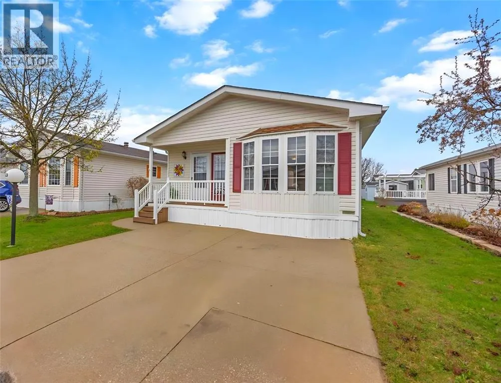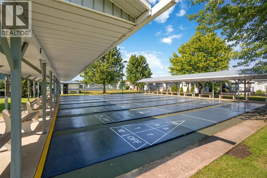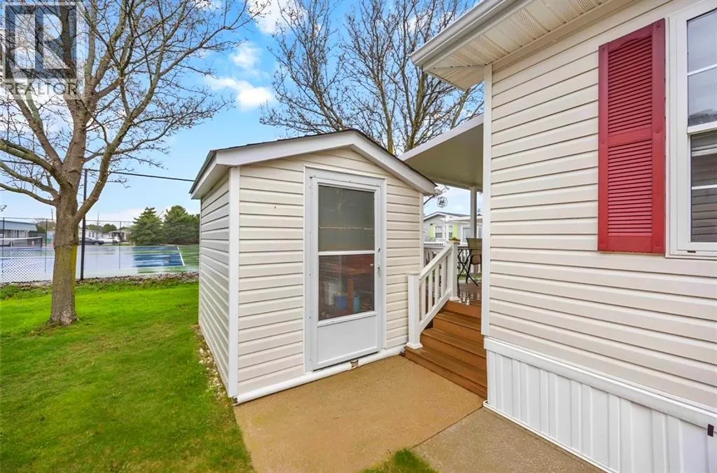 TURN LEFT THRU MAIN GATE, TURN RIGHT ON 6TH AVE, AND RIGHT ONTO CENTER DRIVE, UNIT #259 ON RIGHT Set on a prime lot backing onto green space, this exceptionally well-maintained home offers low-maintenance, carefree living in a sought-after adults-only community. The covered rear deck provides a peaceful setting overlooking the tennis courts. Inside, the home features 2 bedrooms and 1.5 bathrooms, including a spacious main bath with a large walk-in shower. A convenient storage shed adds extra functionality outside. Residents enjoy access to an impressive 12,000 sq. ft. clubhouse with an indoor pool, fitness room, billiards, games room, heated hobby shop, library, lounge, and a Great Hall for social events. Outdoor amenities include tennis courts, picnic pavilion, horseshoes, bocce, shuffleboard, and beautifully landscaped gardens with a waterfall and fish pond. Monthly fees: land lease $850, lot tax $67.90, structure tax $79.09; water and sewer billed quarterly. (id:27476)