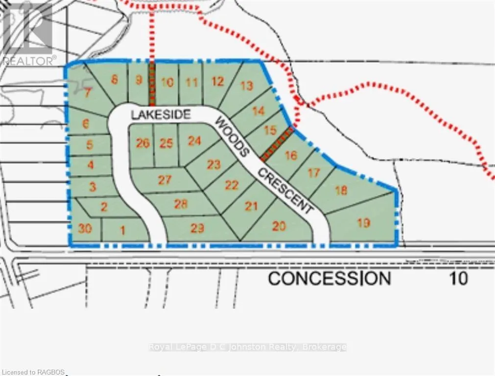 From Highway 21 North of Port Elgin turn West on Saugeen Conc 10 to Lakeside Woods Crescent on right (North) side of Concession 10 before Miramichi Bay Road This fabulous 1/2 acre building site in beautiful Lakeside Woods is one of the last lots available to build on in this development. It offers an idyllic, treed location just steps to the beautiful shoreline of Lake Huron. Lakeside Woods is a neighbourhood designed with architectural guidelines and tree retention plans to ensure the perfect setting for your dream home. Spend endless hours hiking, cross country skiing or snowshoeing on the Woodland Trail system just outside your front door! You can also enjoy the ever-changing views of great Lake Huron from a paved cycling and walking trail that extends along the shore between Port Elgin and Southampton. This large pie shaped lot measures 24000 square feet. Services available include: municipal water, natural gas, electricity, fibre optic high speed Internet, and telephone. A septic system will be required. (id:27476)