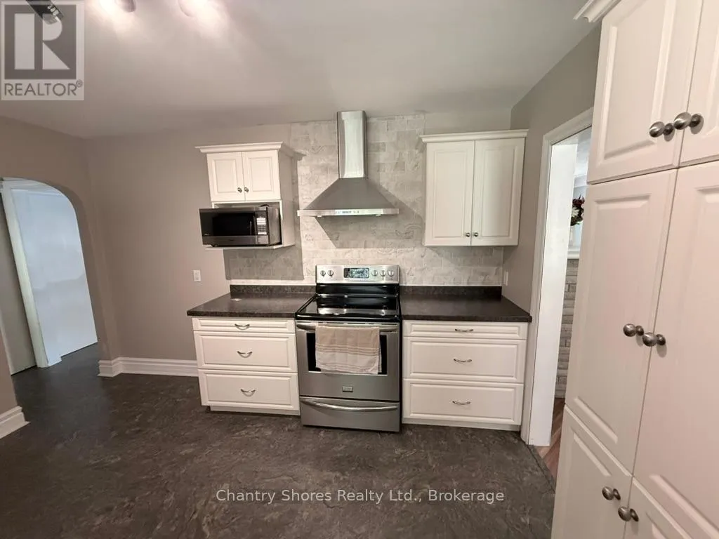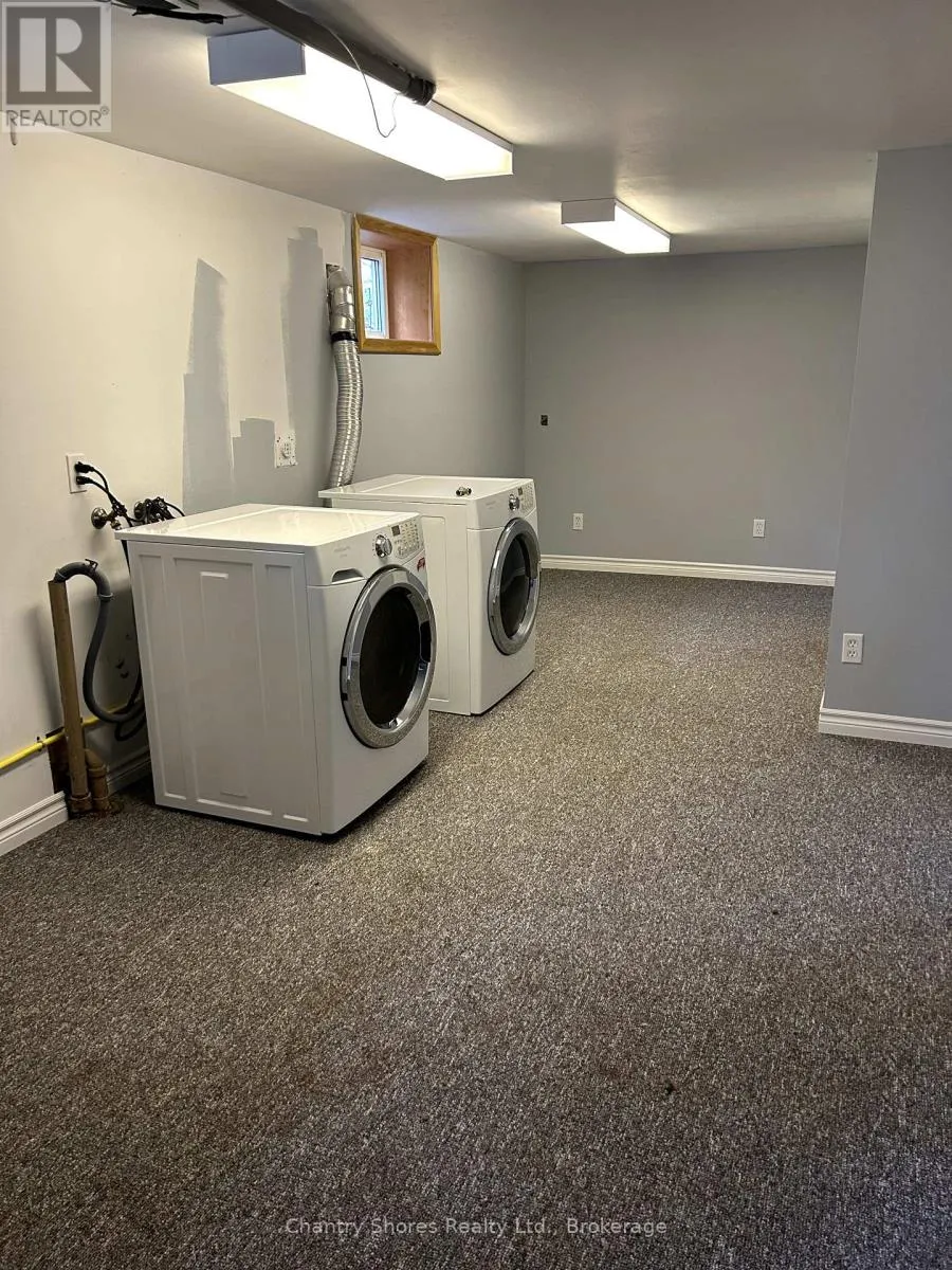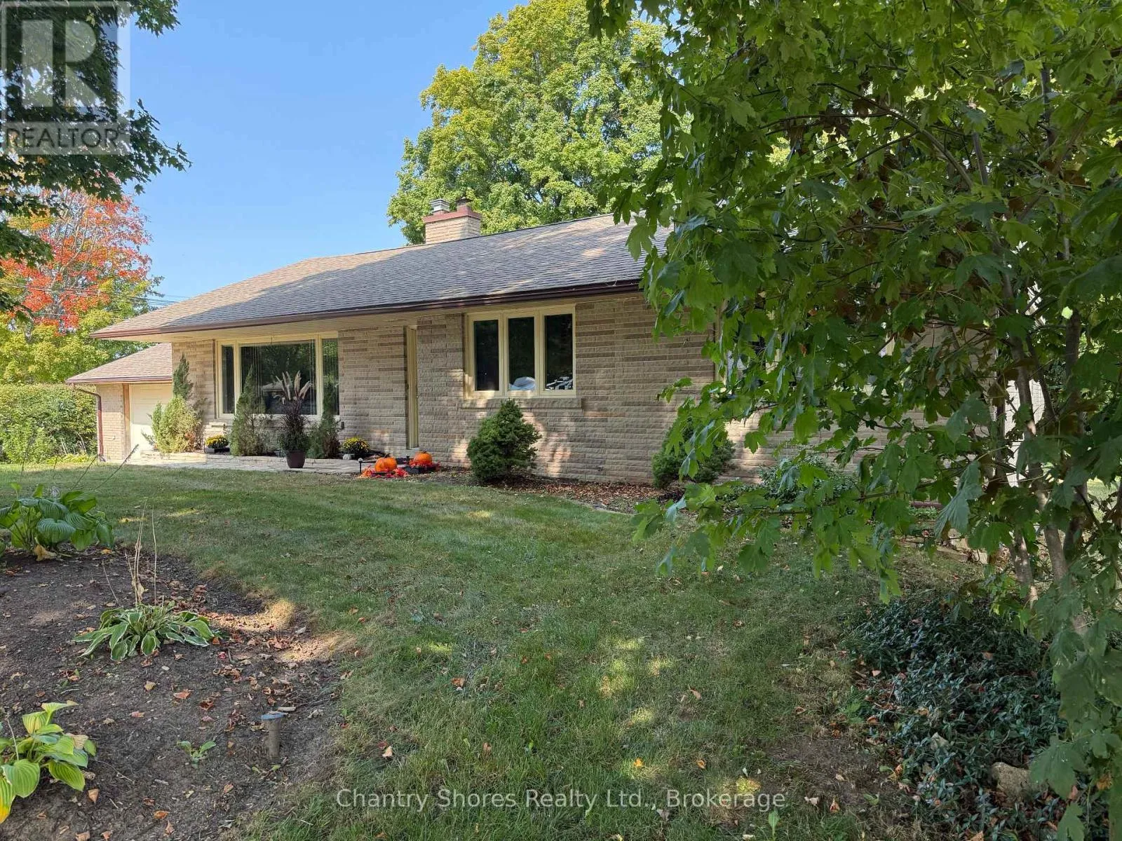 Cross Streets: Bricker Street. ** Directions: Goderich Street to Eugenie, east on Eugenie to 647 on the left. North east corner of Bricker and Eugenie. Rarely offered large brick bungalow with attached garage on a lovely mature double corner town lot 132' x 132'. The property backs on to a former town lane for extra privacy. Superb location on the east side of Port Elgin within easy walking distance to many desirable downtown shops, restaurants and services. The main floor features a large living room, brick fireplace with gas insert, formal dining room, kitchen with newer cupboards and appliances. Large primary bedroom plus two other bedrooms. The basement was in the process of renovation and is partially finished. Lots of potential for this large basement with separate entrance. There is a 3pc washroom and laundry in the basement. Newer forced air gas furnace. The large lot makes for a park-like setting with beautiful large maple trees, hedge along the road on the west side and concrete patio with built-in brick barbecue. There is a lot at the rear that was merged with the property. There are two separate legal descriptions and assessment roll numbers for the 66' x 132' rear lot fronting on Bricker street that was merged with the 132'x 66' lot fronting on Eugenie street that the home sits on. Potential abounds for this magnificent double lot property! (id:27476)