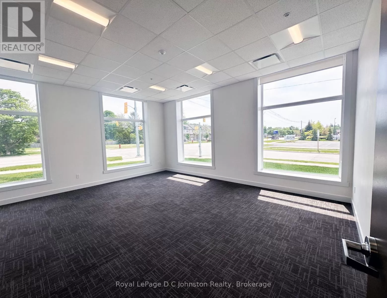Cross Streets: 1020 Goderich Street, Saugeen Shores. Directly off HWY 21/Goderich street and Mary st. ** Directions: Hwy 21 and Mary Street. Looking for a beautiful corner office with huge windows? Welcome to Suite #119 at the innovative Powerlink Office Building in Saugeen Shores, Port Elgin's premier hub for modern professional spaces. This bright, ground-level corner suite offers approximately 345 sq. ft. of thoughtfully designed space and features four massive windows- two overlooking Mary Street and two facing Goderich Street filling the office with natural light. Powerlink offers sleek finishes, 24/7 secure access, and low operating costs, making it an ideal location for growing businesses. Collaborate in the dynamic first-floor business center, book meetings in the shared boardroom, and take advantage of centralized reception services. Imagine being able to bike to work with shower facilities available on the floor! Unwind or host clients casually on the stylish 8000 sq.ft. top floor! The Loft 1020 area features couches, a pool table and most importantly a café with excellent coffee and snacks available. With highway exposure, proximity to Bruce Power, and storage lockers available for rent, Powerlink is redefining office ownership in Bruce County. Inquire today to elevate your professional presence. (id:27476)
